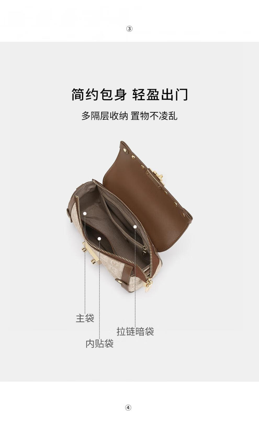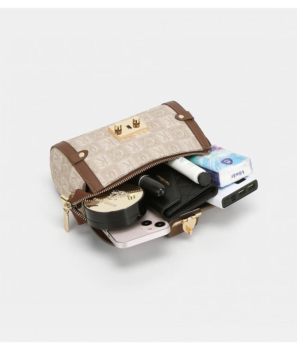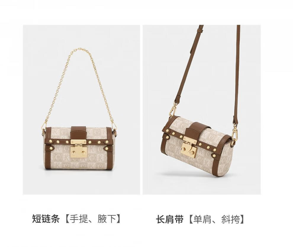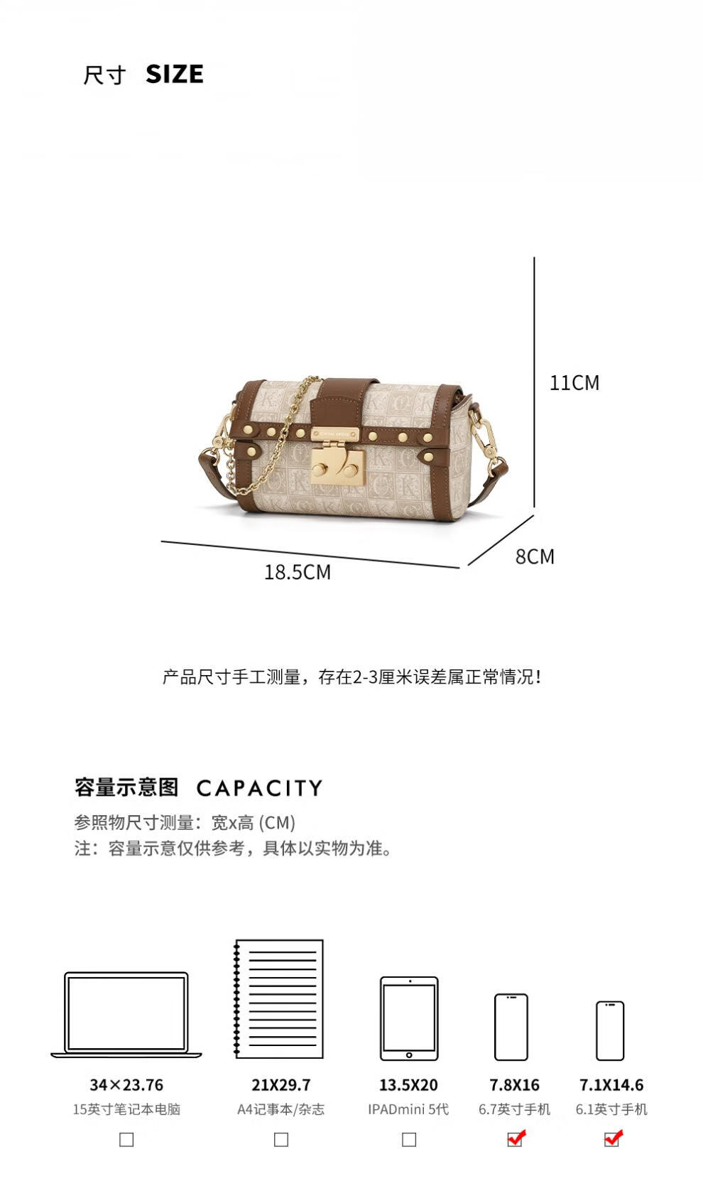 CinvaiKrose小c&k秋冬包包女2024新款斜挎包圆筒链条包通勤单肩 卡其配棕 送闺蜜女朋