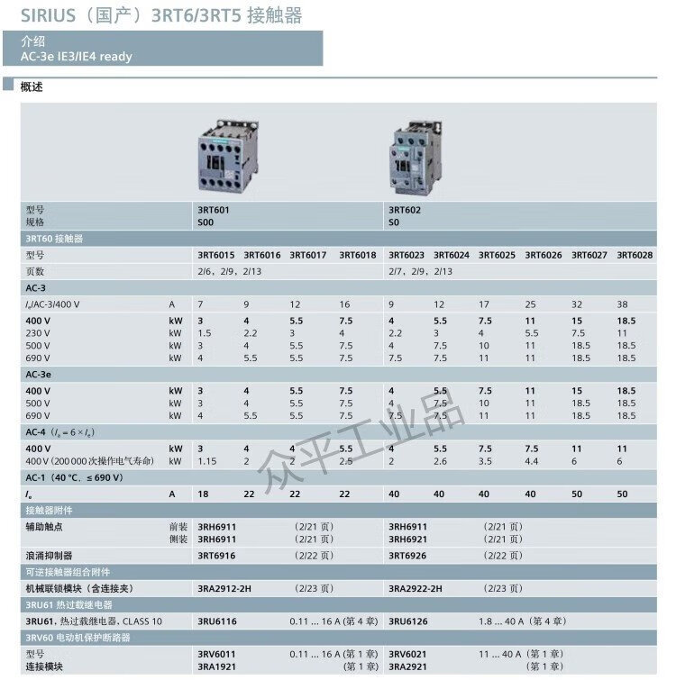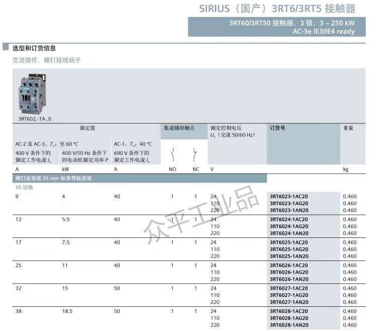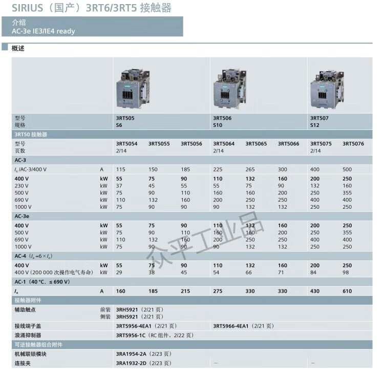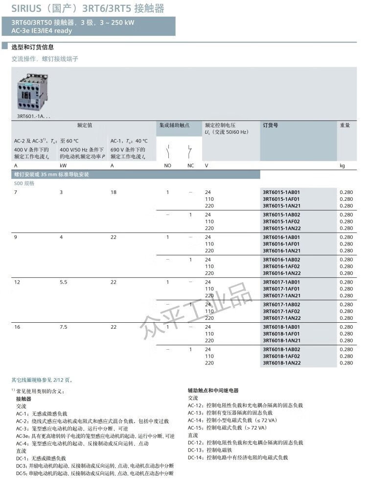 SIEMENS 3RT AC contactor 3RT7014/3RT7016/3RT7017/3RT 3RT7027-1AN20丨32A200VAC