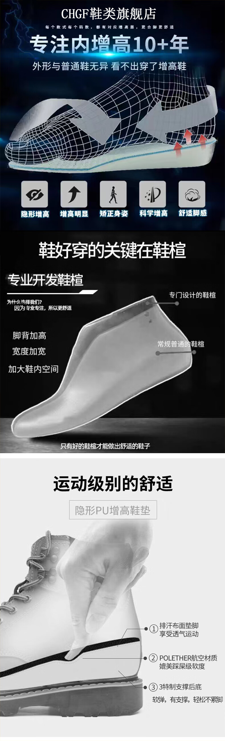 CHGF增高鞋男秋冬季新款透气运动板鞋百搭休闲鞋子男士隐形内增高男鞋 1396米黑【网面】-增高8cm 40 (运动码)