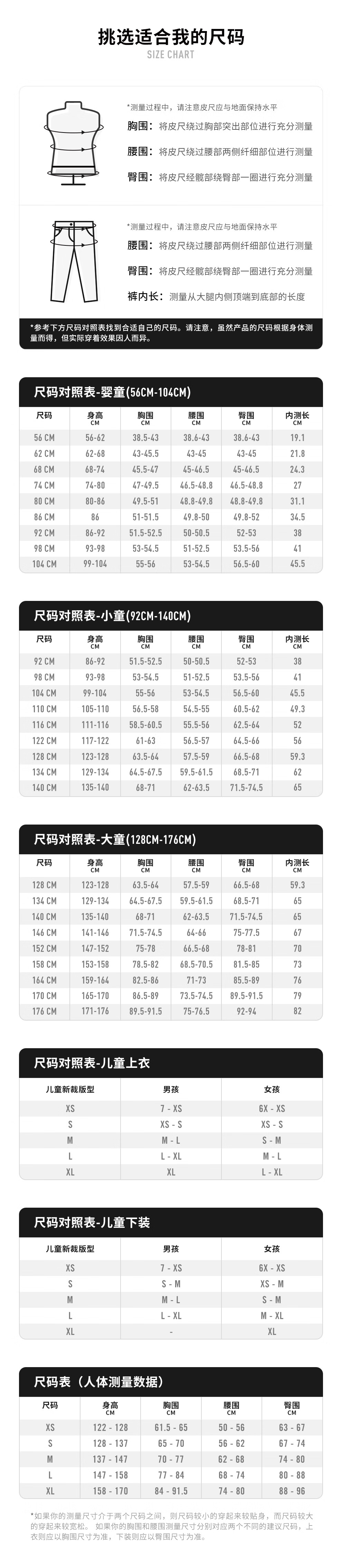 China (cm) 160-165/84-86 165-170 / 88-90 167-172 / 92-96 168-173 / 98-102 170-176 / 106-110