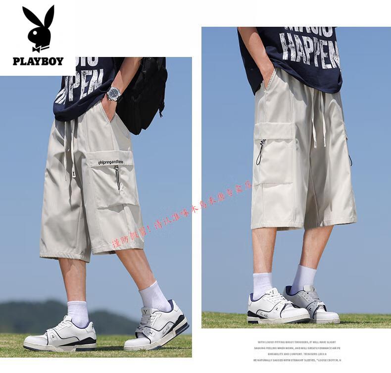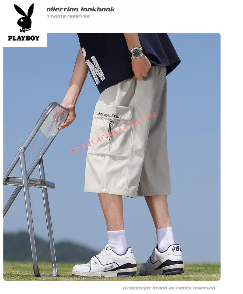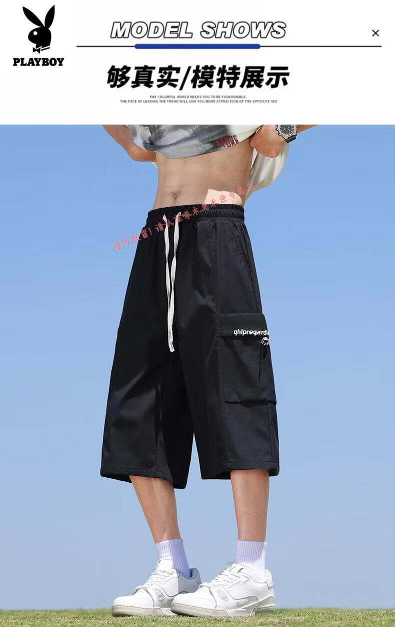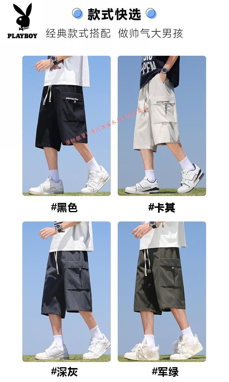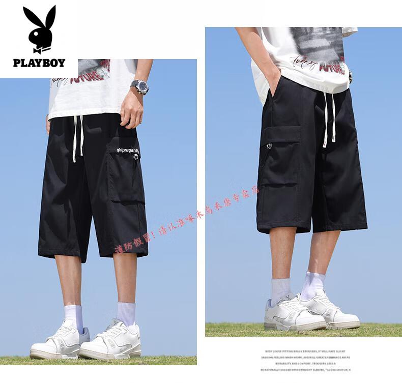 Playboy (PLAYBOY) cropped pants men's summer quick-drying loose sports shorts ice silk plus fat plus size casual six-point pants for young and middle-aged people L01 black + 759 military green ice oxygen upgraded version M