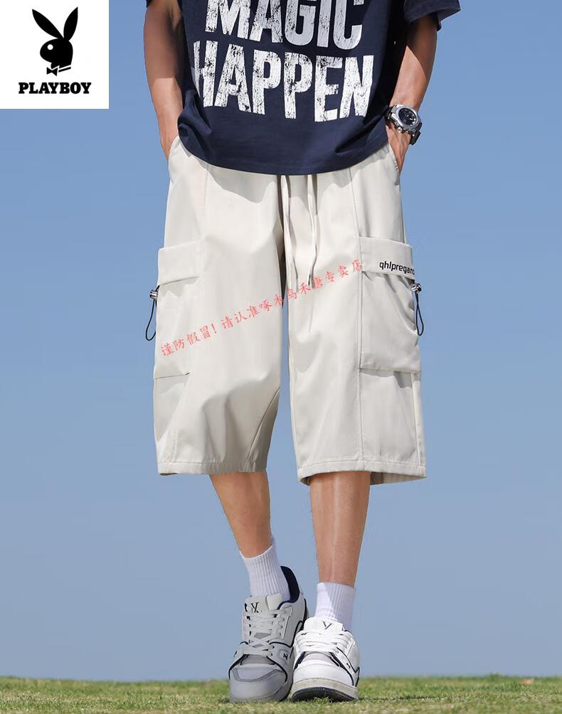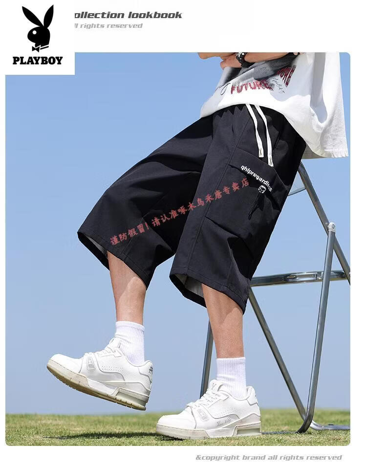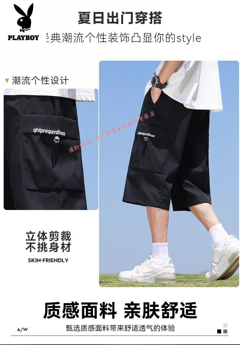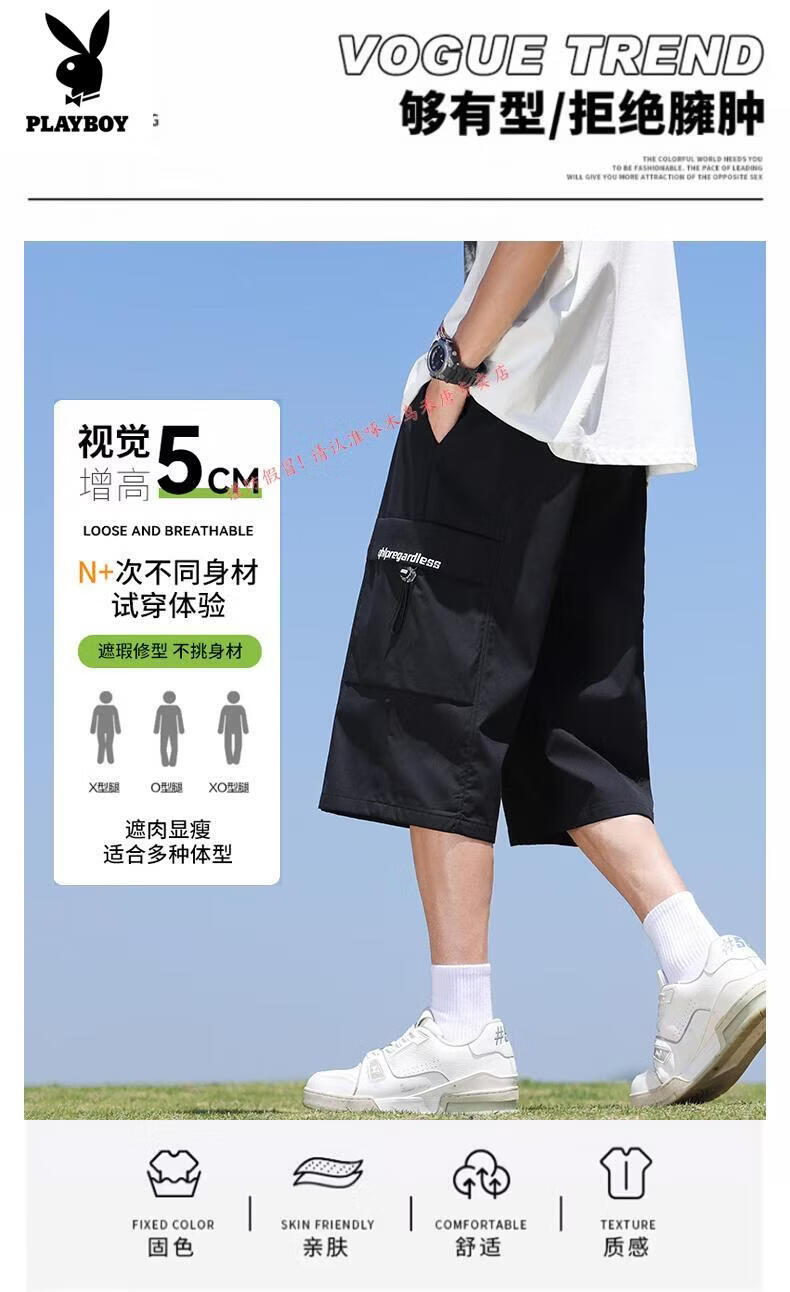 Playboy (PLAYBOY) cropped pants men's summer quick-drying loose sports shorts ice silk plus fat plus size casual six-point pants for young and middle-aged people L01 black + 759 military green ice oxygen upgraded version M