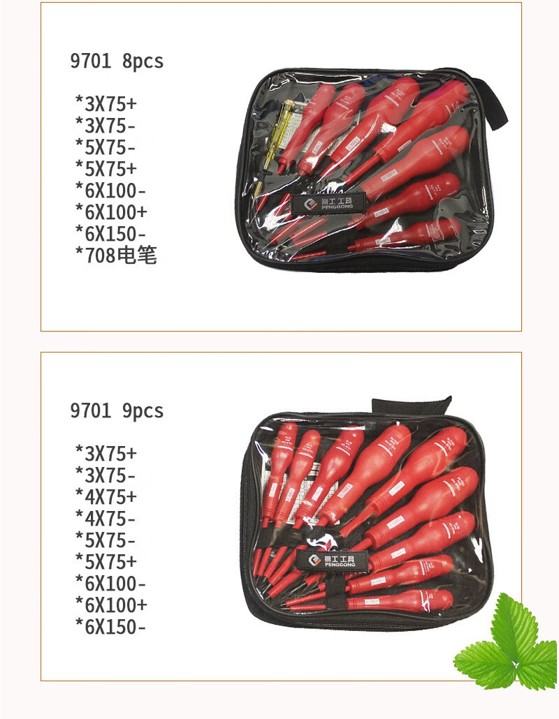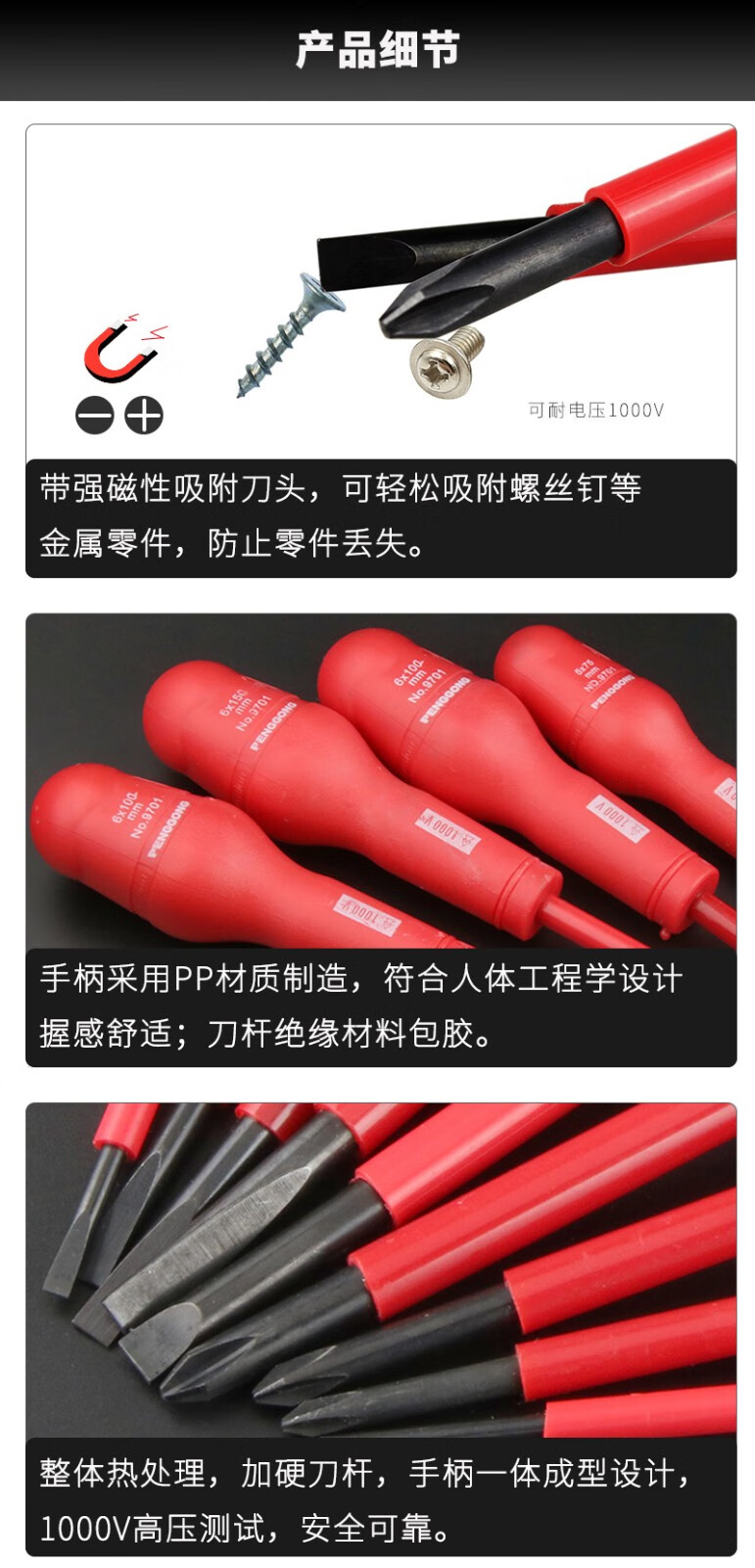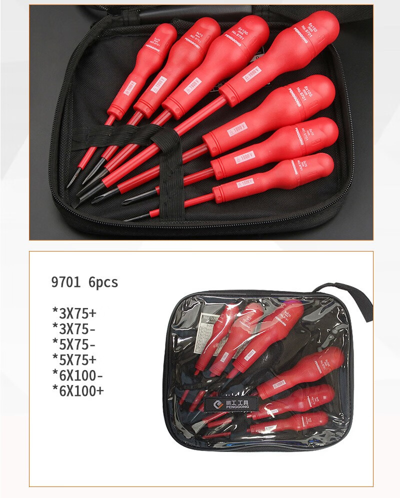 CLCEY绝缘螺丝刀套装十字一字螺丝批多功能电工维修耐1000V高压绝缘防 绝缘螺丝刀六件套9712