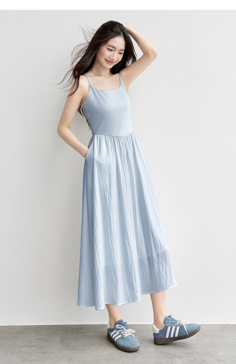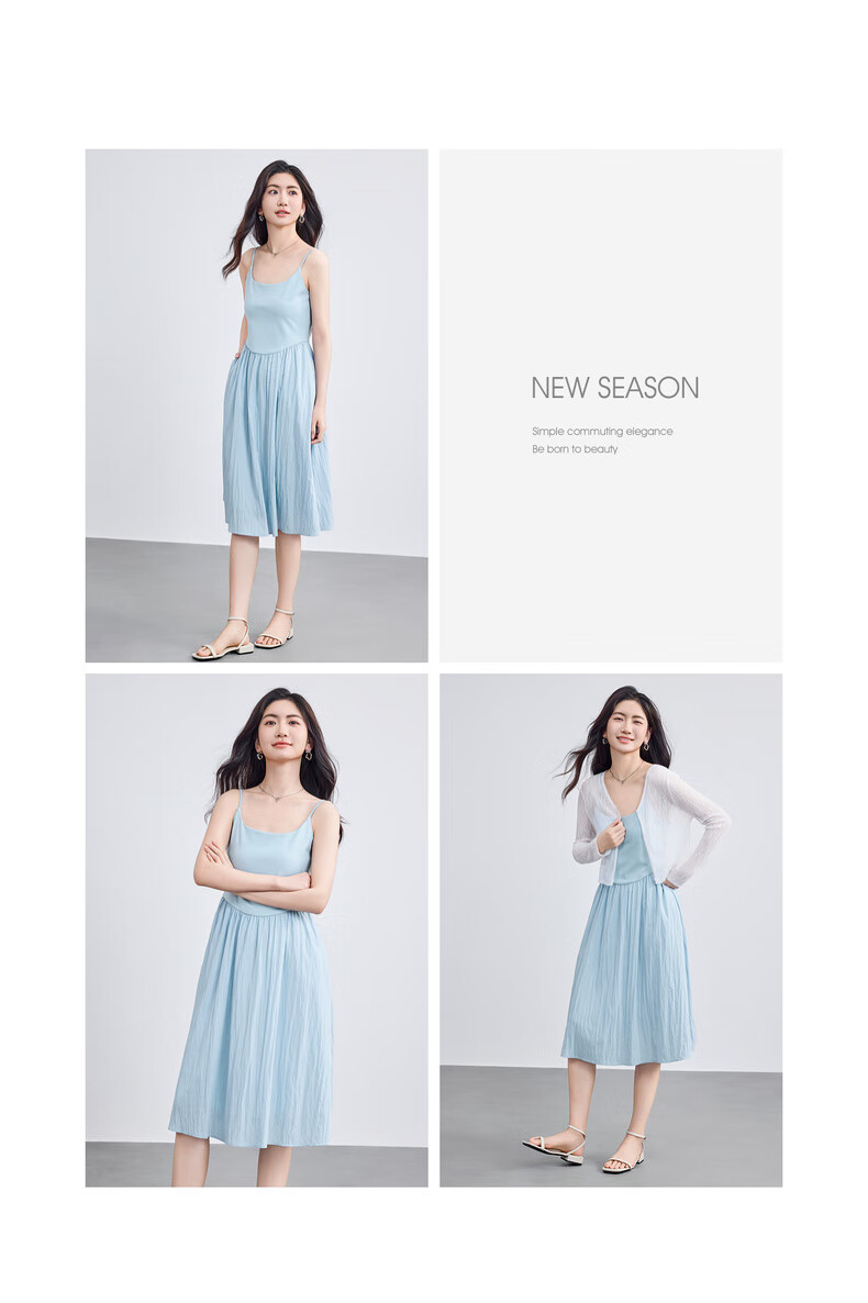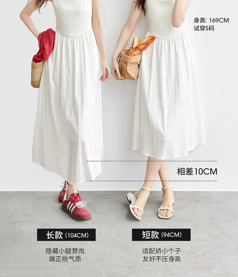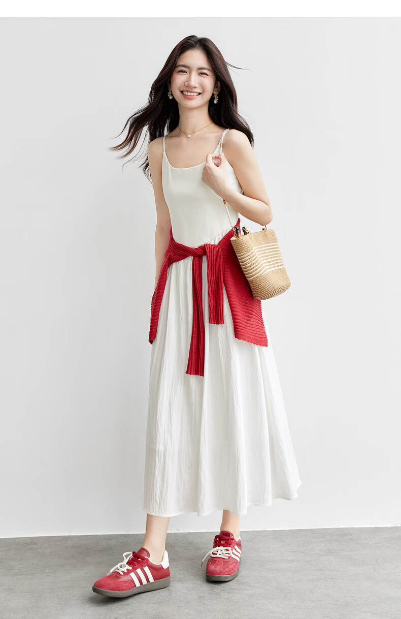 尚都比拉【两种裙长】长款or短款气质通勤U型领可调节肩带A字吊带连衣裙 W52HB2065 罩衫  白色 均码