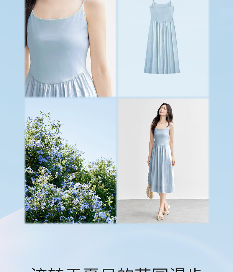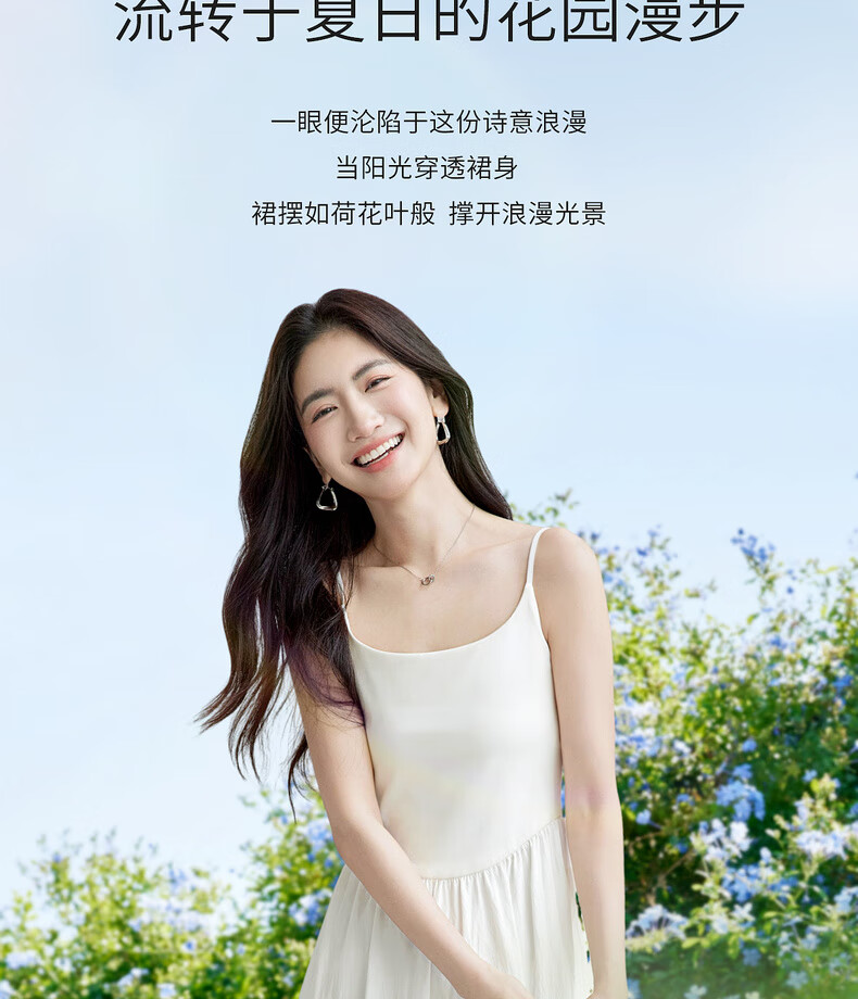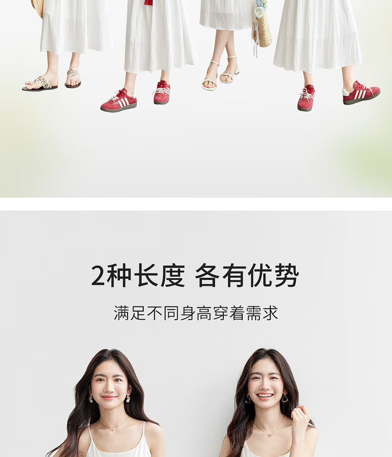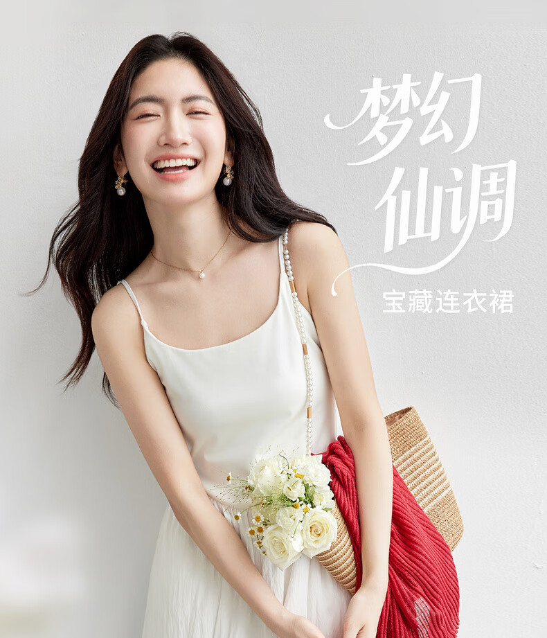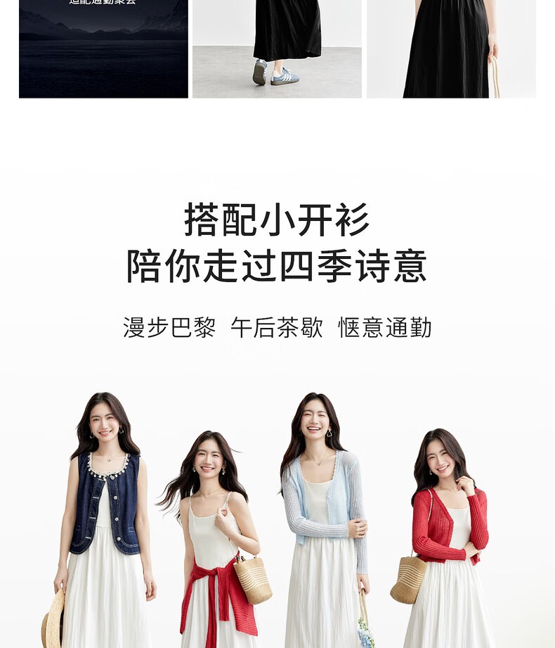 尚都比拉【两种裙长】长款or短款气质通勤U型领可调节肩带A字吊带连衣裙 W52HB2065 罩衫  白色 均码