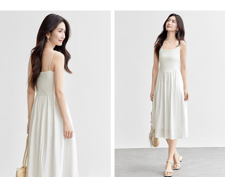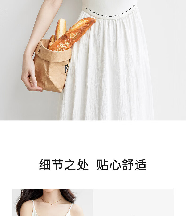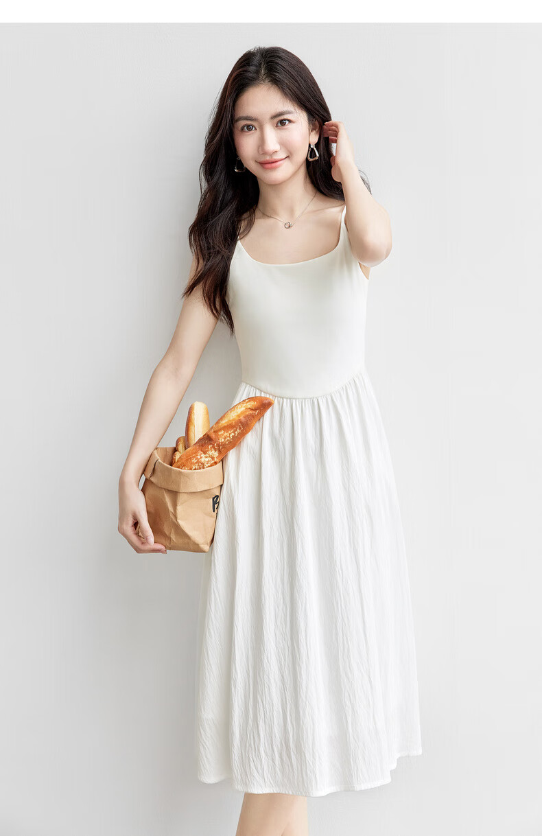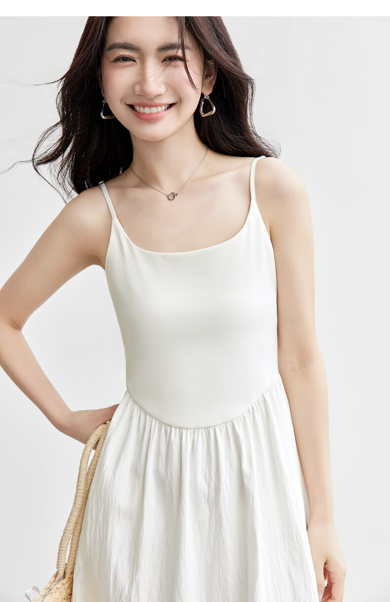 尚都比拉【两种裙长】长款or短款气质通勤U型领可调节肩带A字吊带连衣裙 W52HB2065 罩衫 白色 均码