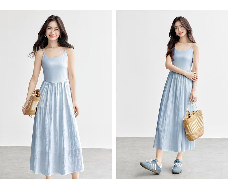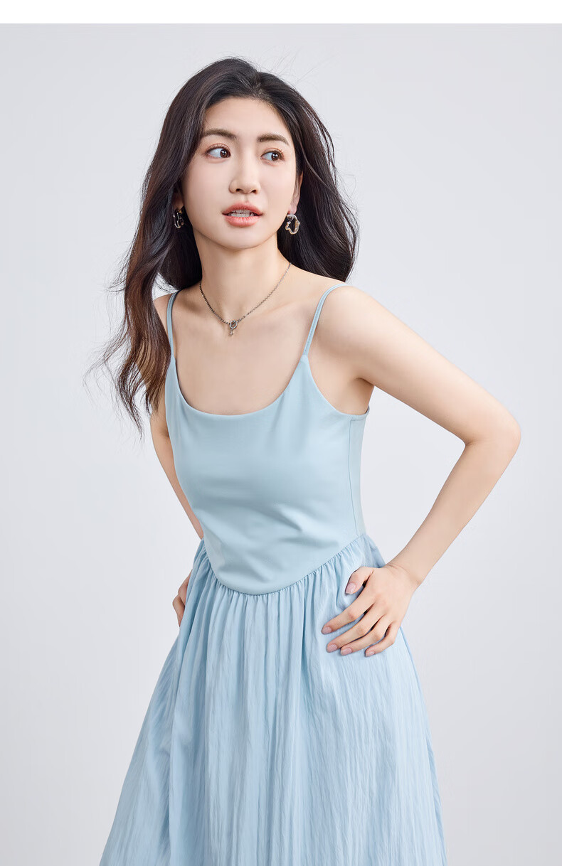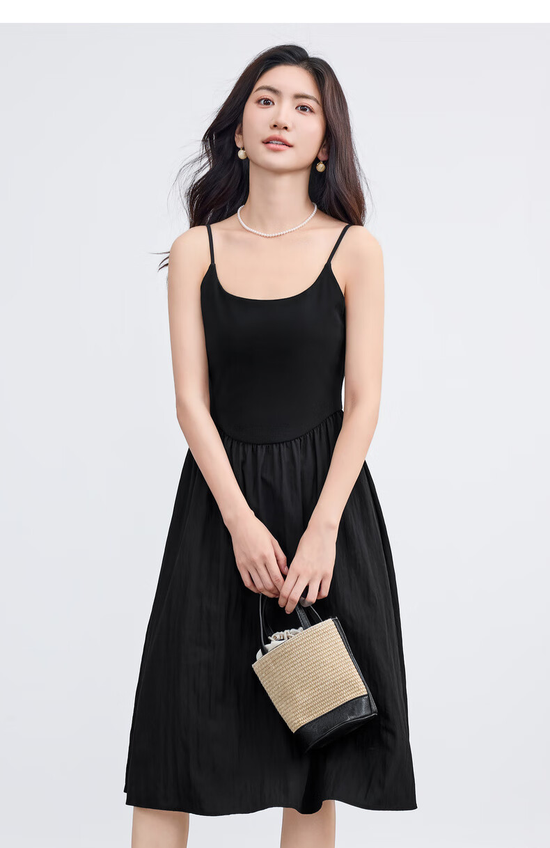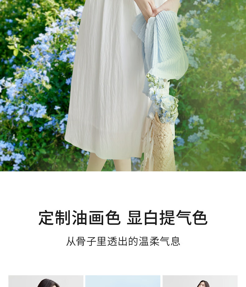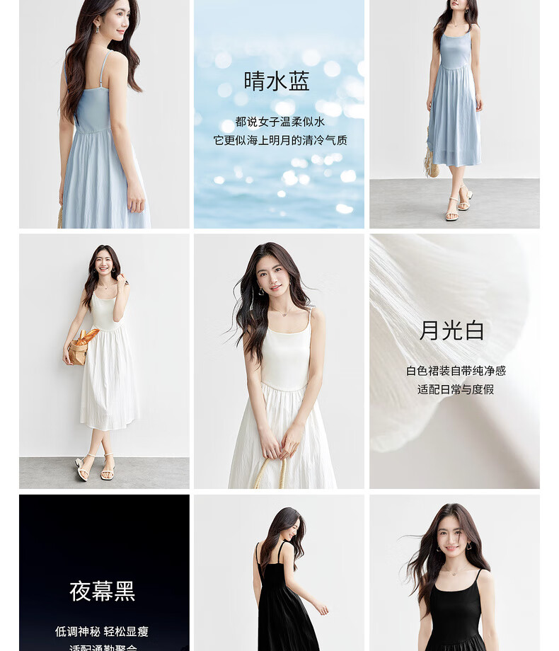 尚都比拉【两种裙长】长款or短款气质通勤U型领可调节肩带A字吊带连衣裙 W52HB2065 罩衫 白色 均码