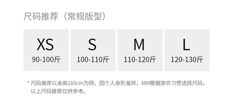 China (cm) 160-165/84-86 165-170 / 88-90 167-172 / 92-96 168-173 / 98-102 170-176 / 106-110