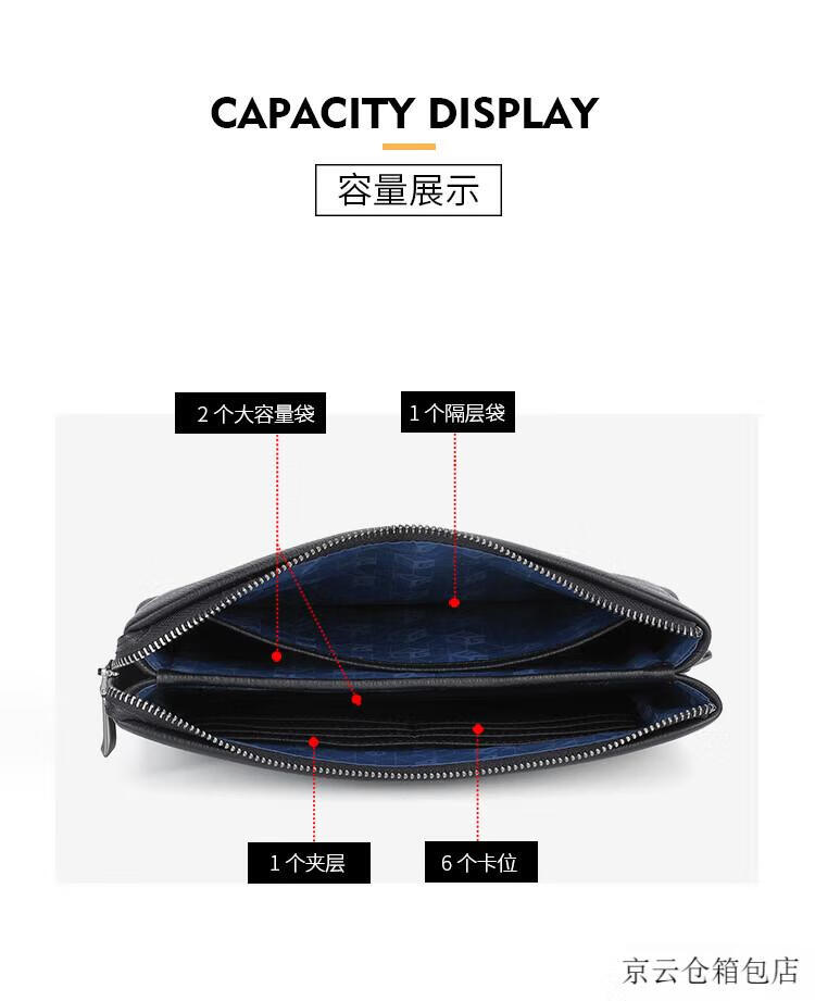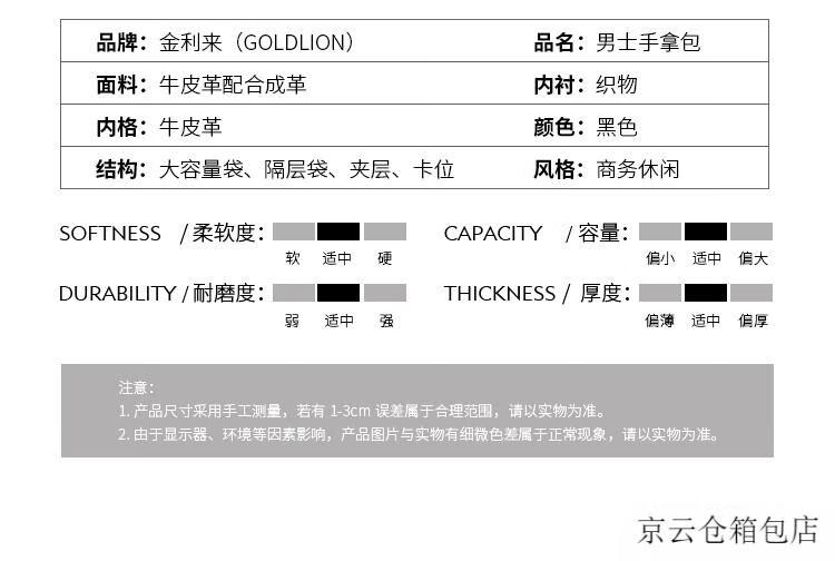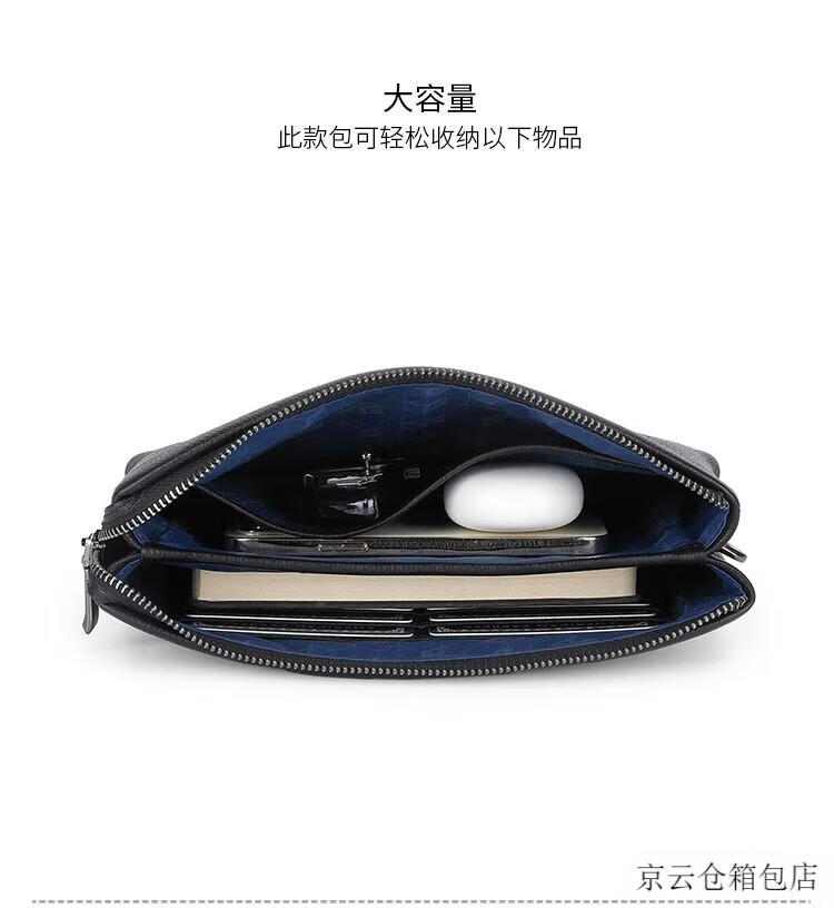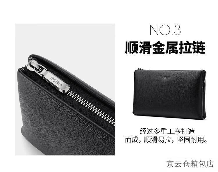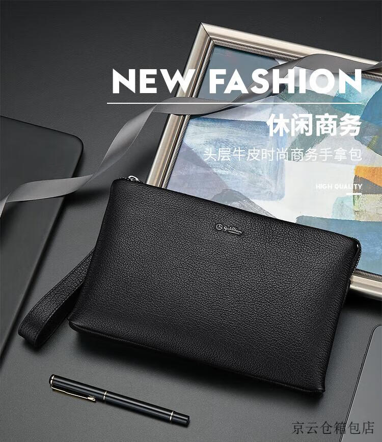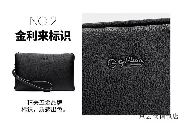 GOLDLION G+金利来信封包男商务新款真皮手包手拿包简约头层牛皮大容量男包零 黑色
