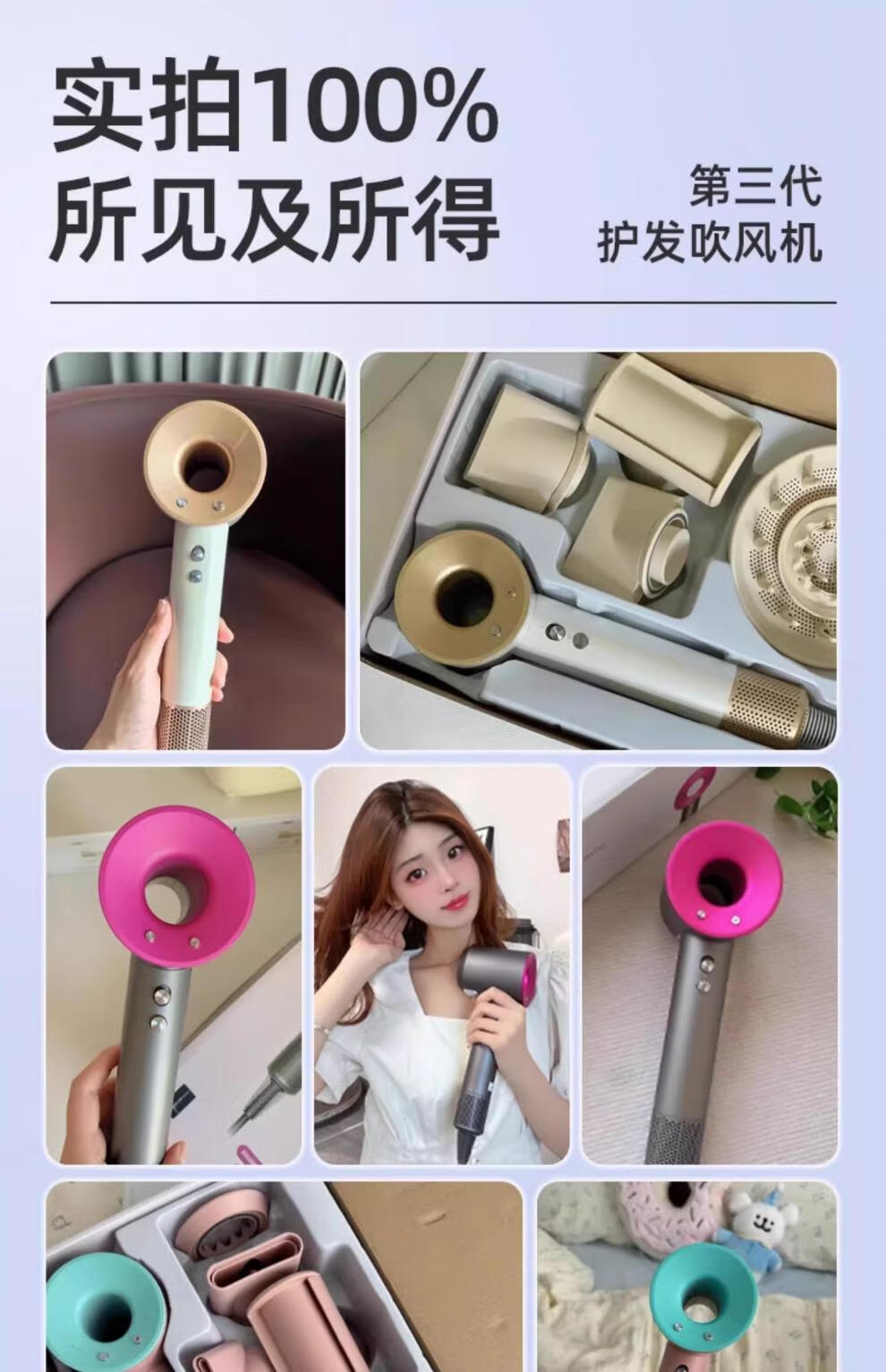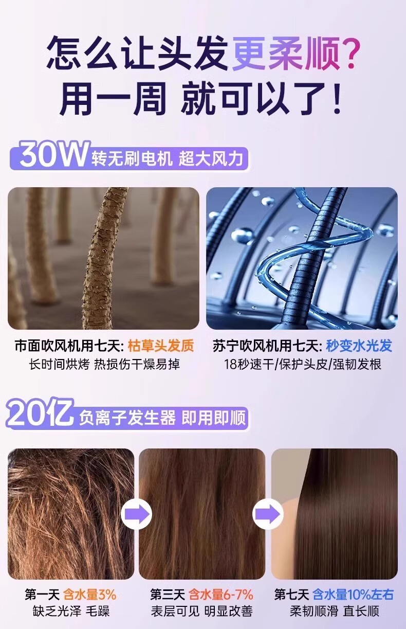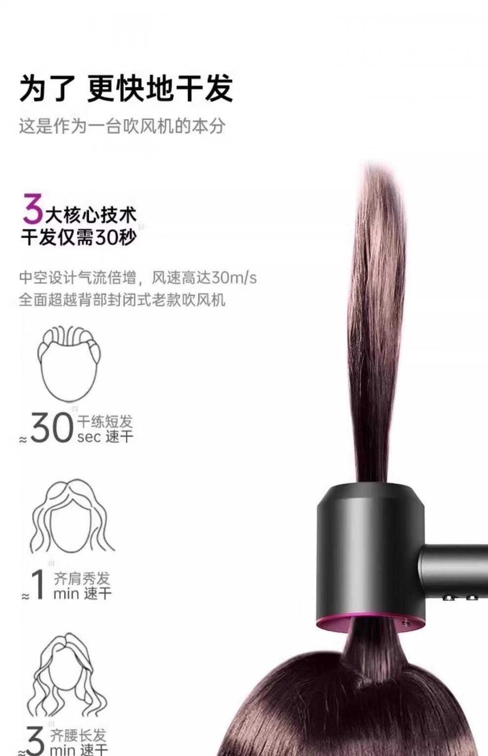 小米蜗牛小米粒高速电吹风机家用负离子护发速干大风力新款吹风筒3524 【陶瓷釉金-五风嘴】20亿水润负离子恒温护发3