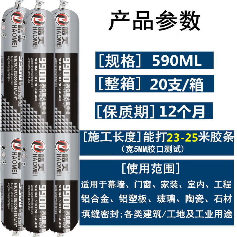 Large curtain wall structural glue neutral silicone glass outdoor sun room exterior wall waterproof and weather-resistant glue special glue 1 pack 9900 - dark gray (free gun for orders of 2)