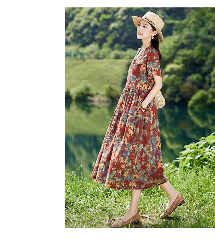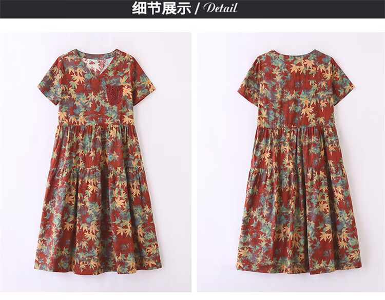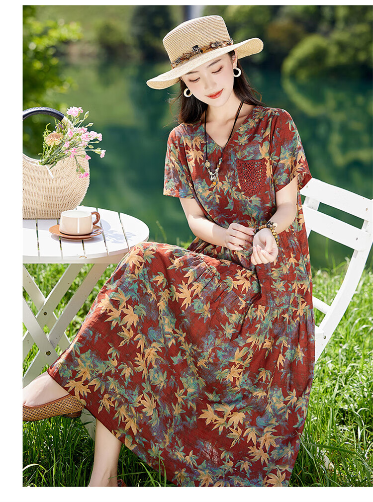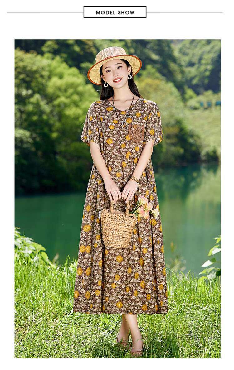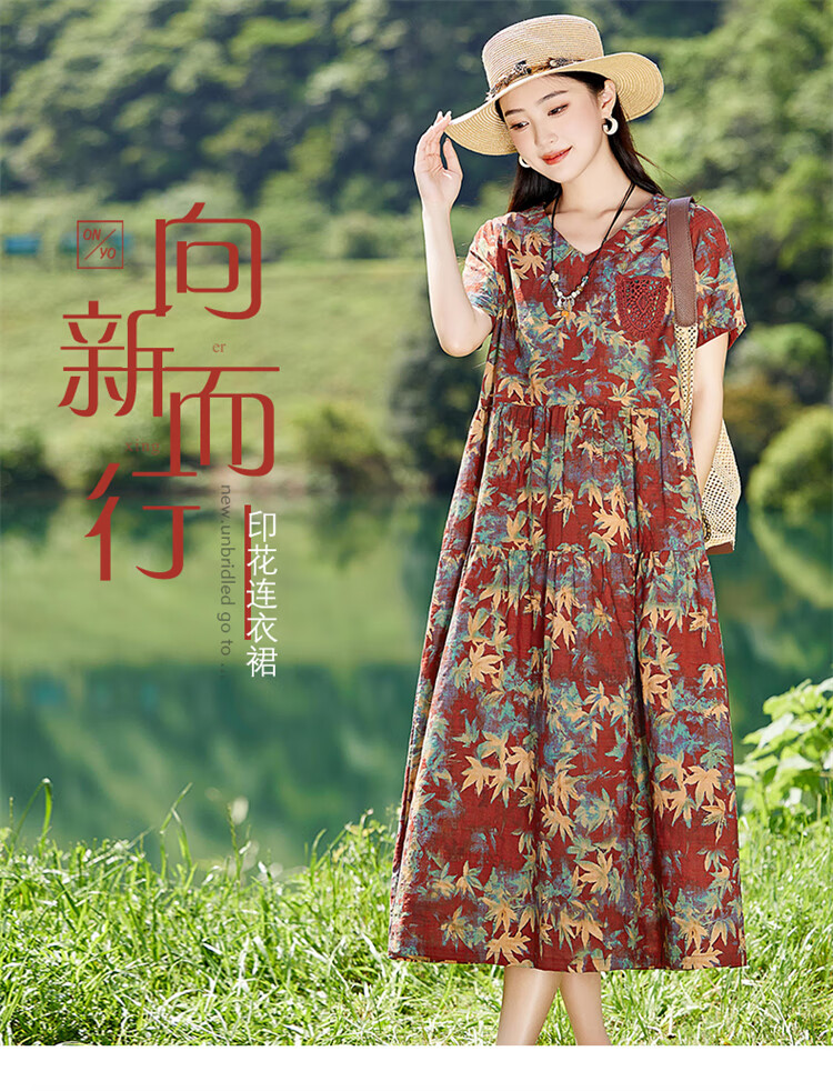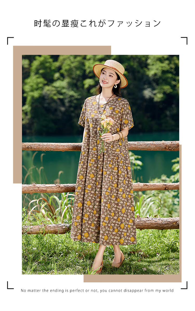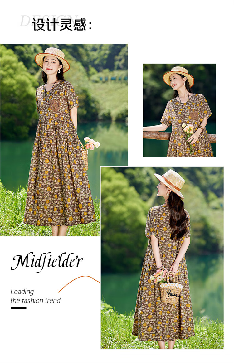 XAE奢侈高档品牌短袖连衣裙女2025夏季新款复古宽松休闲显瘦碎花裙 米色 XL 建议120-130斤
