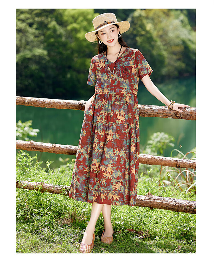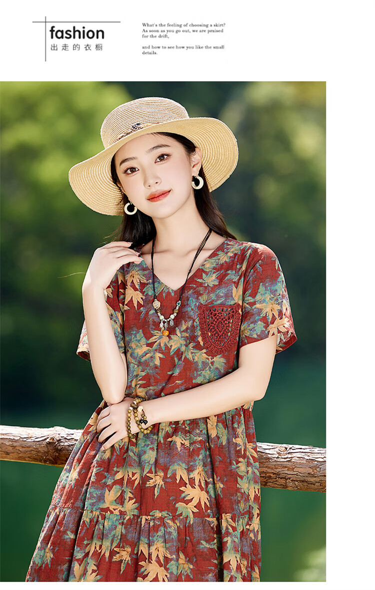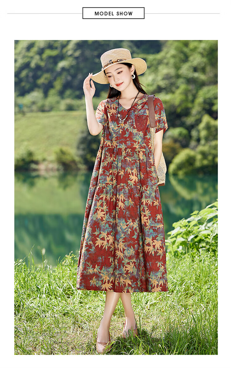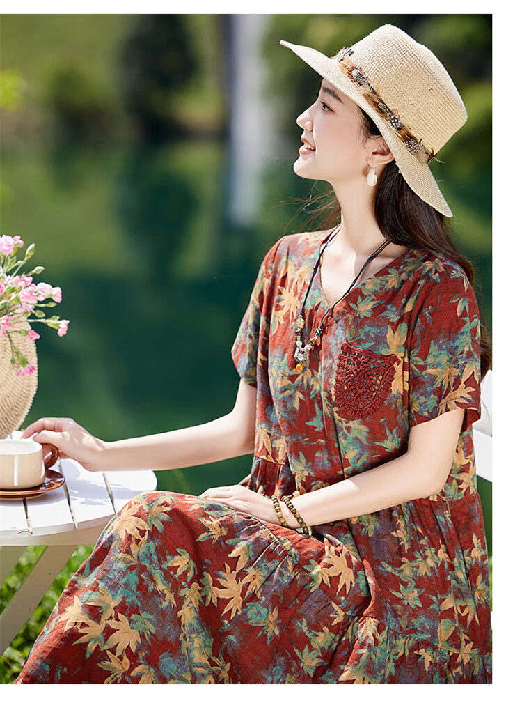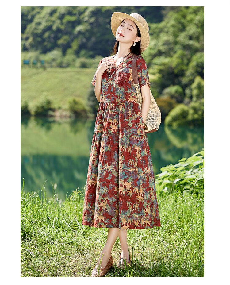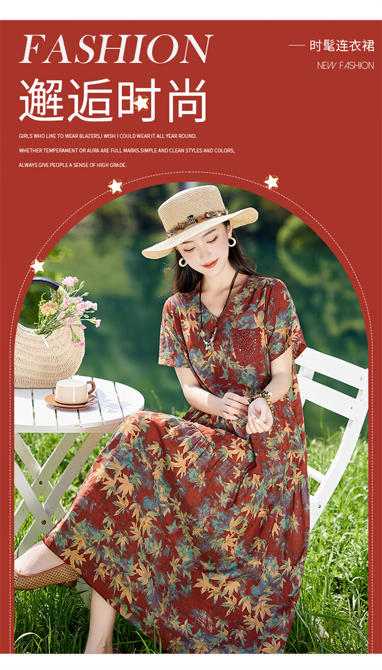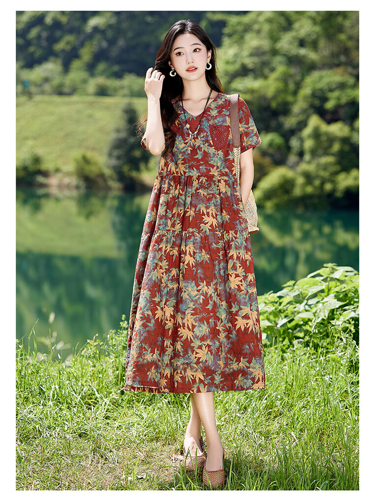 XAE奢侈高档品牌短袖连衣裙女2025夏季新款复古宽松休闲显瘦碎花裙 米色 XL 建议120-130斤