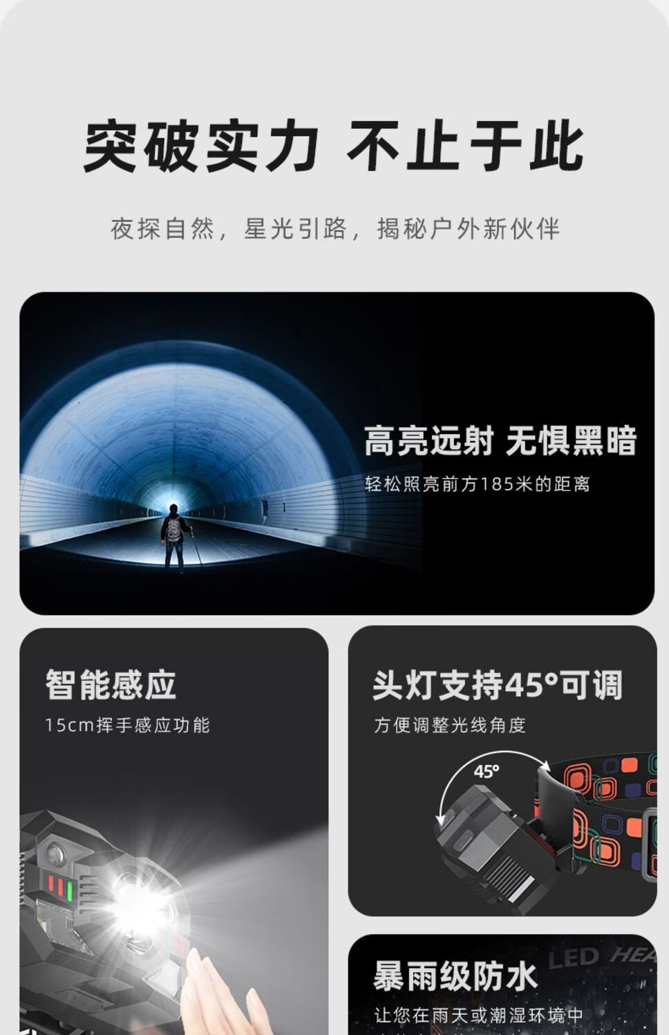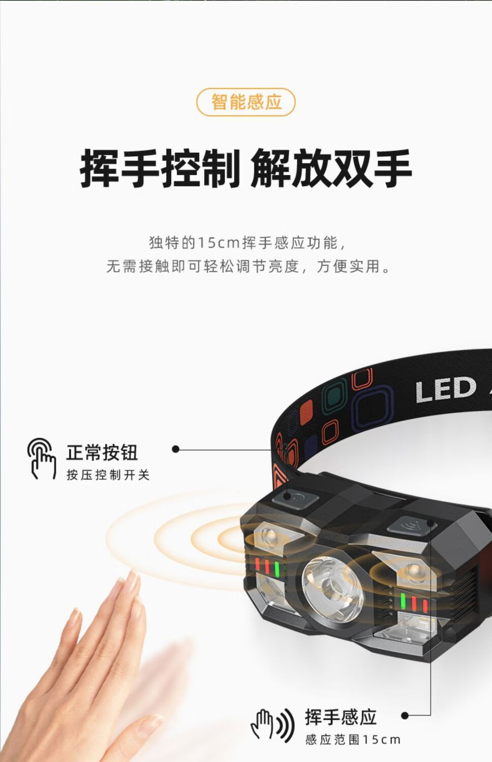 Chaosihui induction headlight outdoor waterproof ultra-long battery life flashlight 3899 medium bright wave induction six-speed adjustment conventional