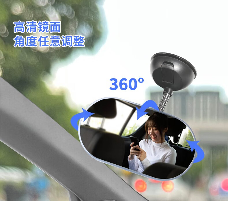 琥哥哥车内宝宝后视镜儿童观察镜汽车baby镜教练辅助弯道超车广角镜可调 DM-147吸盘镜1个