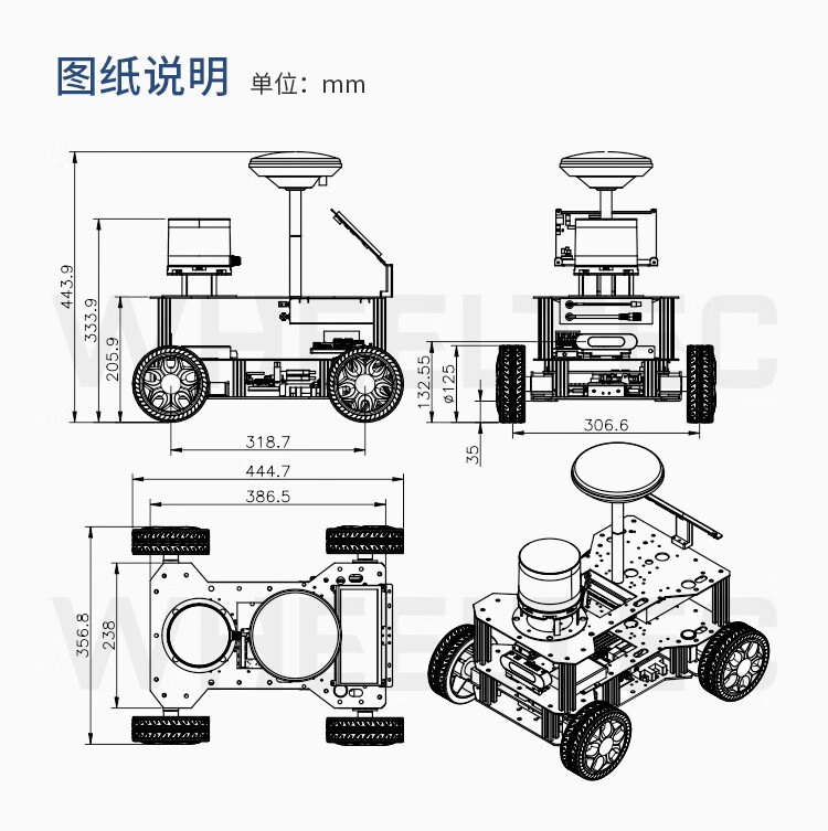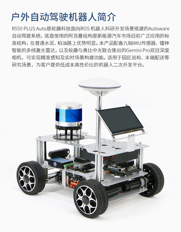 WHEELTEC户外自动驾驶机器人ROS智能车底盘autoware高精度定位导航C16雷达 户外自动驾驶机器人 高配Pro版