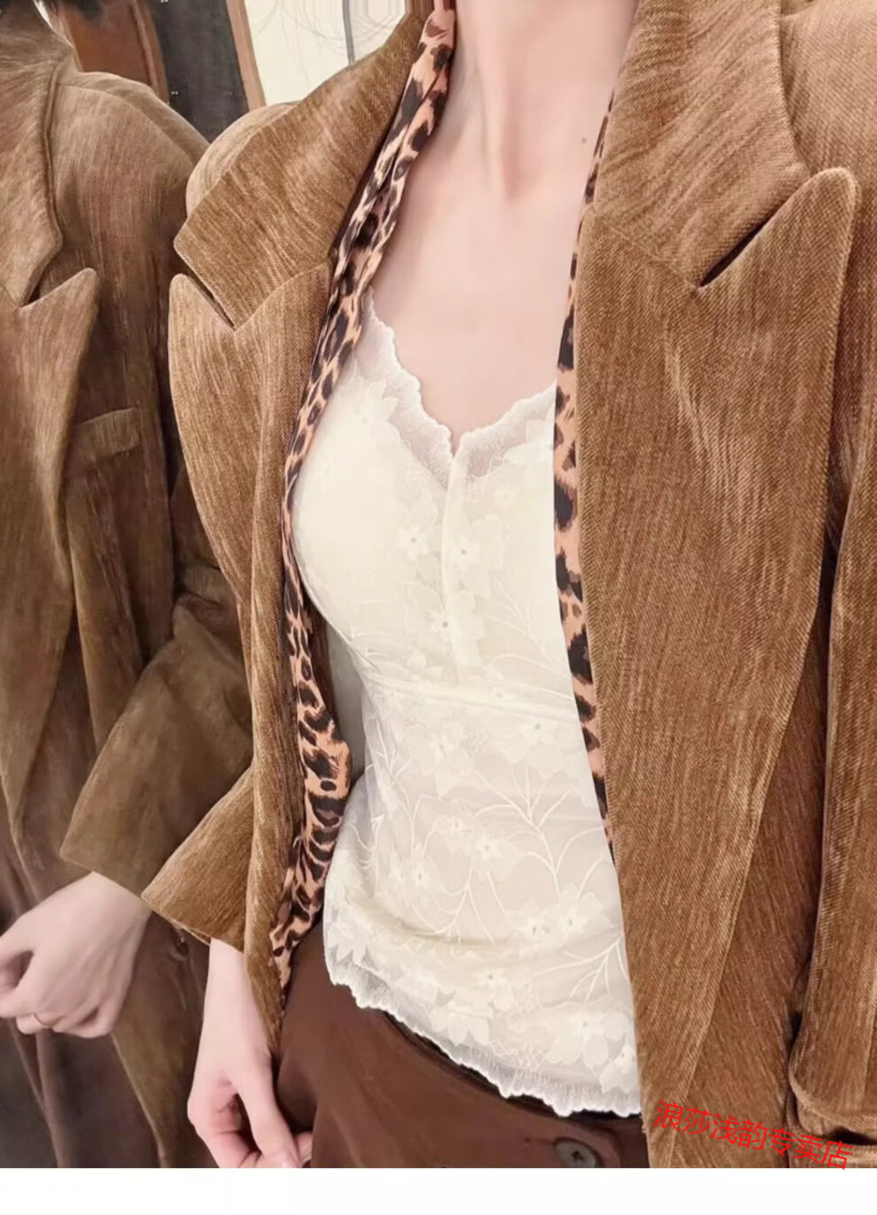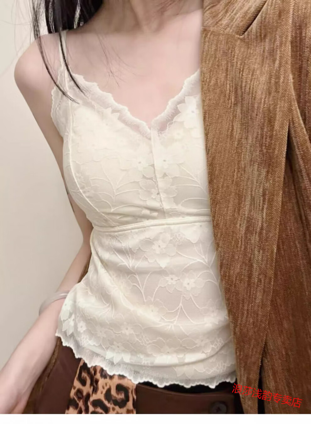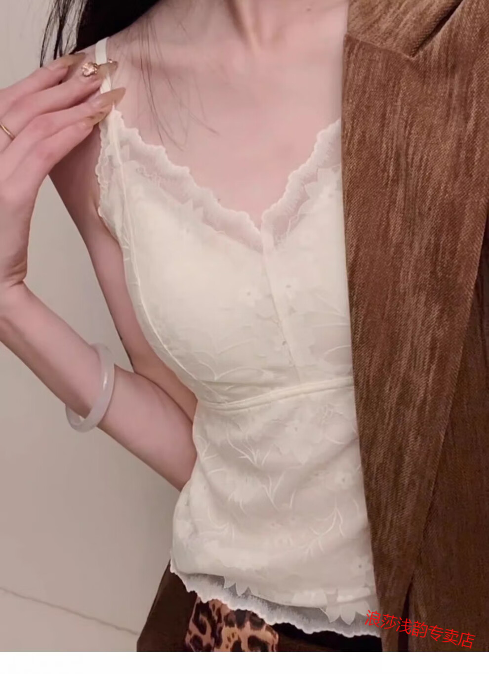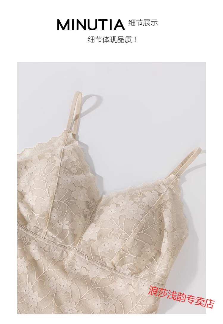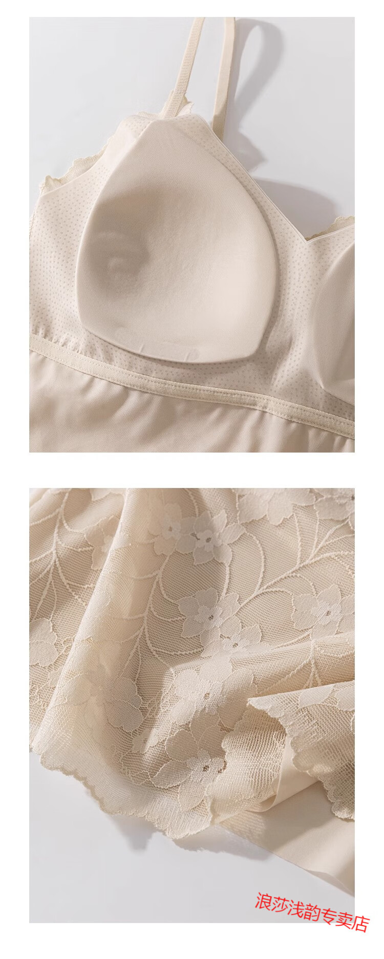 浪莎(LangSha)蕾丝吊带带胸垫内搭打底背心女2025新款春夏文胸一体美背外穿上衣 香槟白 XL