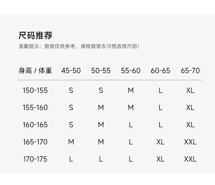 China (cm) 160-165/84-86 165-170 / 88-90 167-172 / 92-96 168-173 / 98-102 170-176 / 106-110