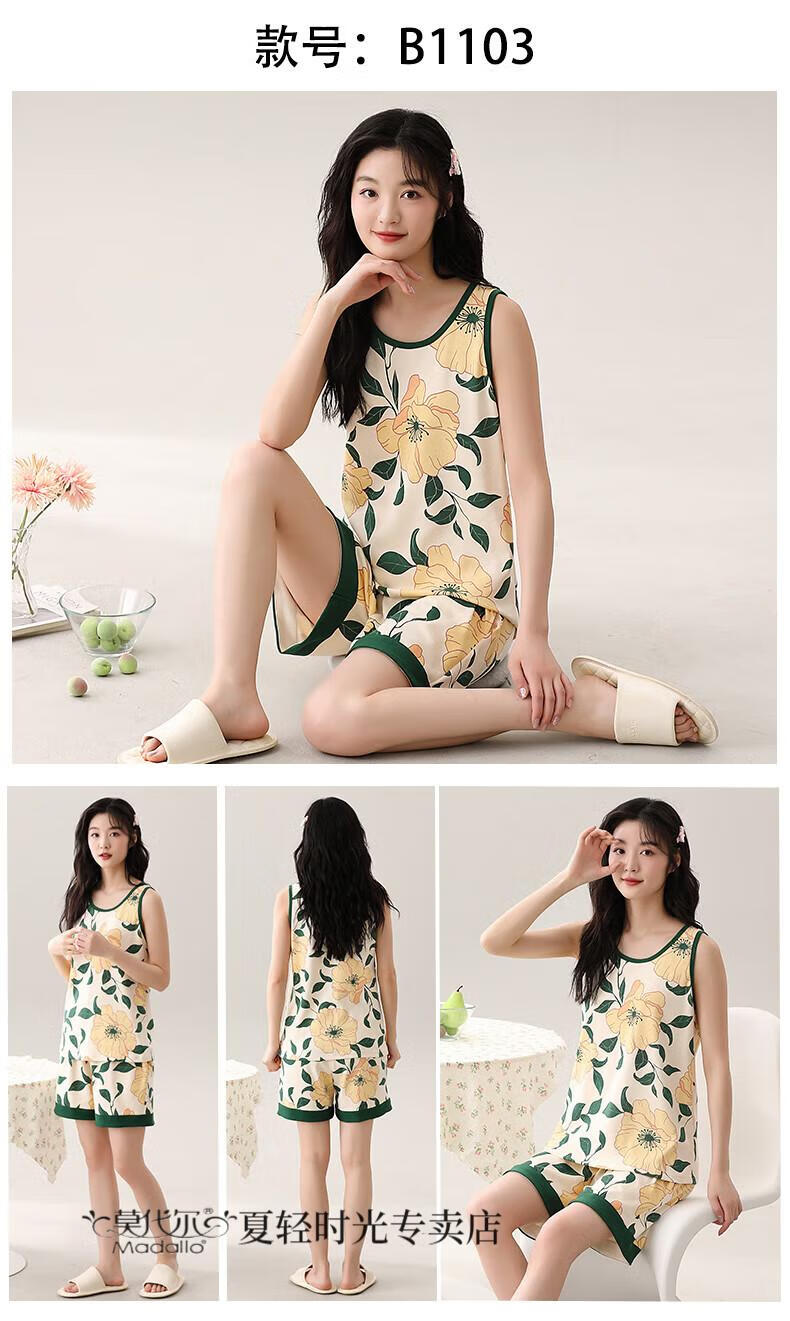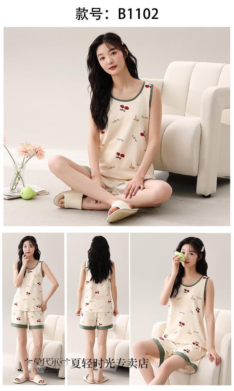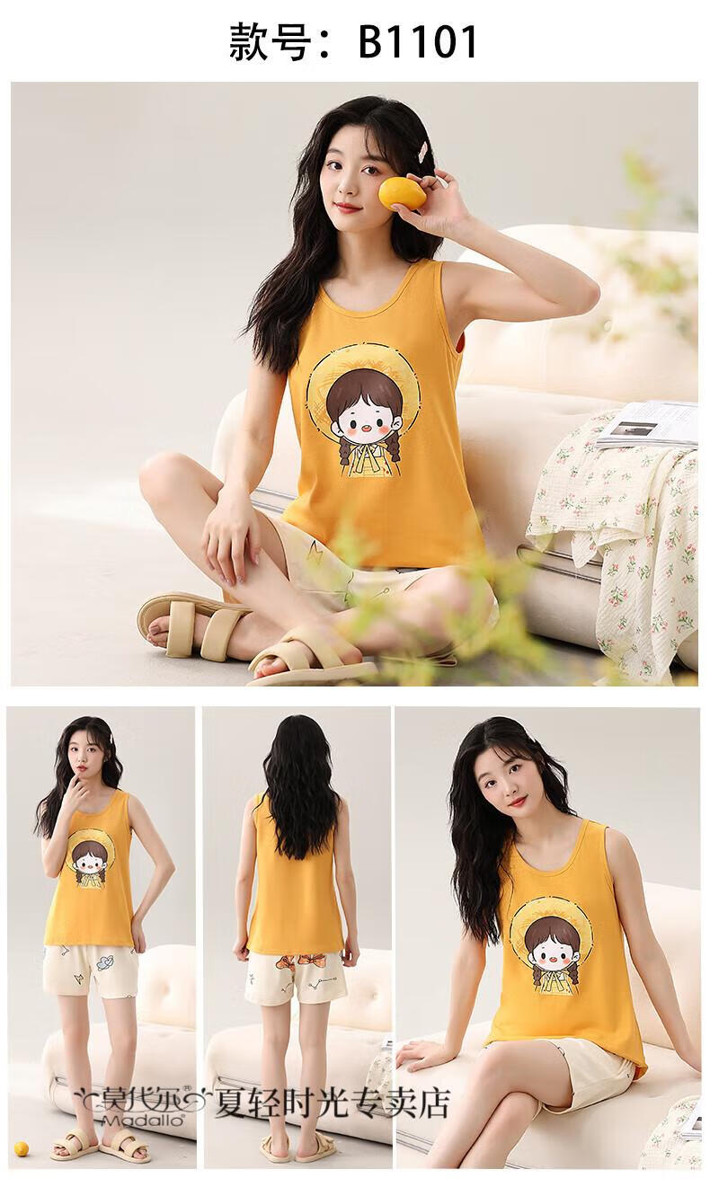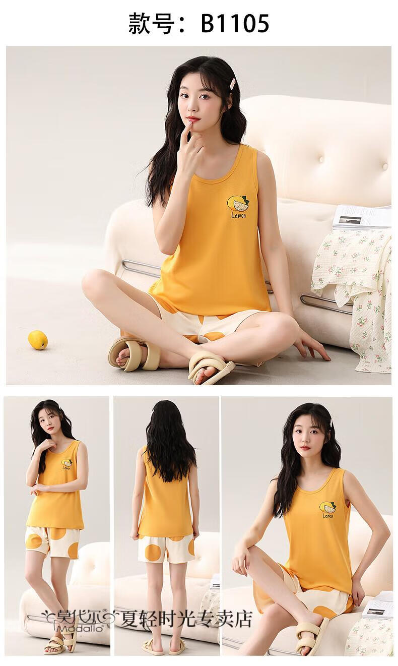莫代尔睡衣女夏2025新款纯棉夏天女士吊带两件套背心带胸垫夏款无袖 带胸垫背心套装:Y-1105 M 女