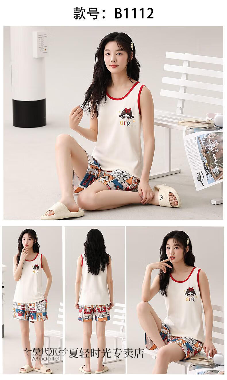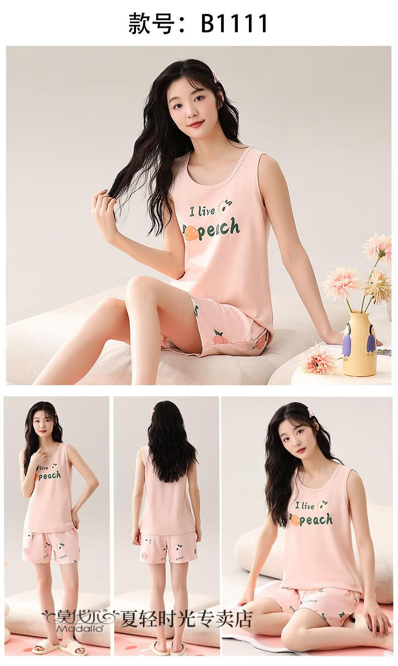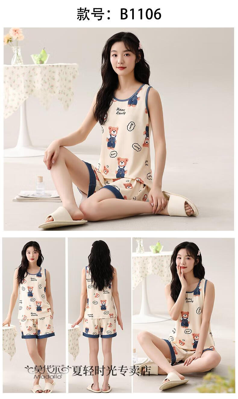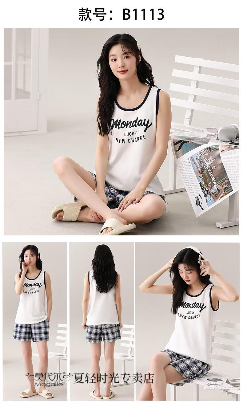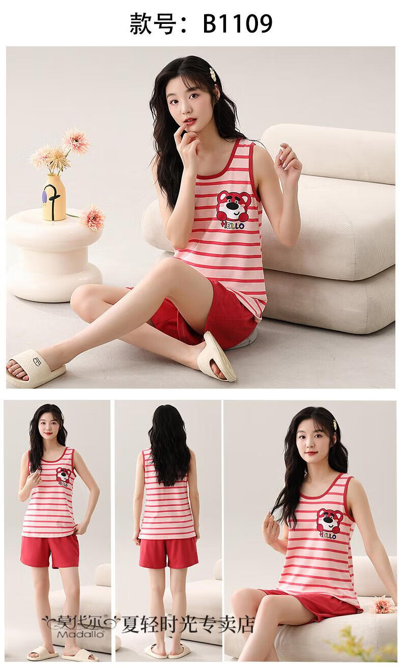 莫代尔睡衣女夏2025新款纯棉夏天女士吊带两件套背心带胸垫夏款无袖 带胸垫背心套装:Y-1105 M 女