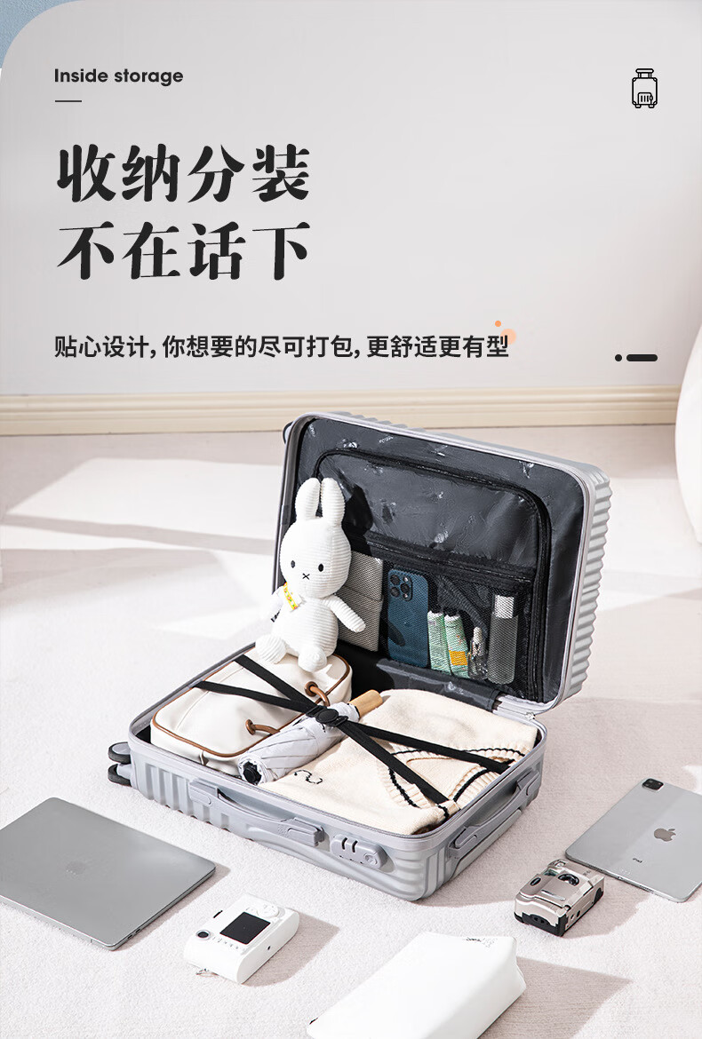 大容量水杯架多功能旅行箱高颜值充电USB拉杆箱万向轮清新行李箱 随机发