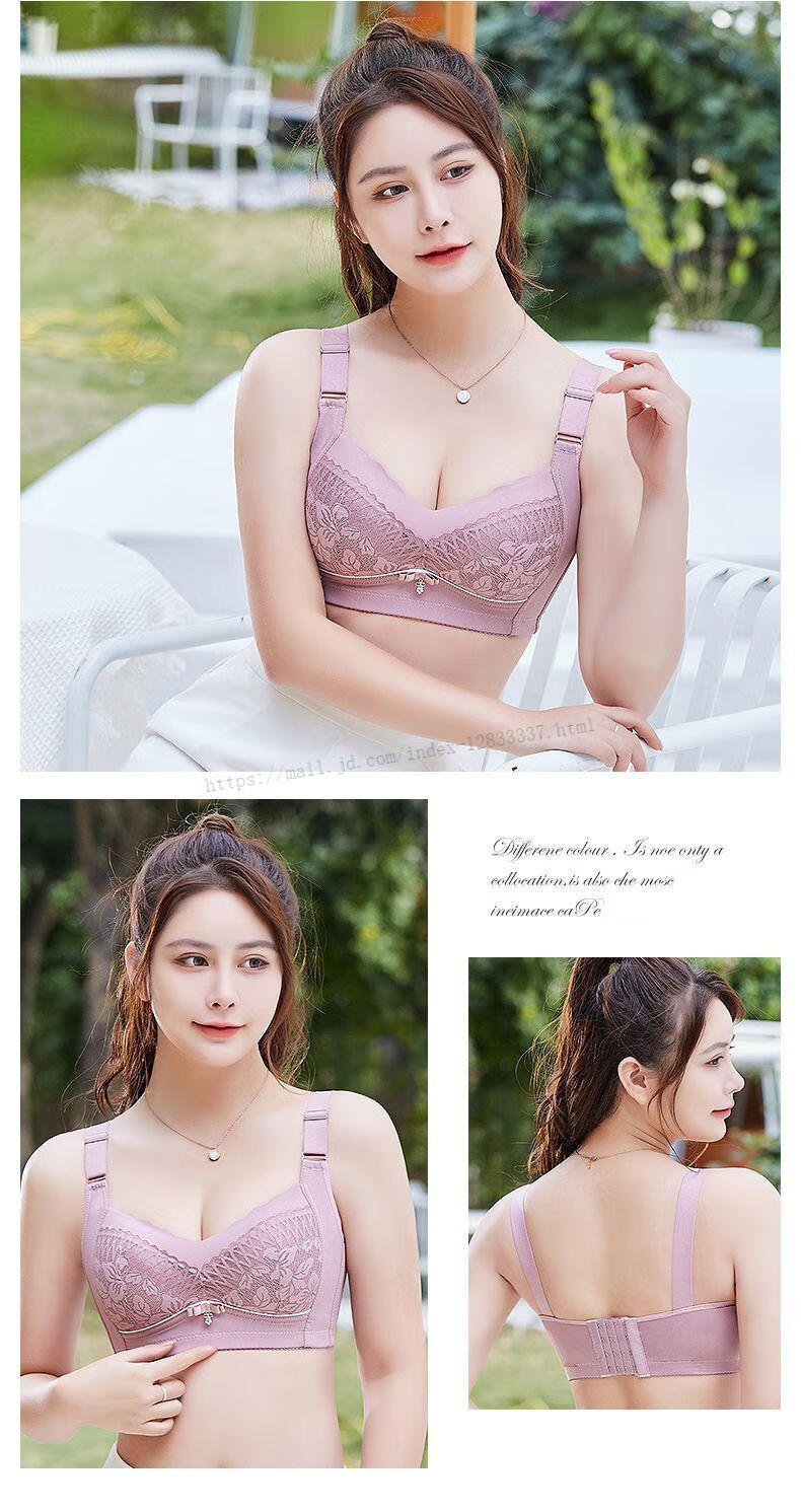 浪莎(LangSha)蕾丝薄款内衣女调整型收副乳文胸无钢圈聚拢防下垂上托性感文胸罩 罗-兰-紫-1件装 80C 36-