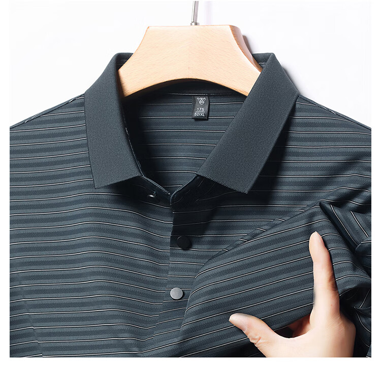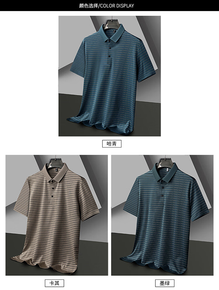 皮尔卡丹(pierre cardin)夏季中年男士桑蚕丝短袖t恤翻领条纹爸爸装体恤polo衫 H9866墨绿 M 165 推荐90-120斤