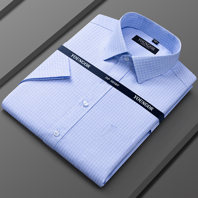 Younger short-sleeved shirt, men's Khmer business casual formal wear, no-iron work plaid white shirt, professional wear 6636 2XL 41 (recommended 158-168 Jin Jin equals 0.5 kg)