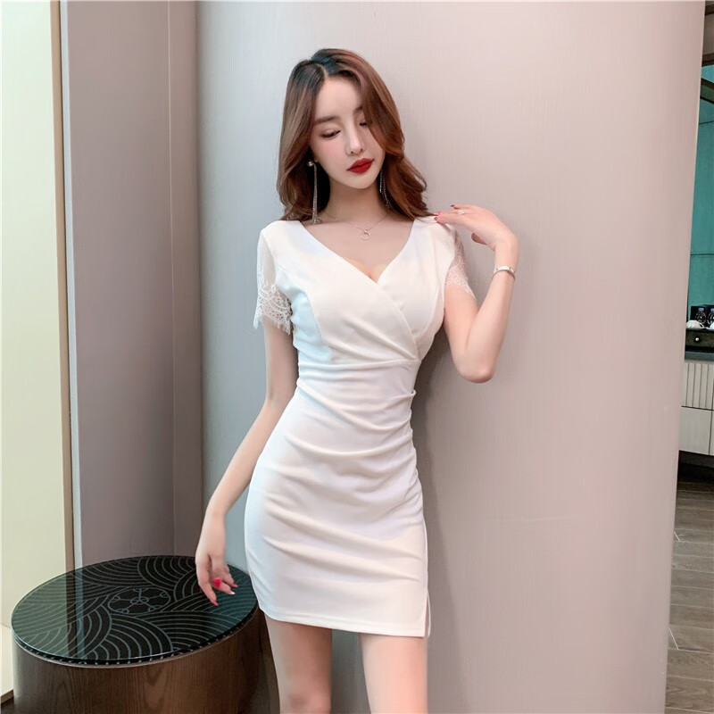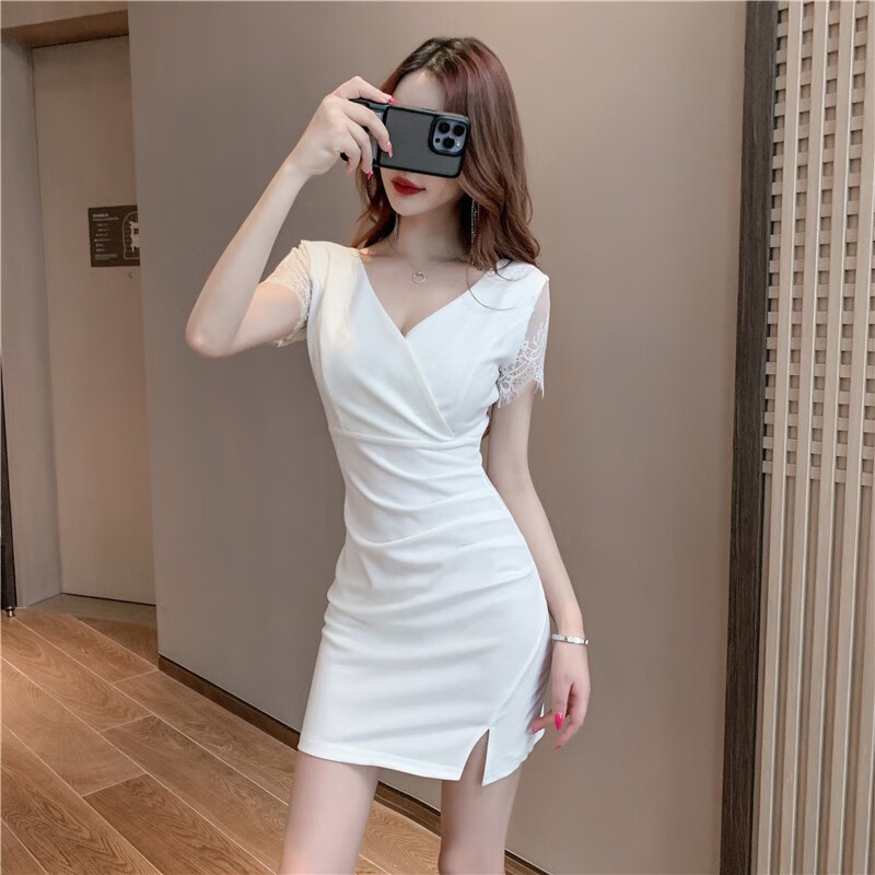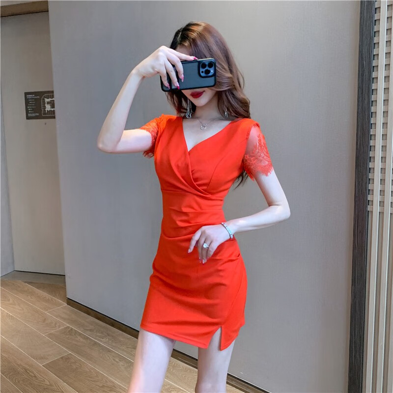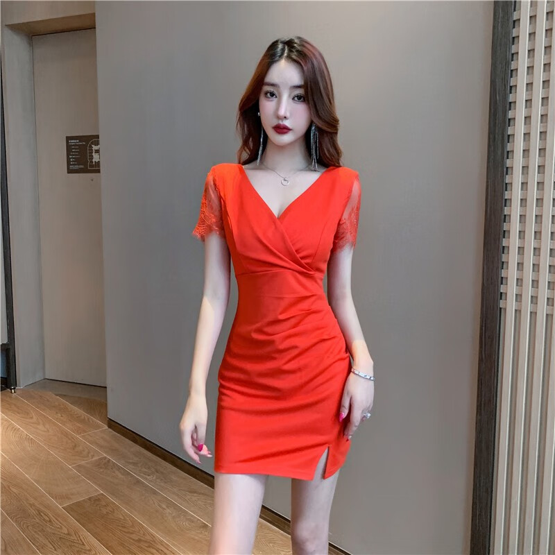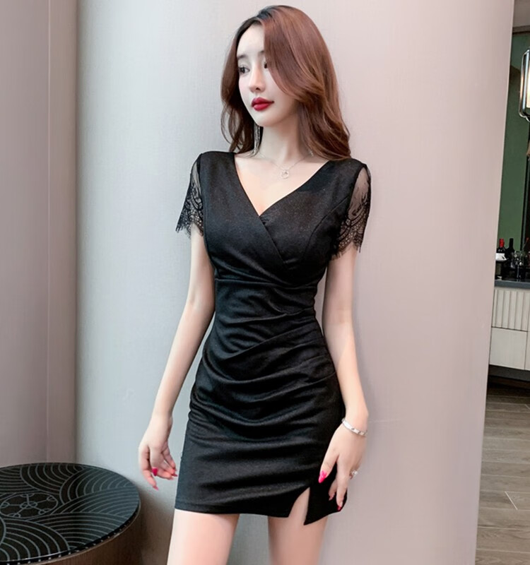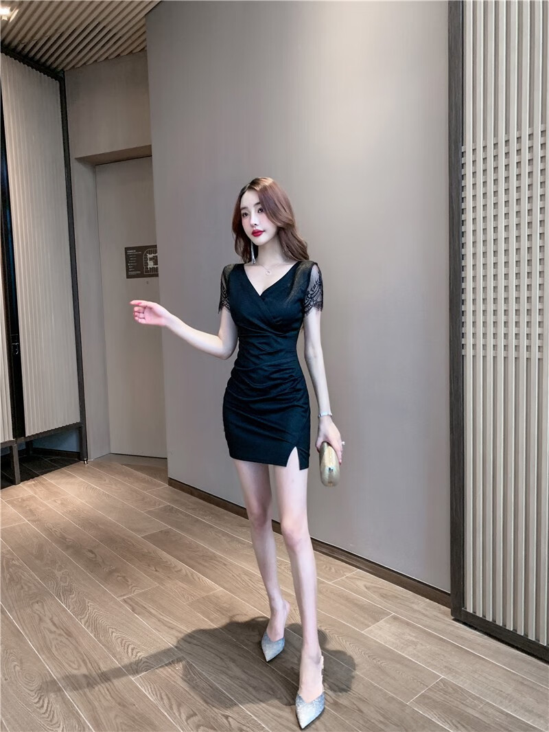 冉艺岚同款黑色气质紧身领连衣裙新款足疗足浴工服水疗技师性感包臀短裙 3897黑色 S 建议80-95斤