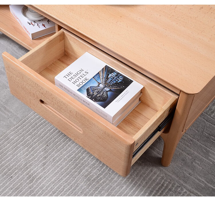 Beech all solid wood double-layer coffee table Kung Fu tea table Chinese style living room pure log rectangular corner side table Dream No. 2 coffee table 13570 fully painted all beech four-button assembly
