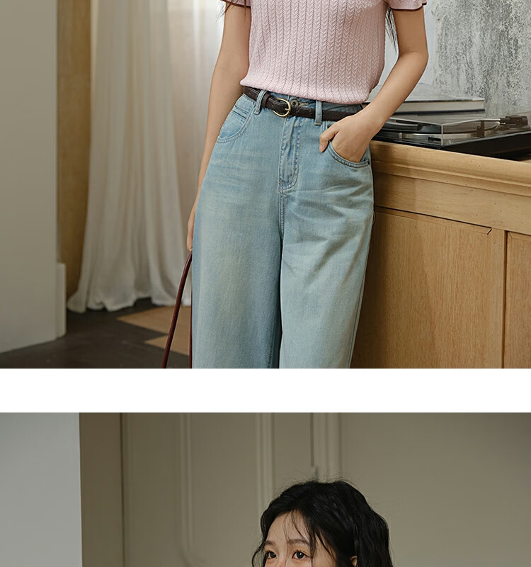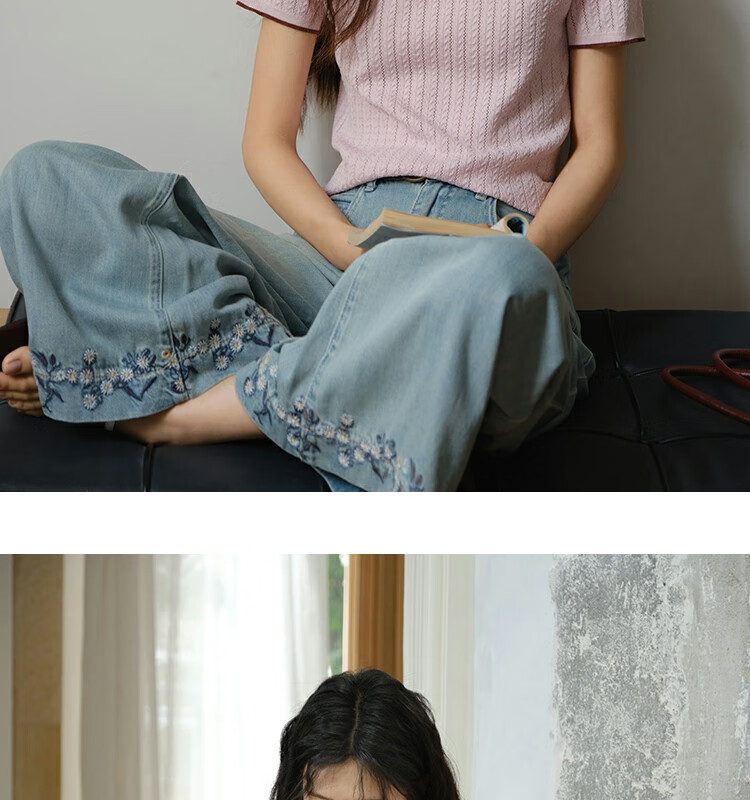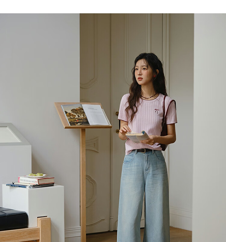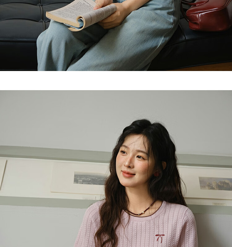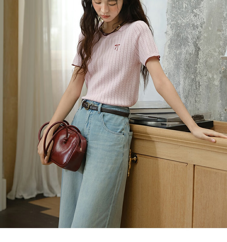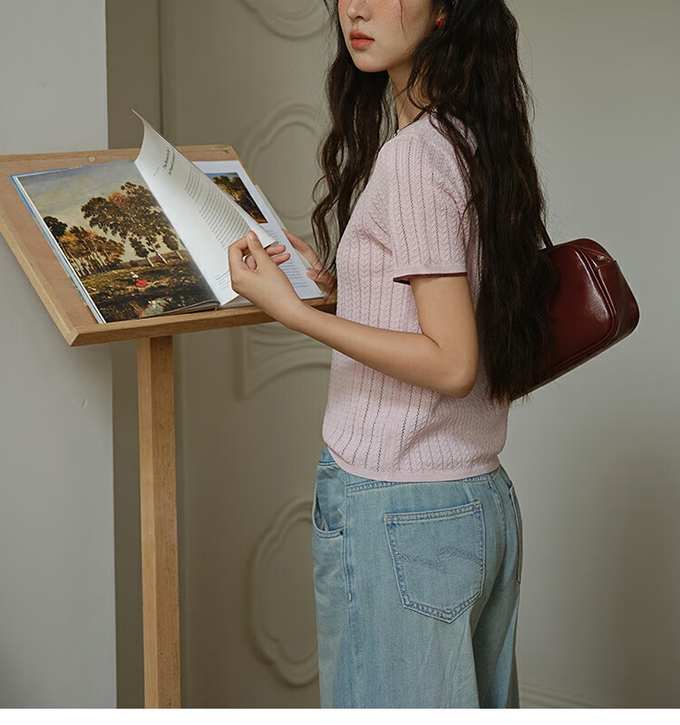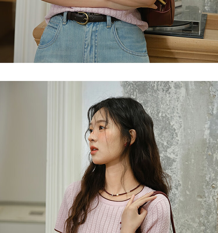 谜秀樱花粉挑空扭绳针织衫2025夏季新款蝴蝶结刺绣撞色边设计短款上衣 花色 樱花粉 上衣 M