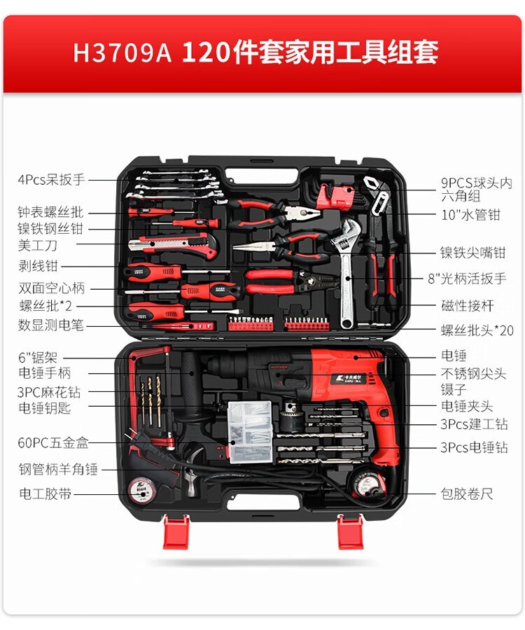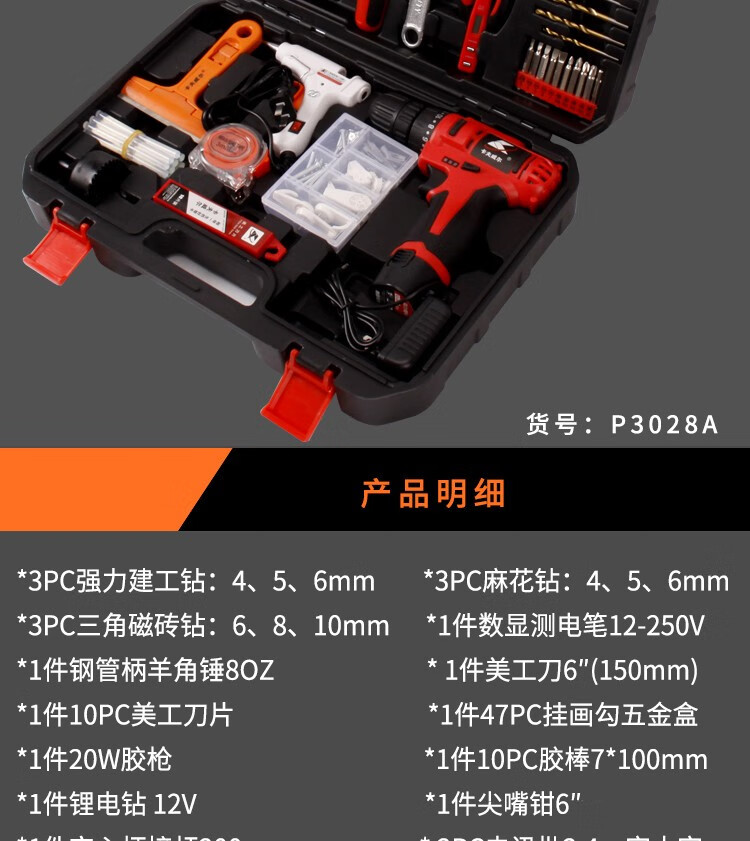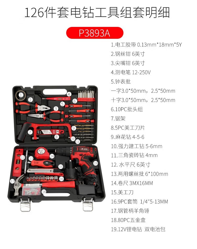 三栖虎家用手电钻工具套装五金专用工具组合日常维修多功能家用套装 126件套电钻工具组套P3893A