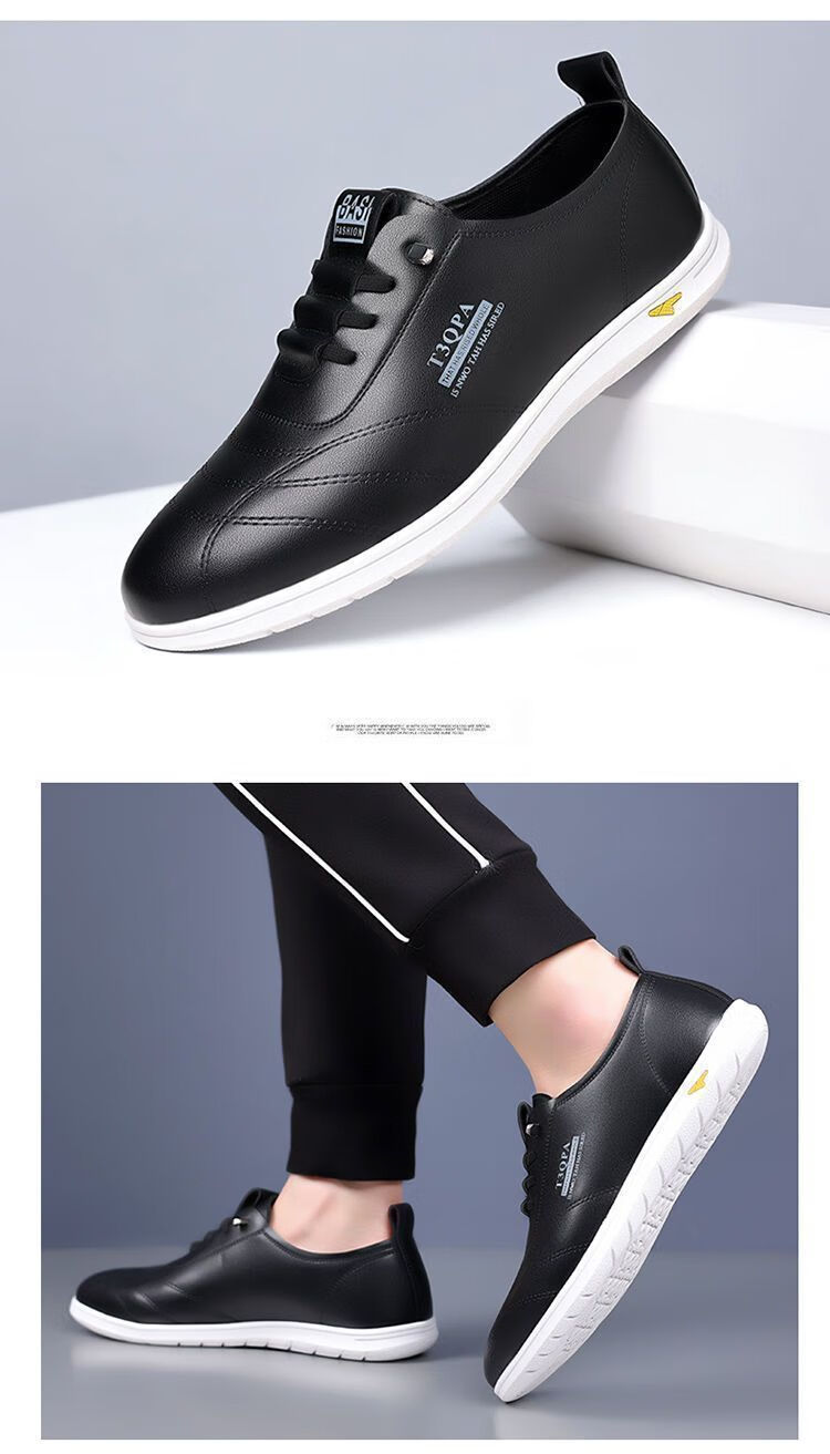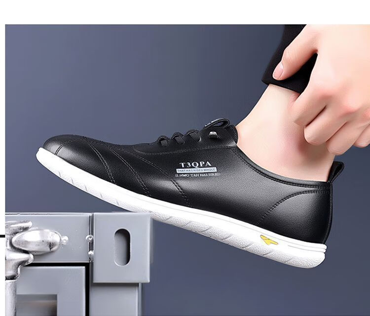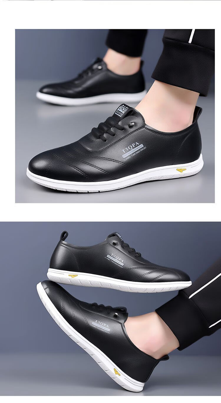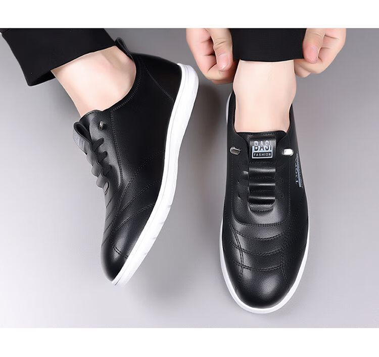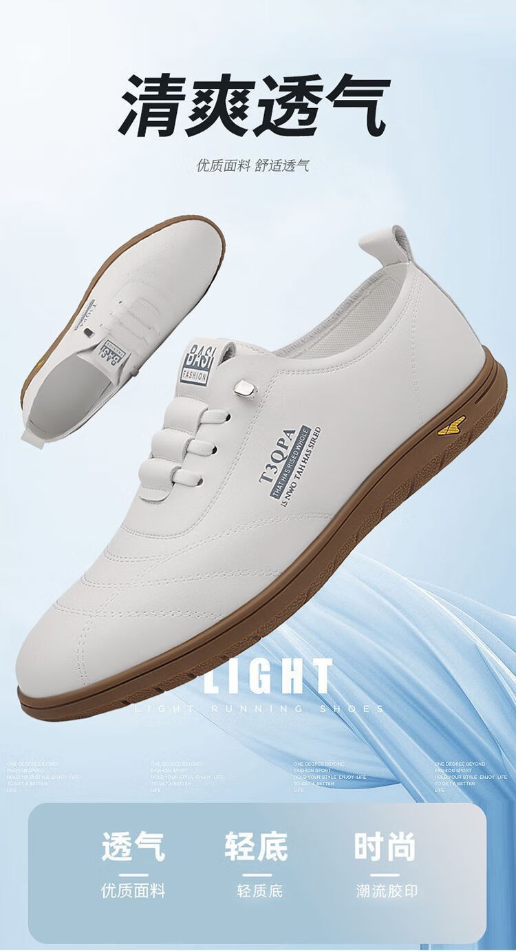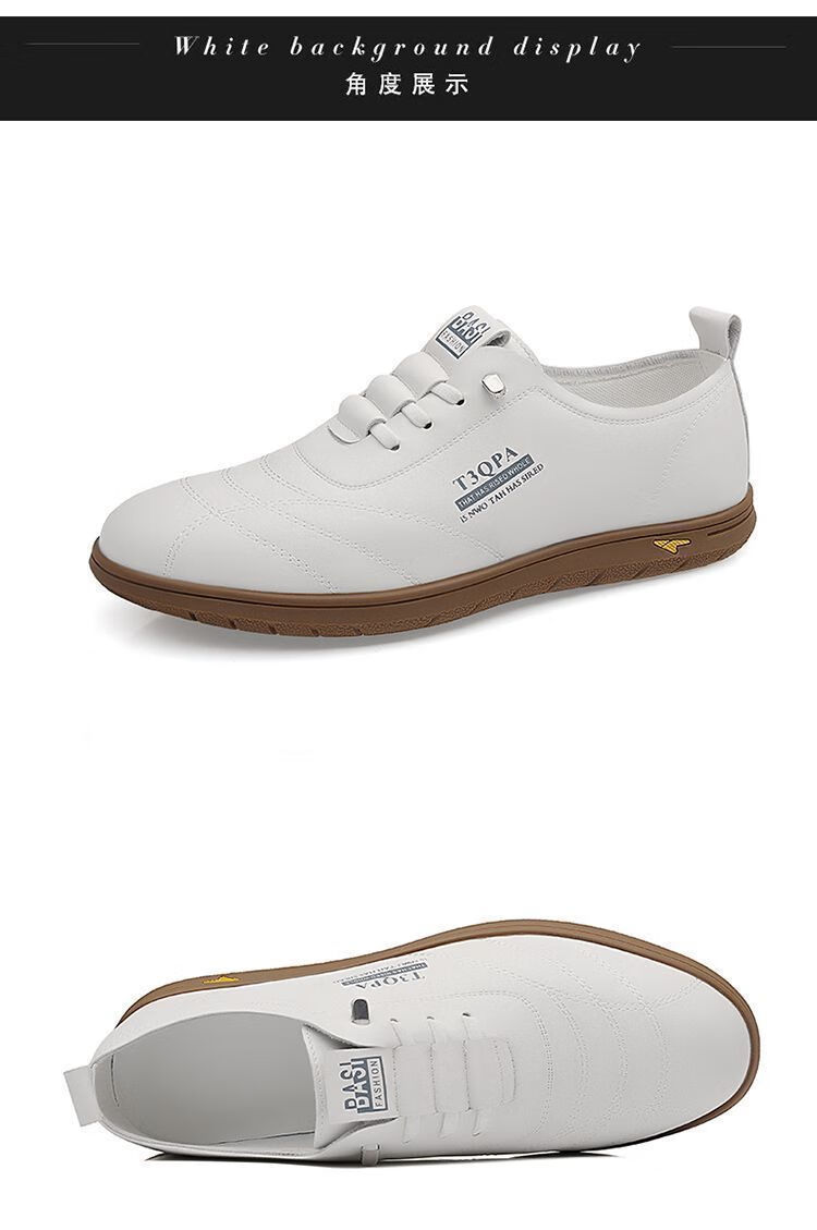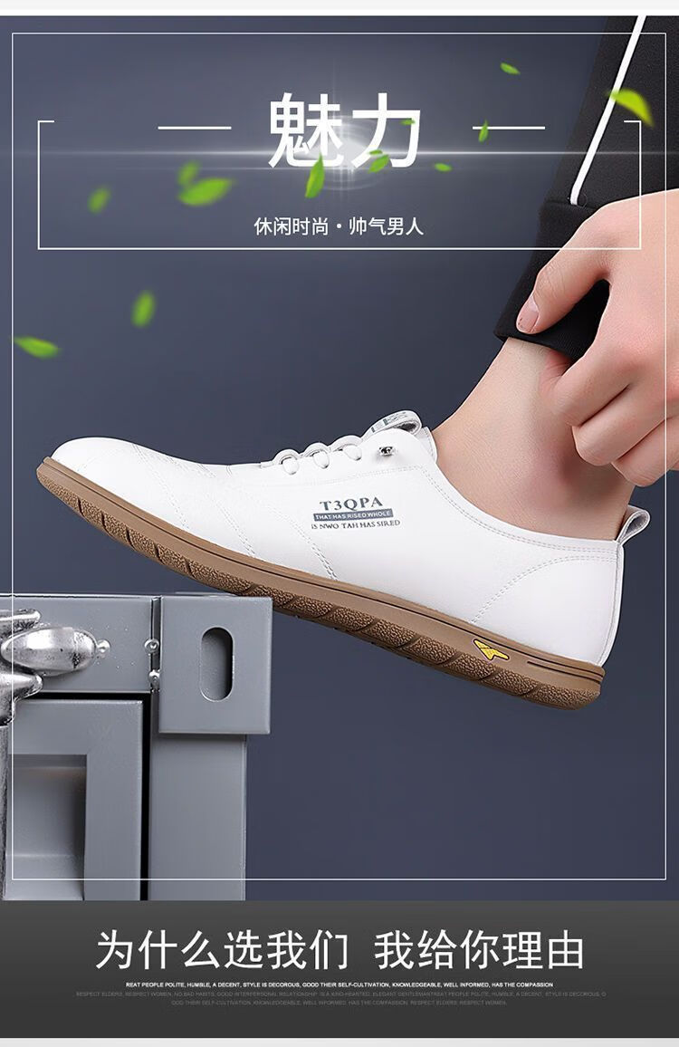 蜻蜓牌男鞋2025新款男士皮鞋真皮透气软底休闲驾车潮流百搭小白鞋 【9715】-白色【软皮软底】 44 标准皮鞋码