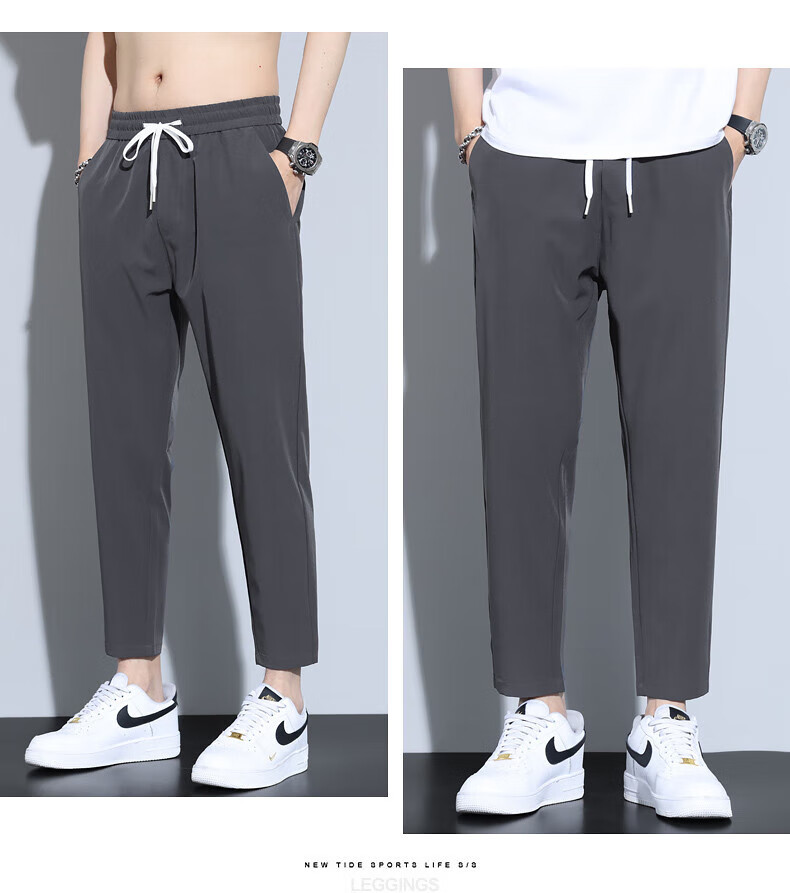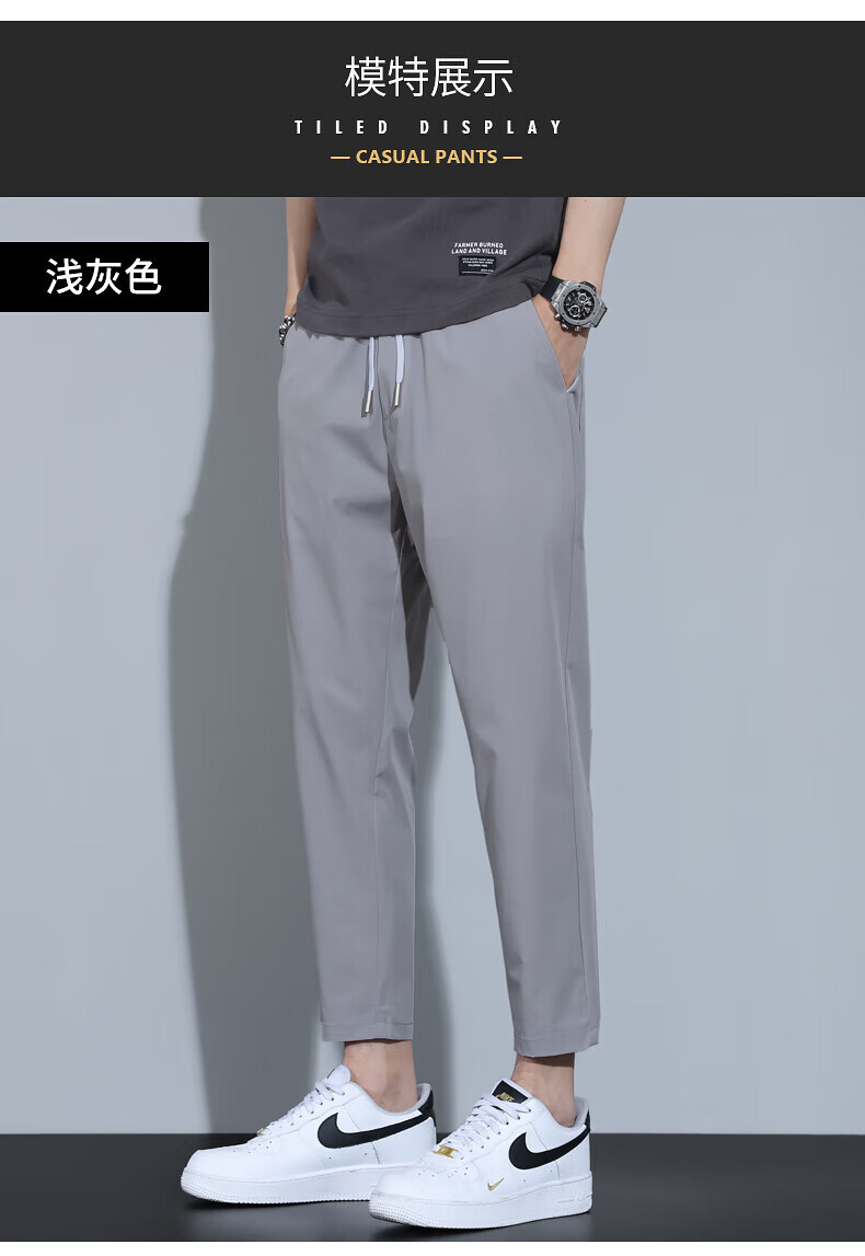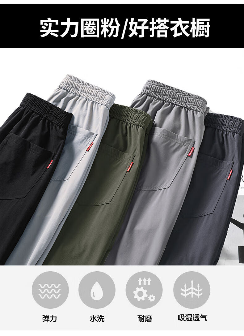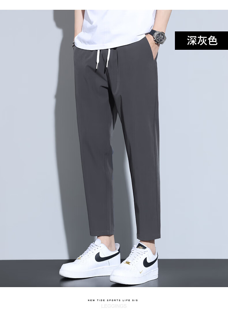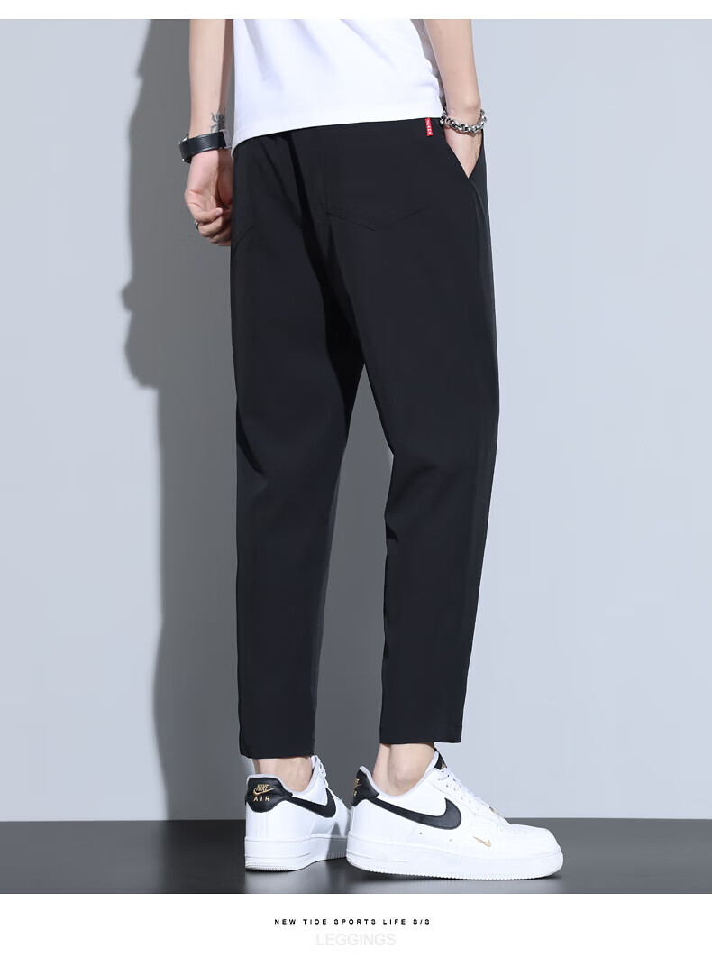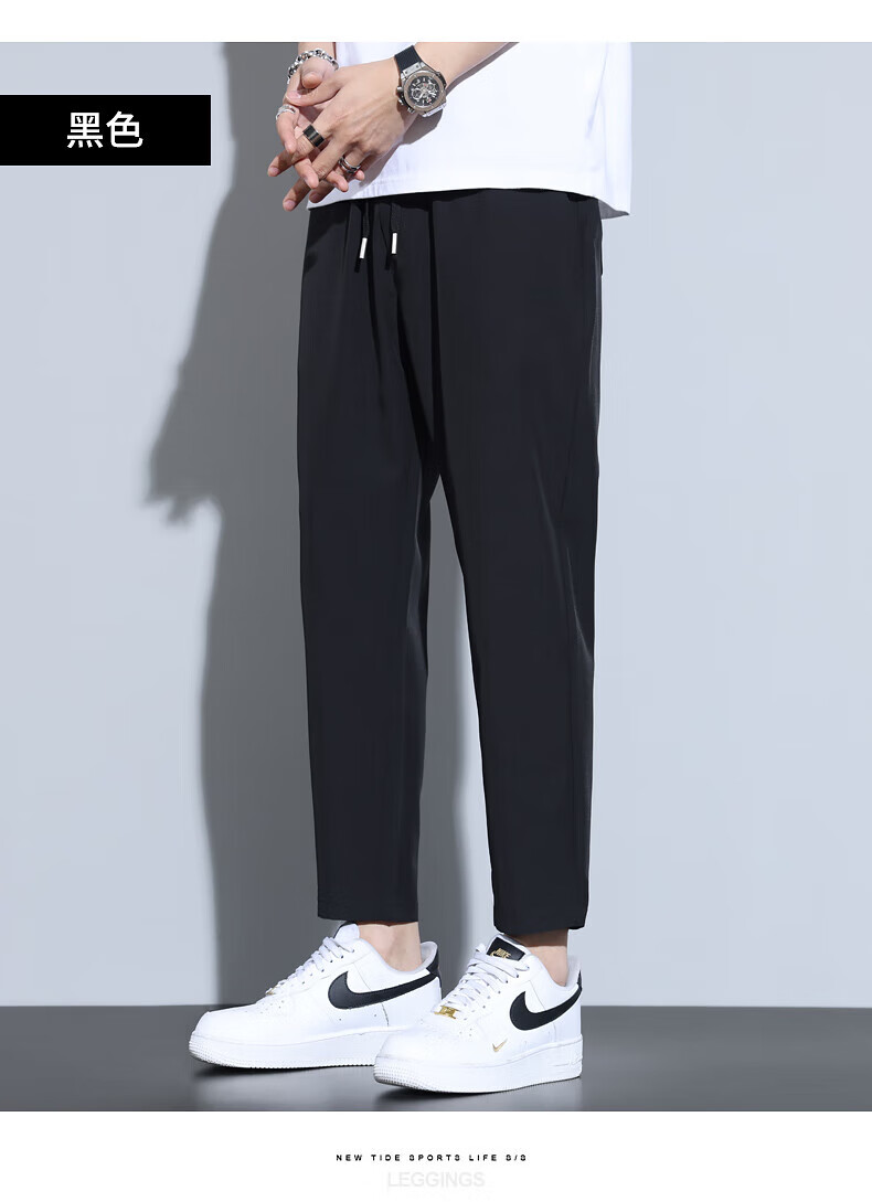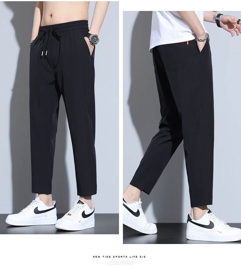 海澜之家冰丝休闲裤男款夏季薄款坠垂感速干运动男裤宽松直筒夏天九分裤子 718黑色 M