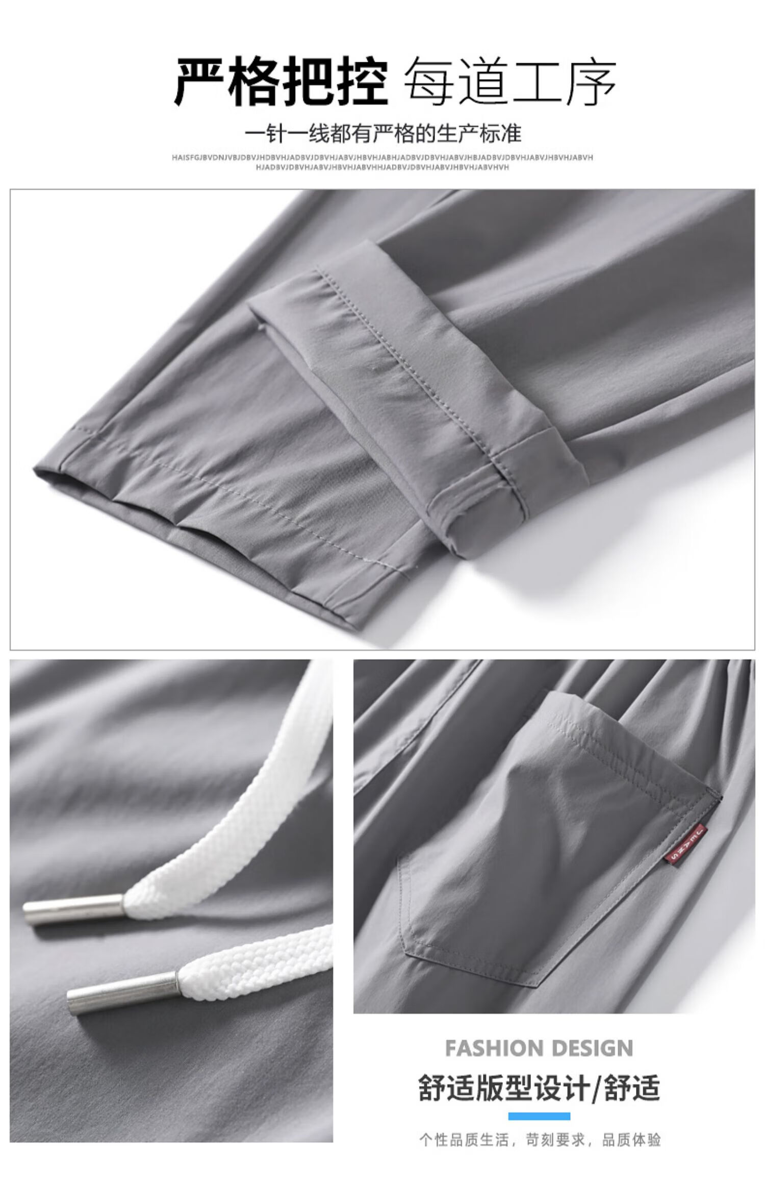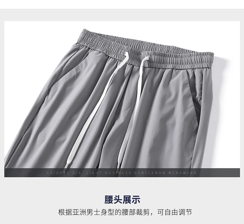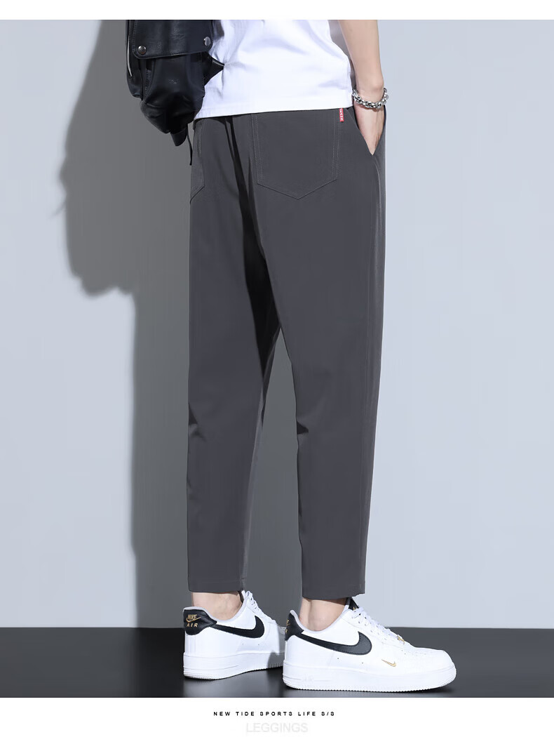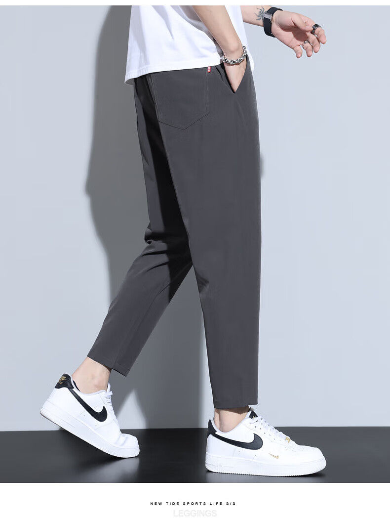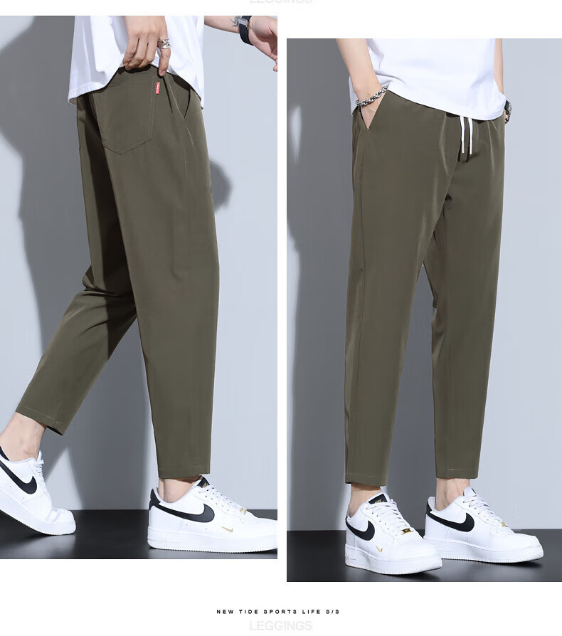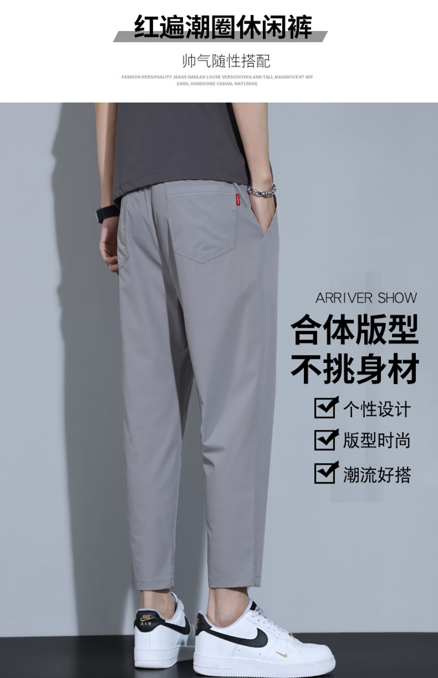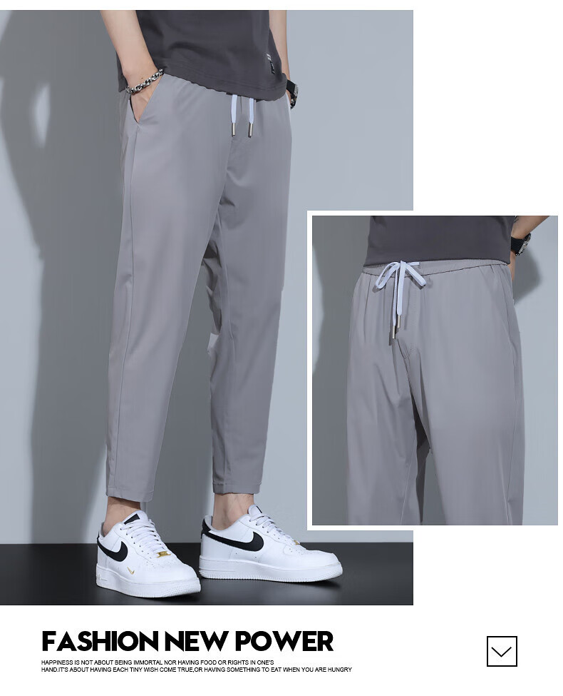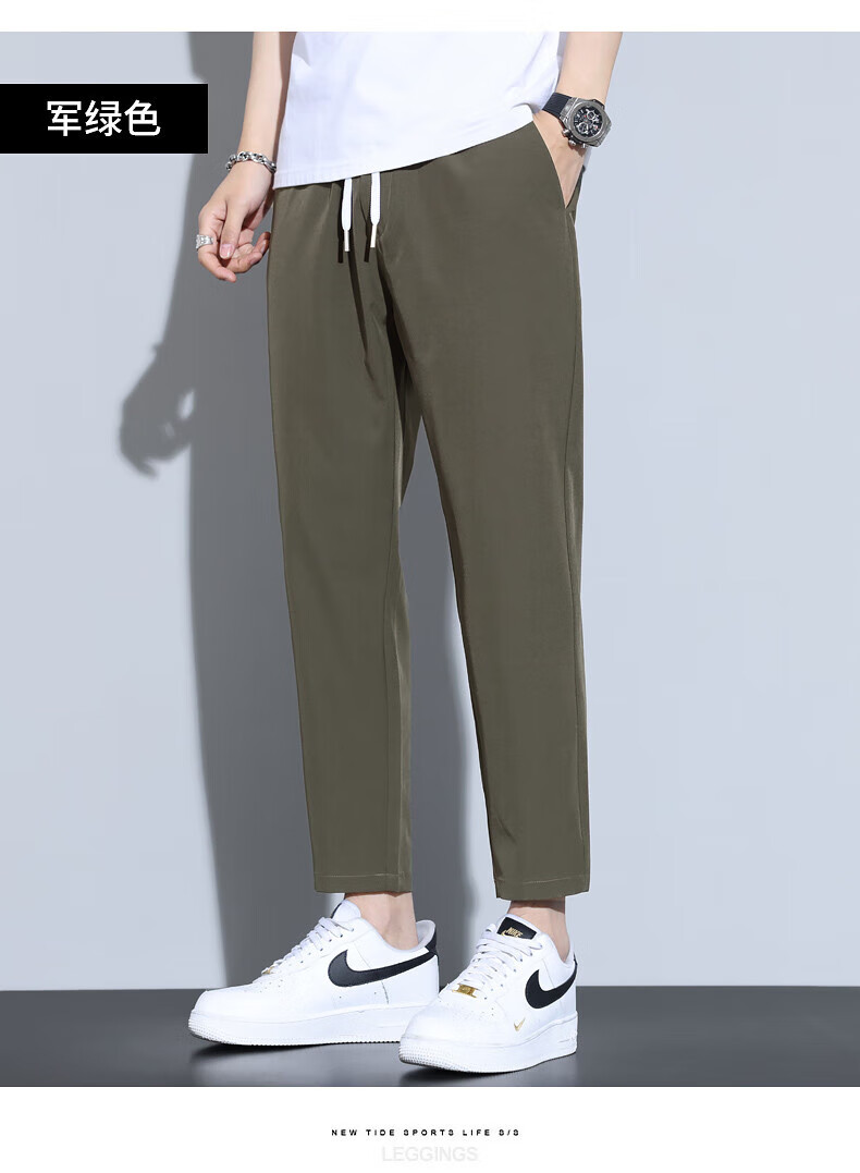 海澜之家冰丝休闲裤男款夏季薄款坠垂感速干运动男裤宽松直筒夏天九分裤子 718黑色 M