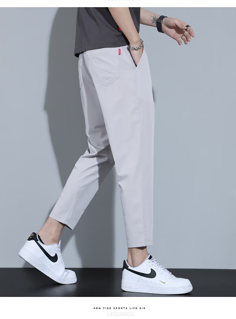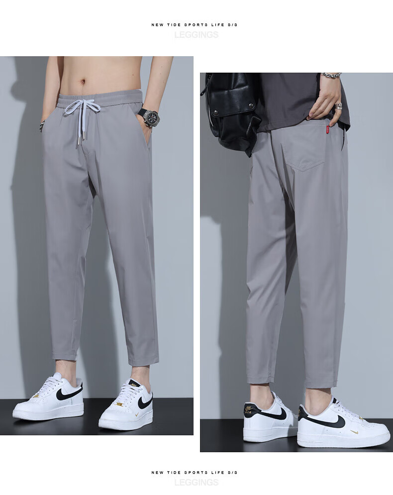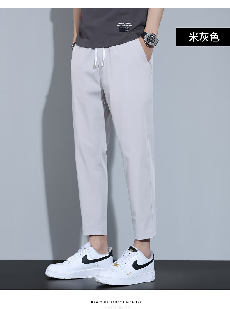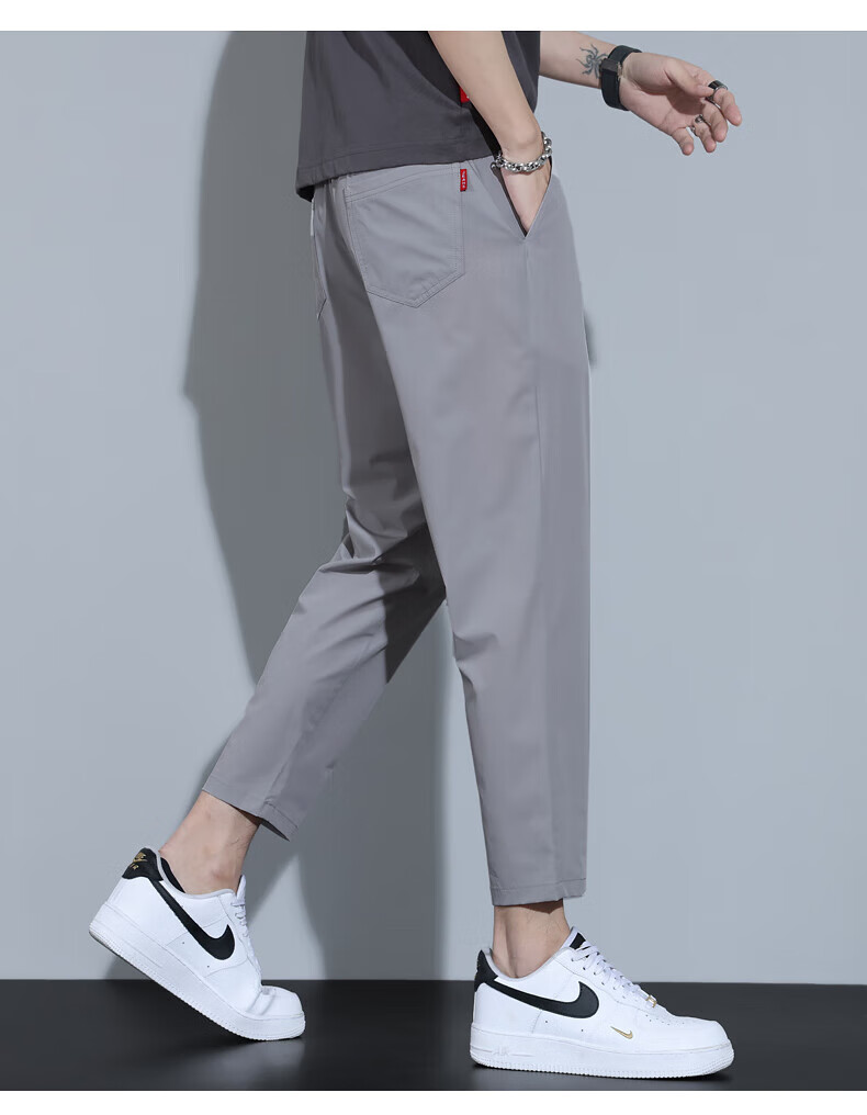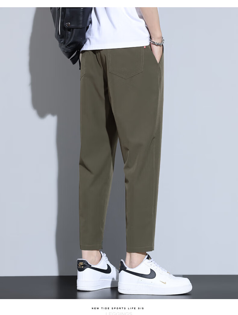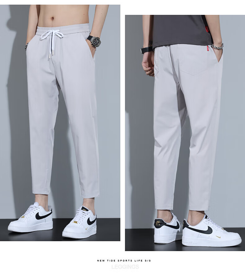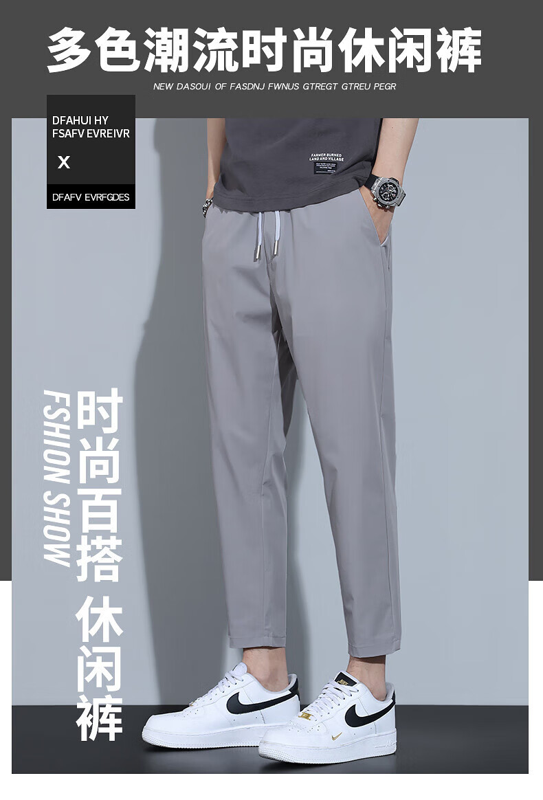 海澜之家冰丝休闲裤男款夏季薄款坠垂感速干运动男裤宽松直筒夏天九分裤子 718黑色 M