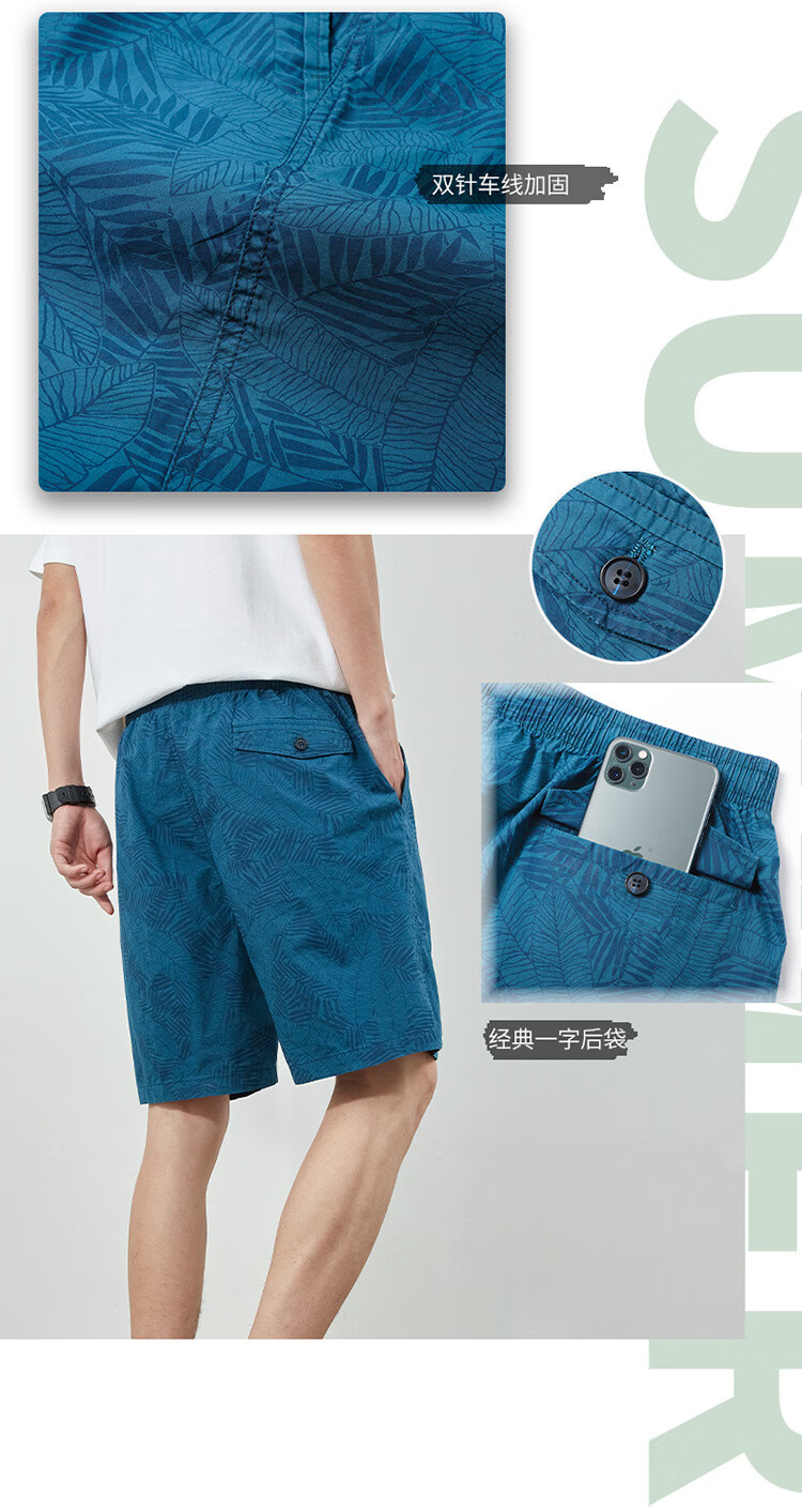 与狼共舞夏季短裤男士纯棉纯色休闲大裤衩外穿男装宽松简约五分裤男士裤子 9215深蓝色 3XL