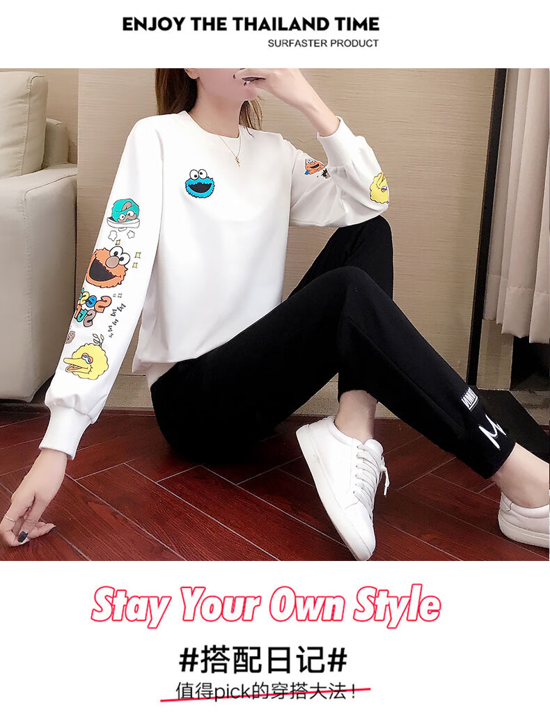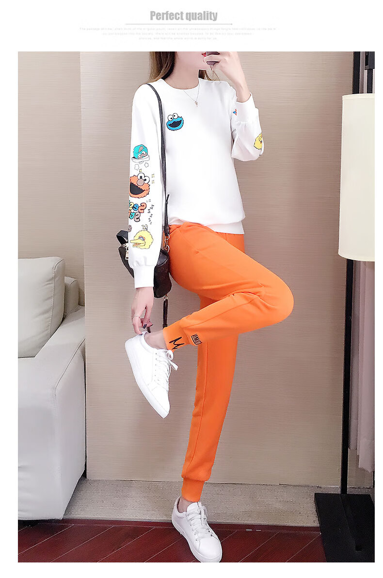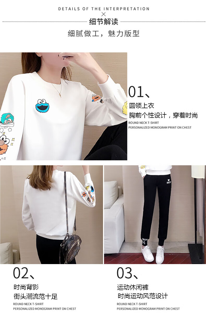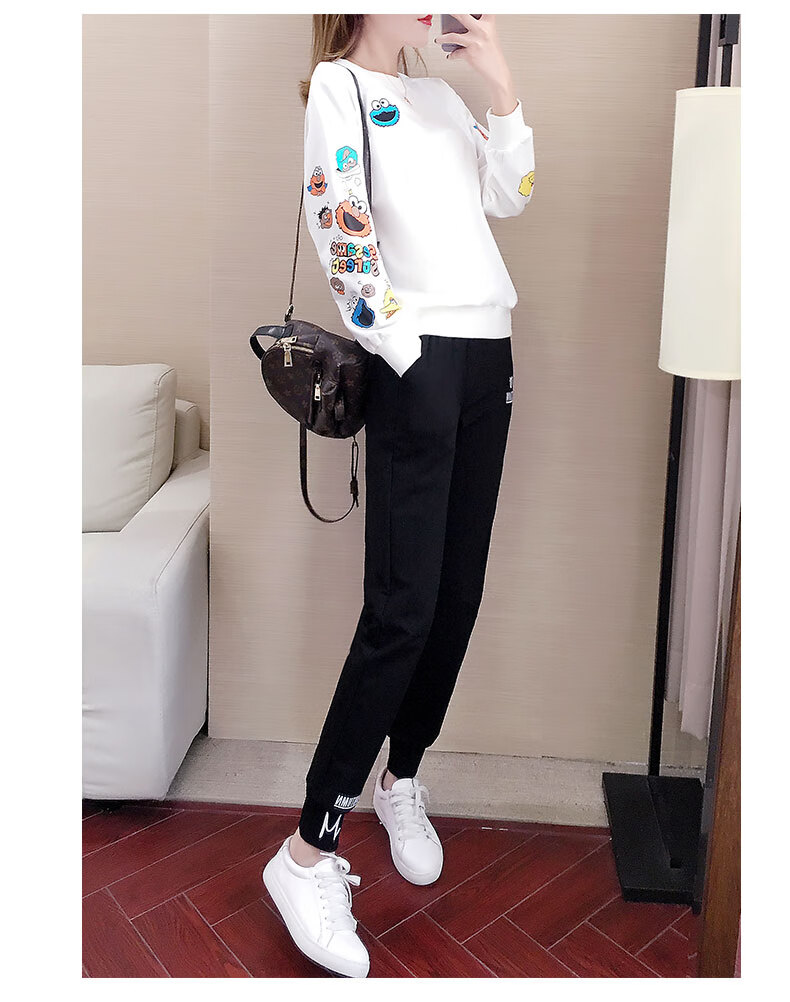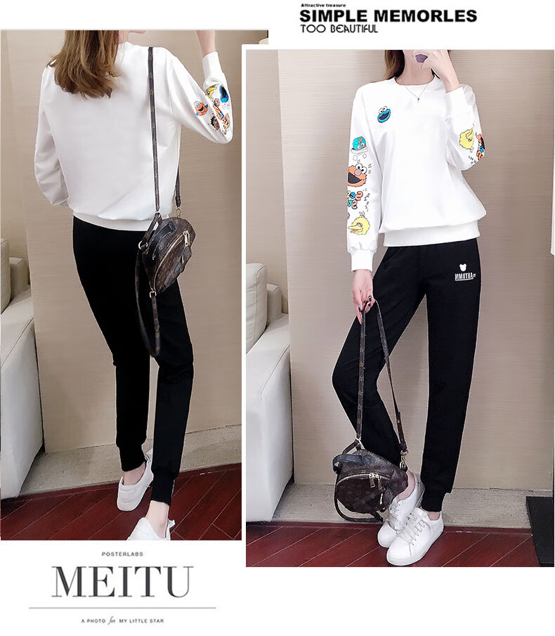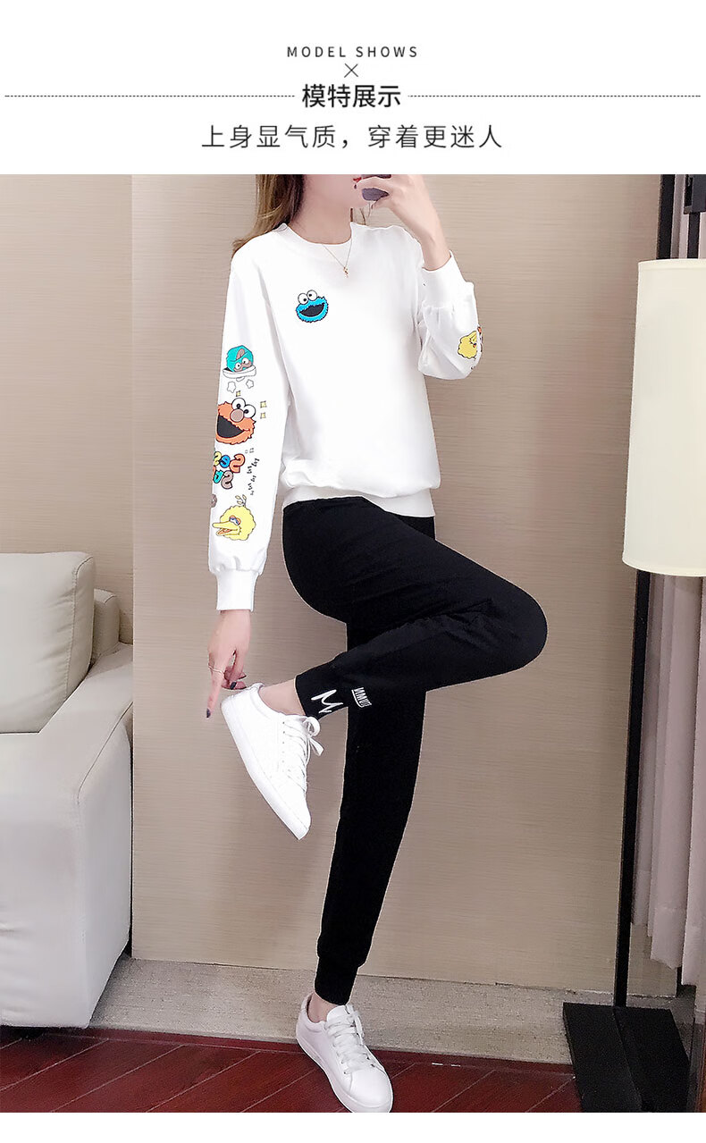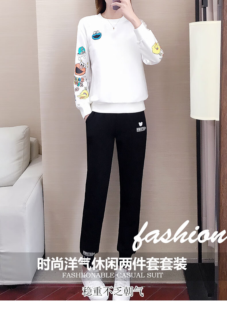 MAGIOPY international luxury high-end brand sports suit women's spring new style 2025 Korean version trendy and fashionable round neck suit 6237 white top + black pants (plus velvet) M