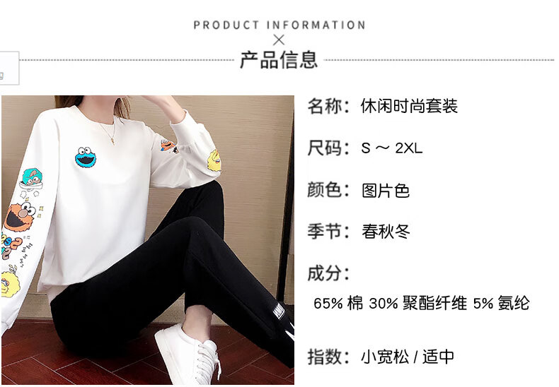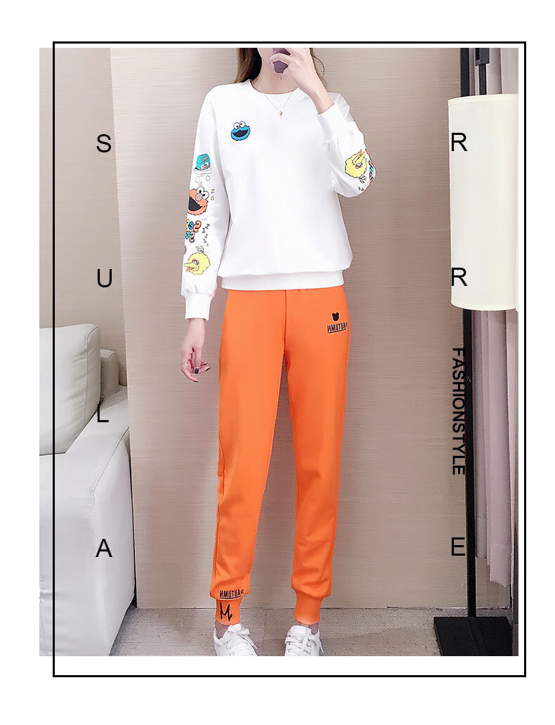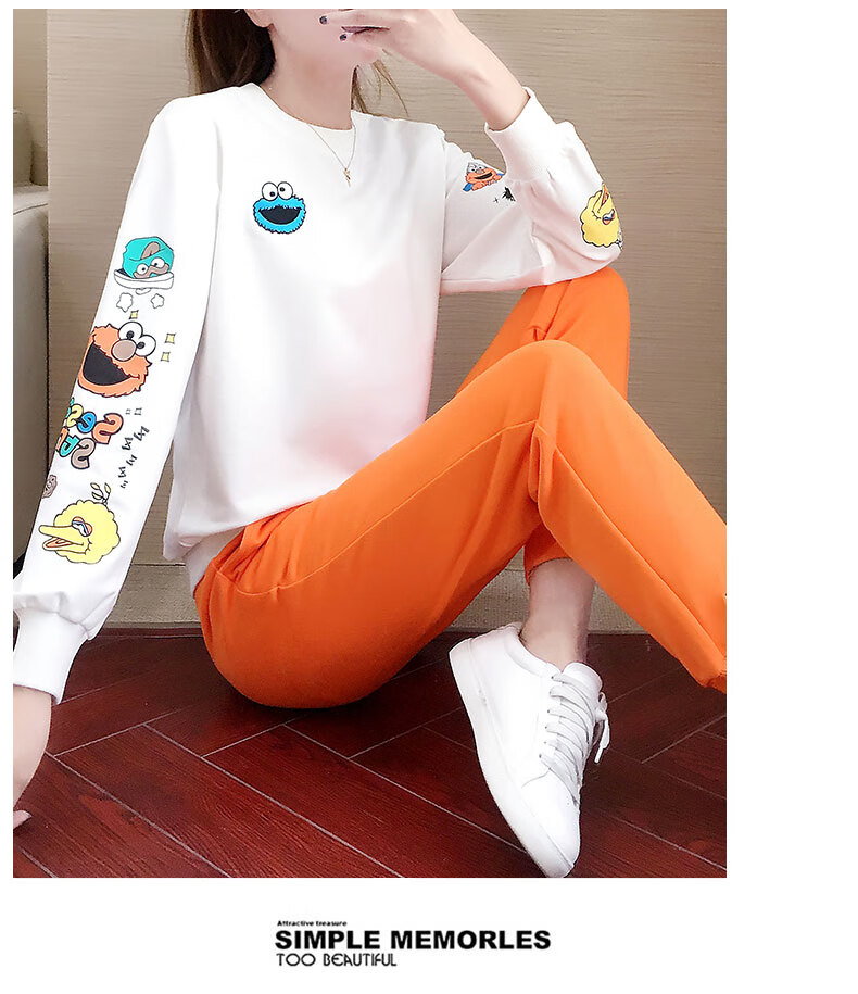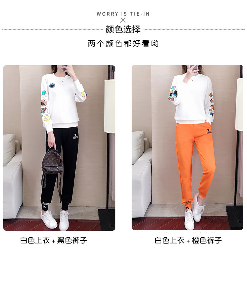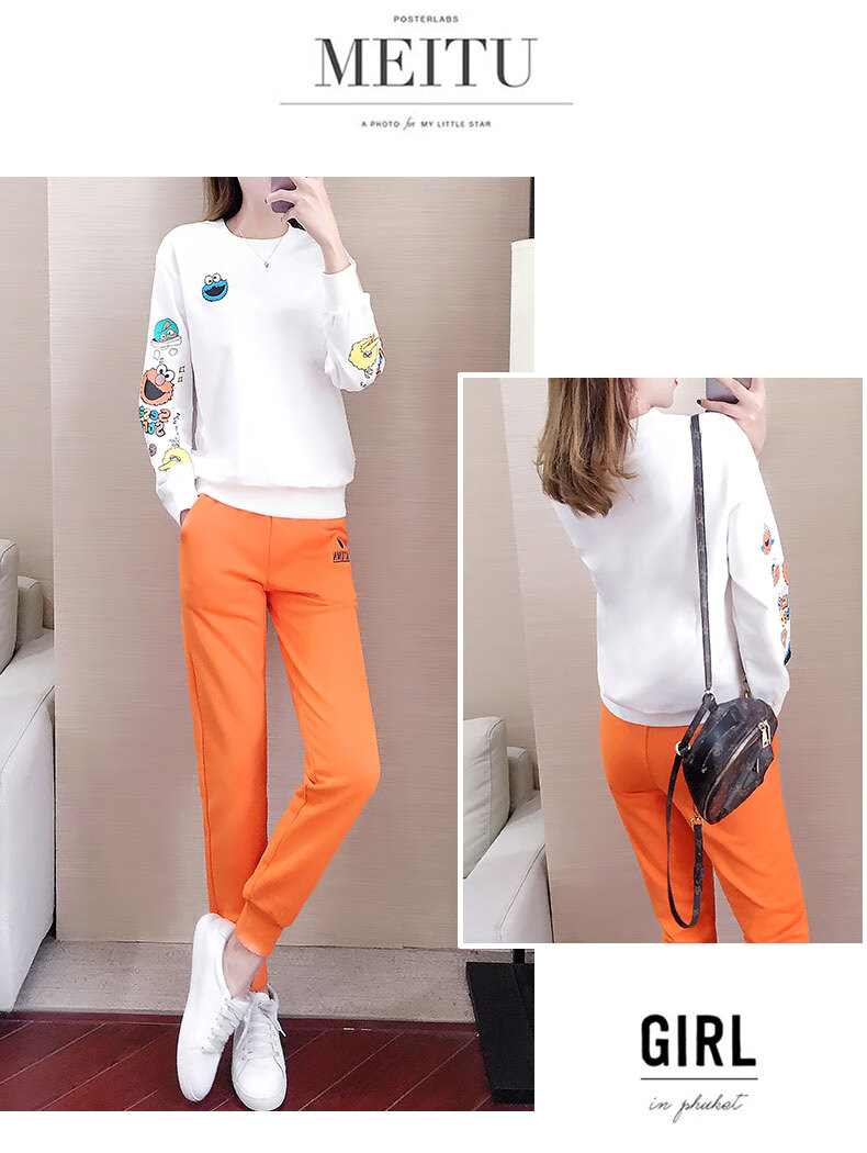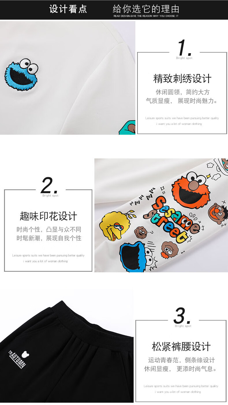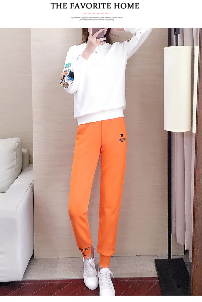 MAGIOPY international luxury high-end brand sports suit women's spring new style 2025 Korean version trendy and fashionable round neck suit 6237 white top + black pants (plus velvet) M
