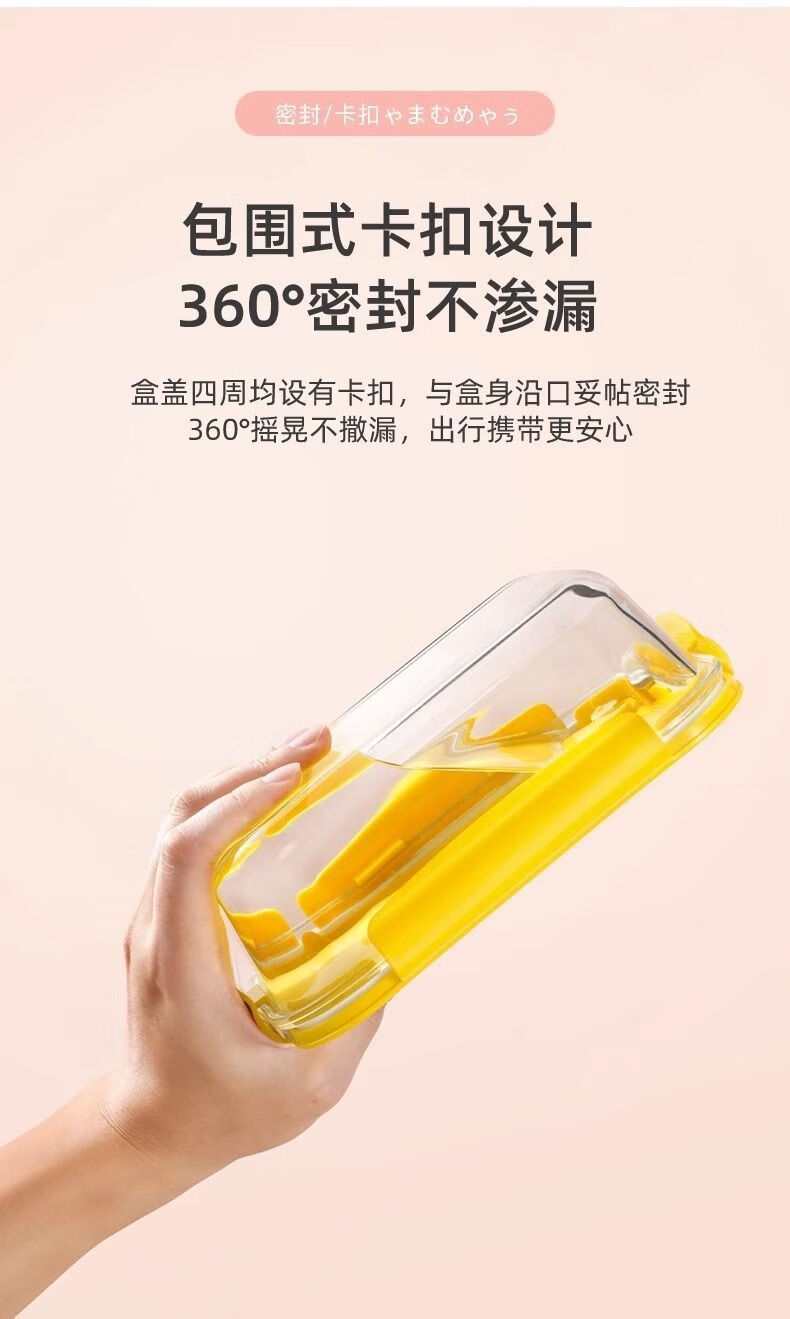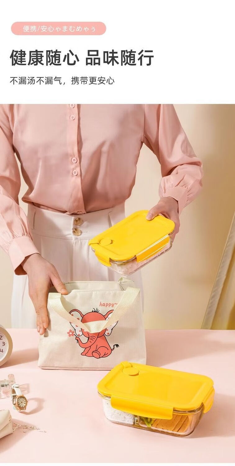 润华年玻璃饭盒可加热微波炉专用上班族带饭带盖餐盒分隔断不串味便当盒 天空蓝 大长无格1098ml