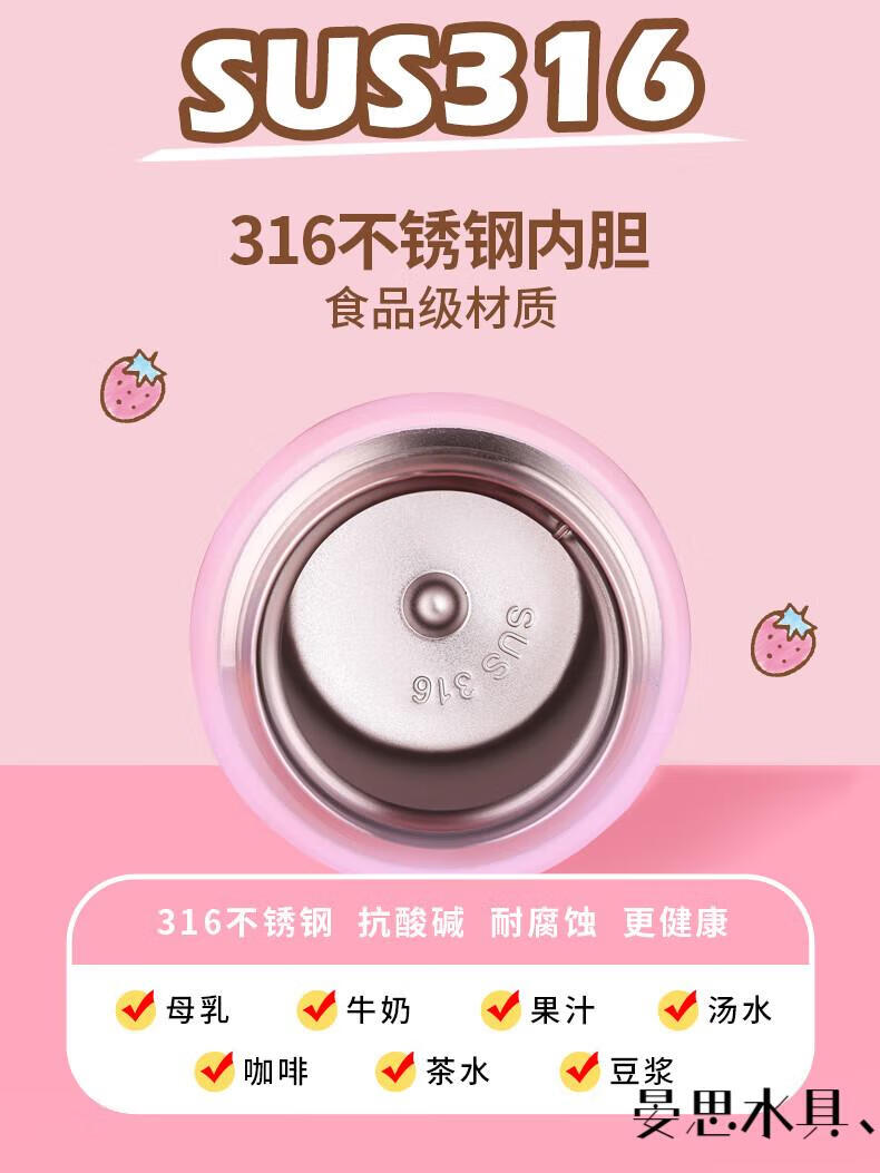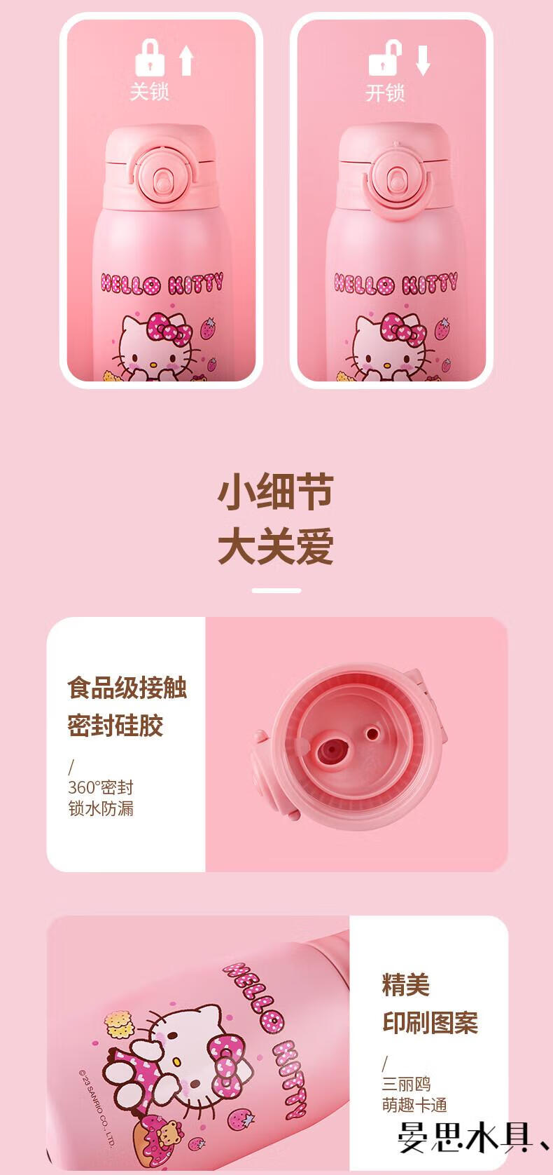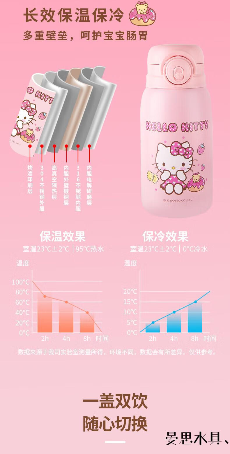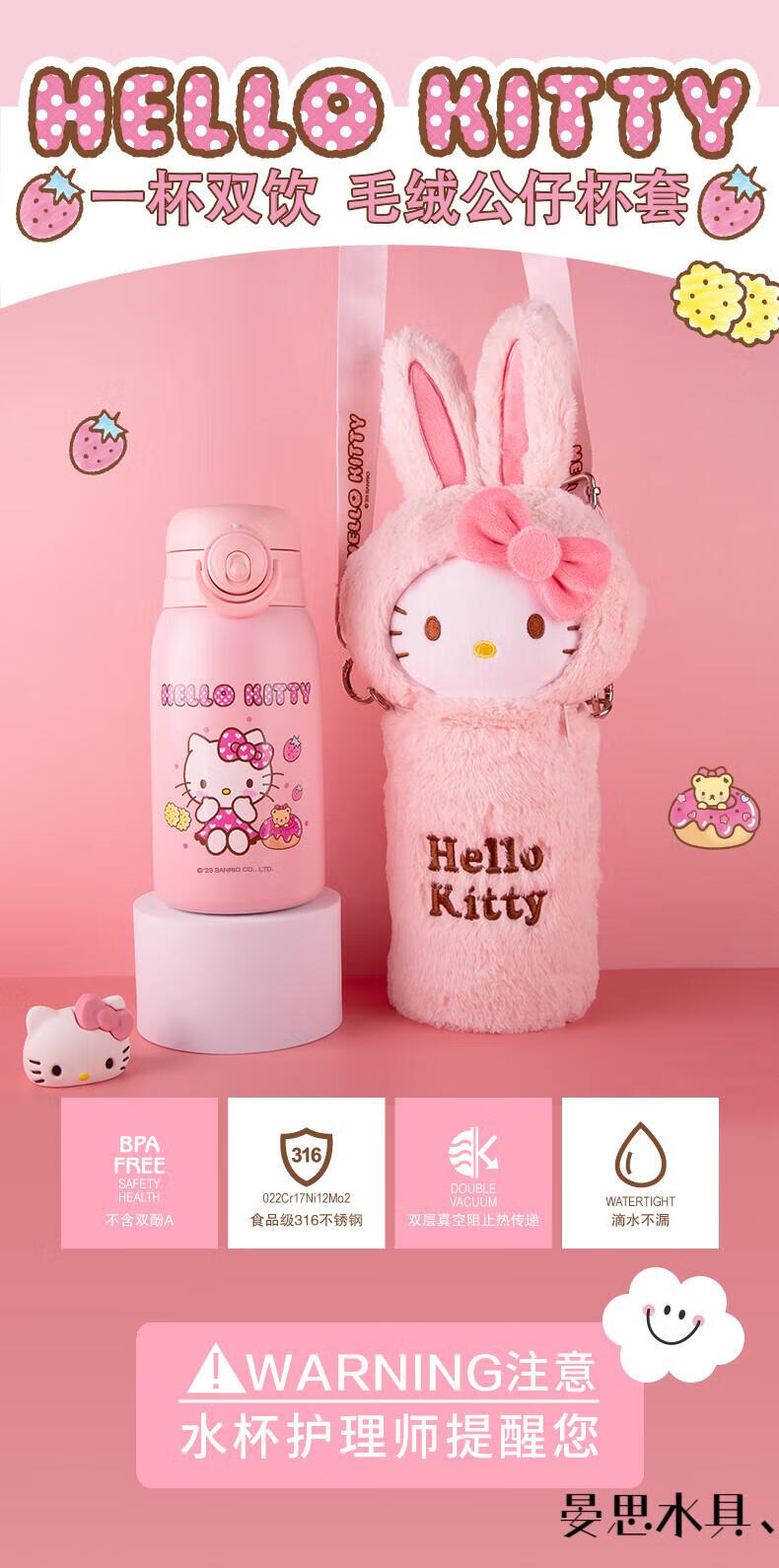 Disney Hello Kitty Children's Straw Thermos Cup Plush Cup Cover High-Looking Girl Water Cup Kindergarten Cute 316 Kettle 6625 Plush Powder 500ML