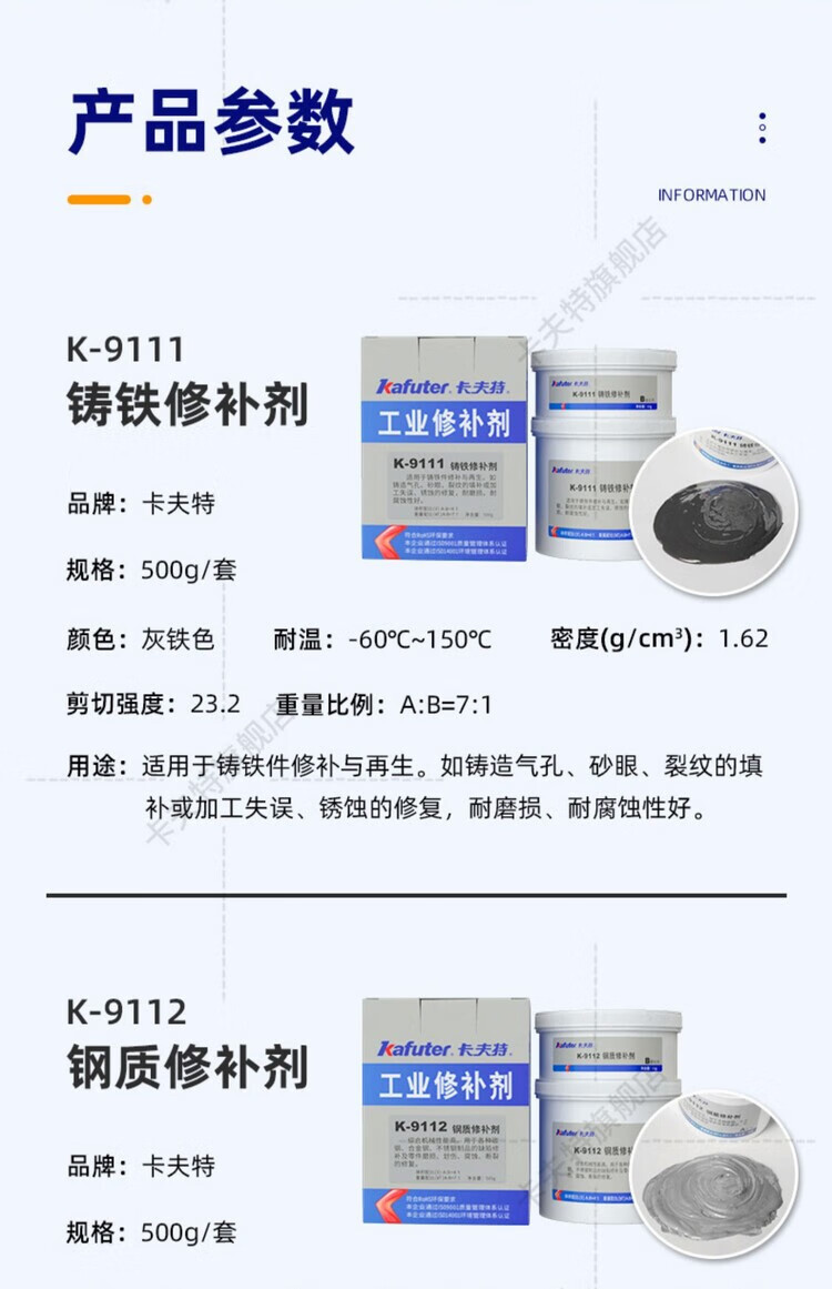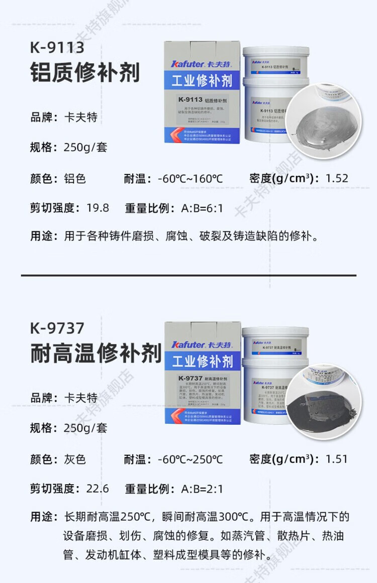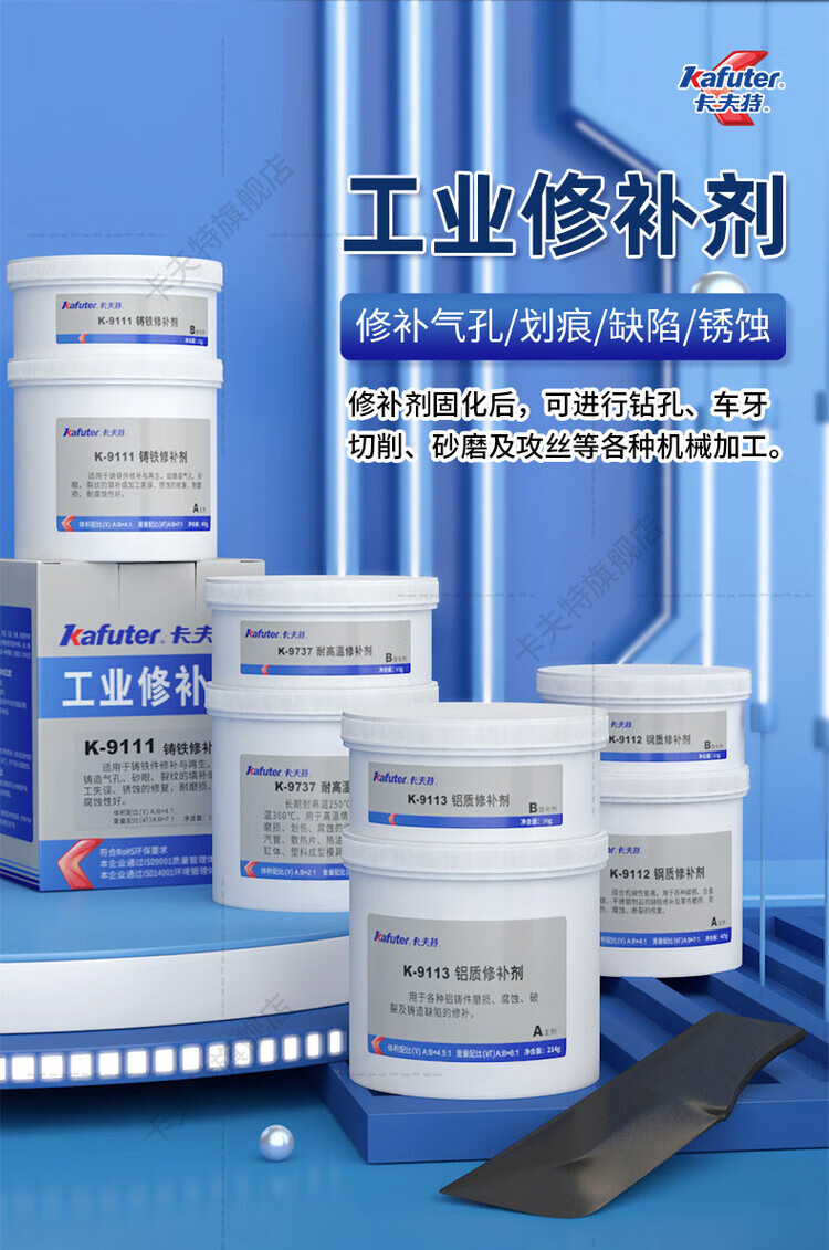 馍彭缸体修补剂k-9112金属修复铸铁铝不锈钢耐高温9737工业修补剂大包 钢质修补剂(K-9112 500克/套)