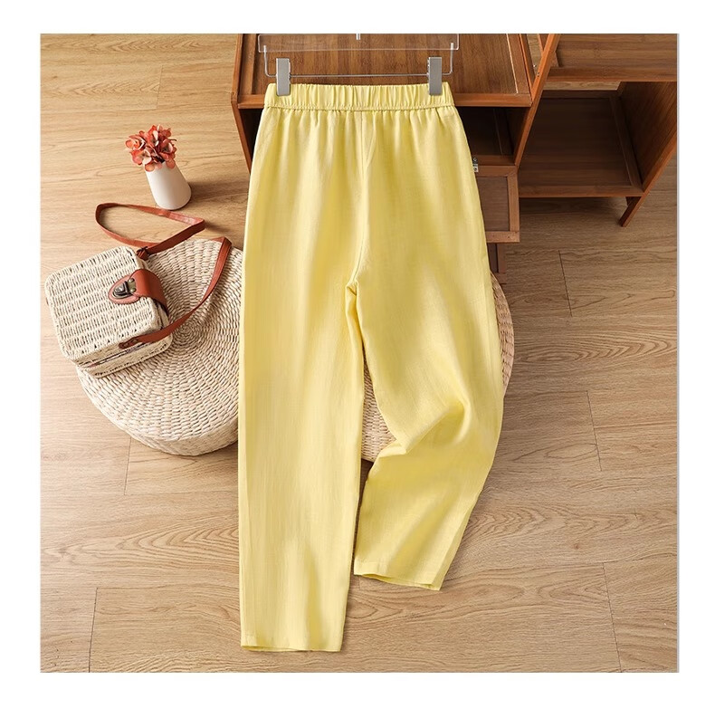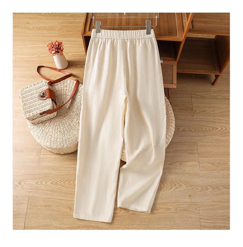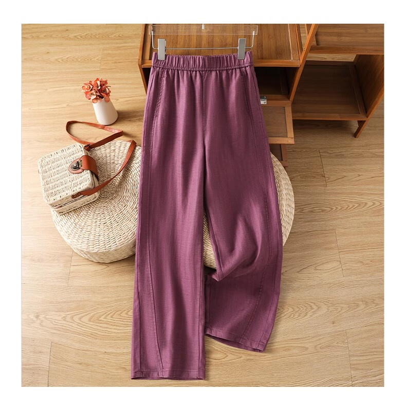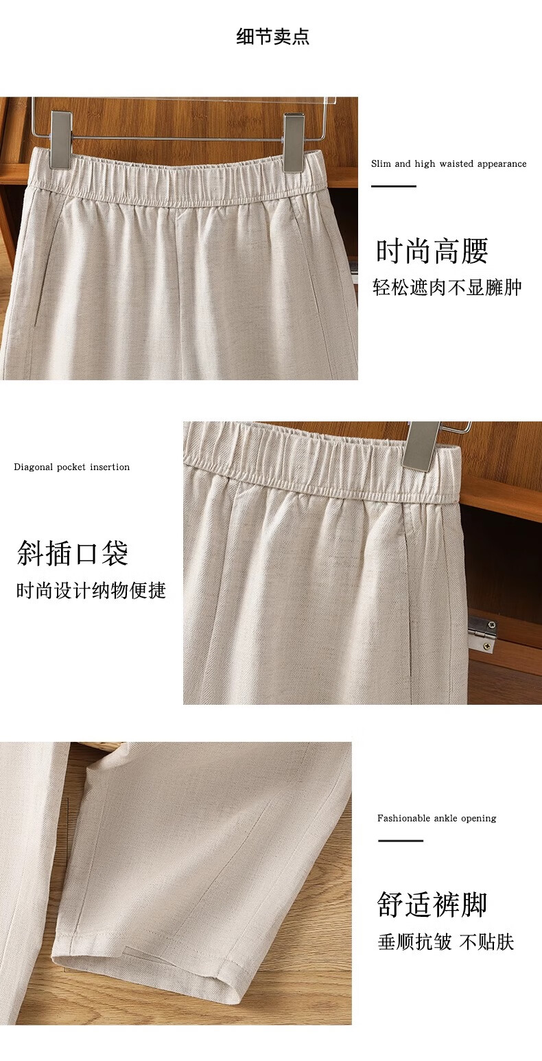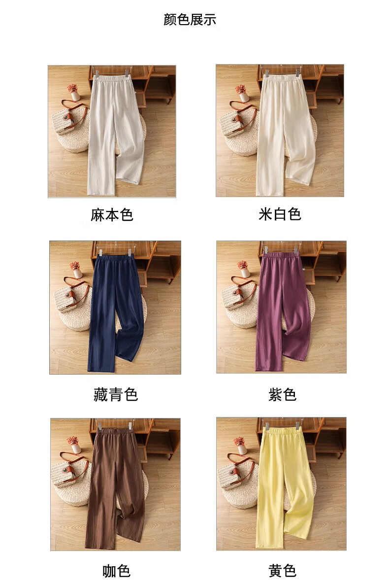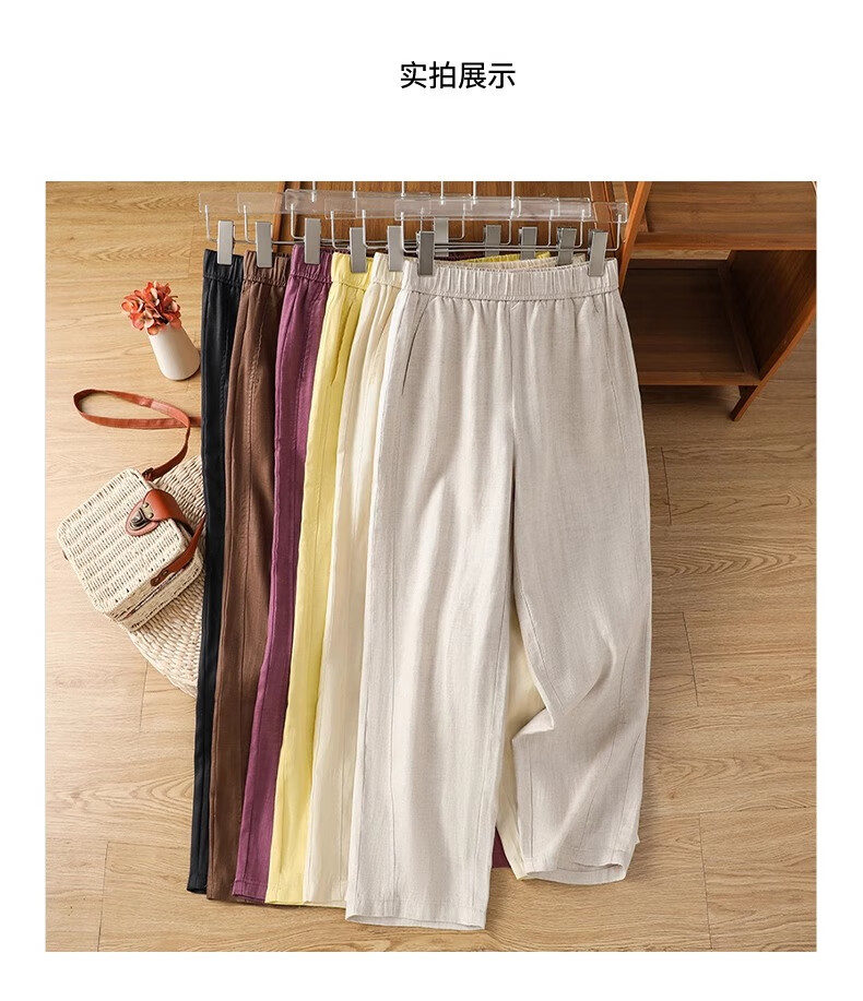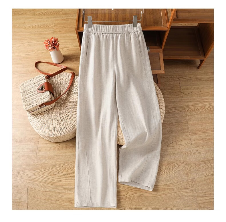爱上町高端藏青色亚麻阔腿裤女夏季2025新款天丝麻料裤九分防晒棉麻裤子 麻本色-长裤 4XL /32 建议145-155斤
