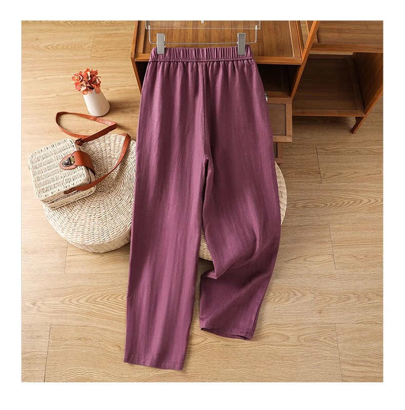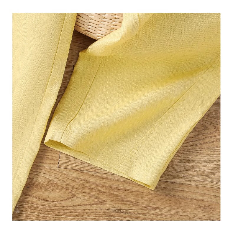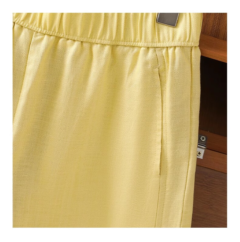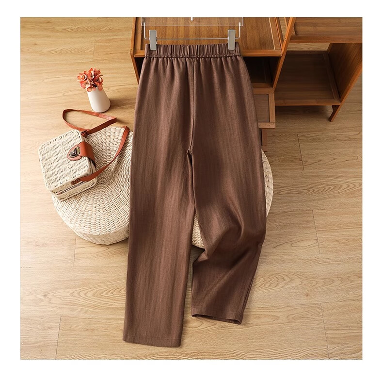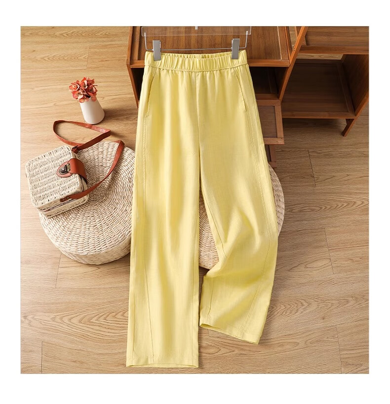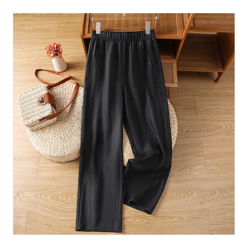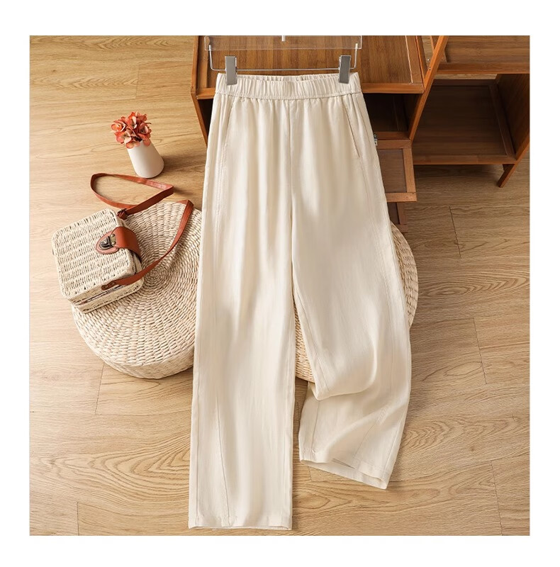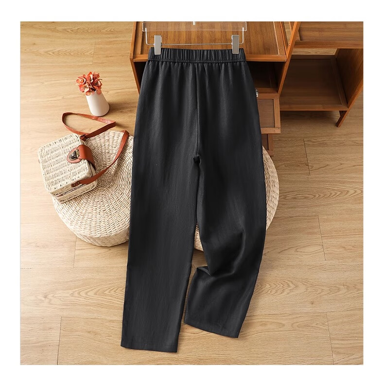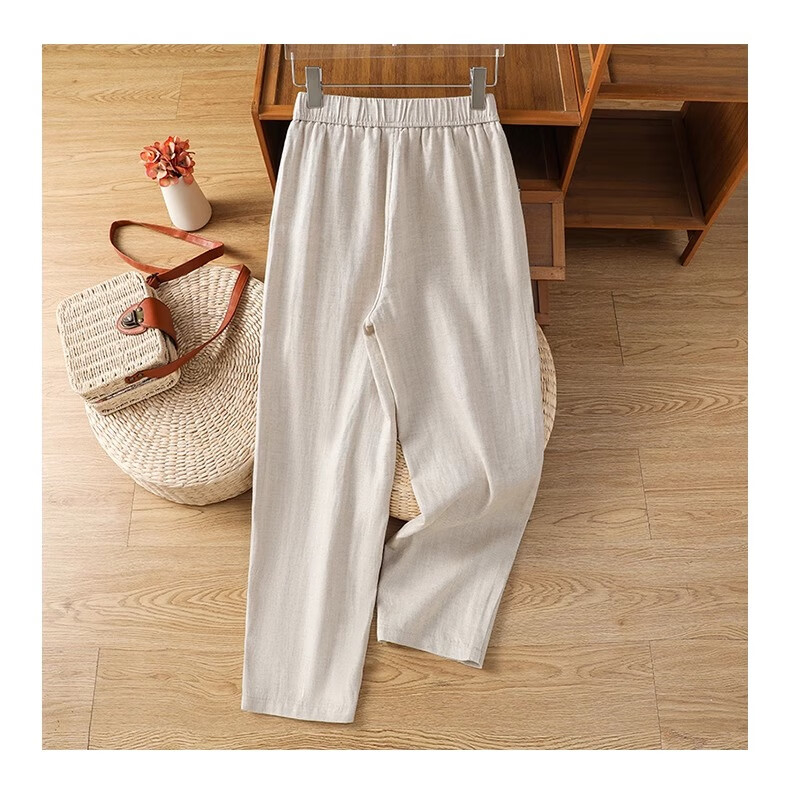 爱上町高端藏青色亚麻阔腿裤女夏季2025新款天丝麻料裤九分防晒棉麻裤子 麻本色-长裤 4XL /32 建议145-155斤