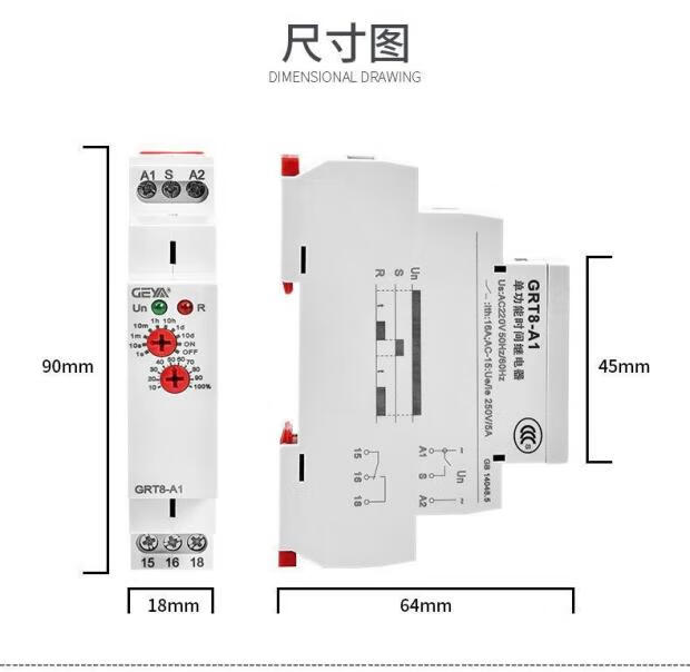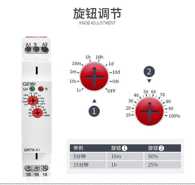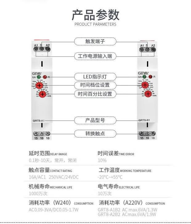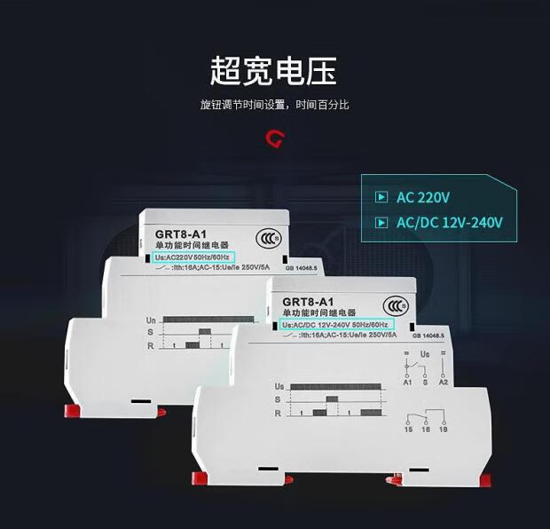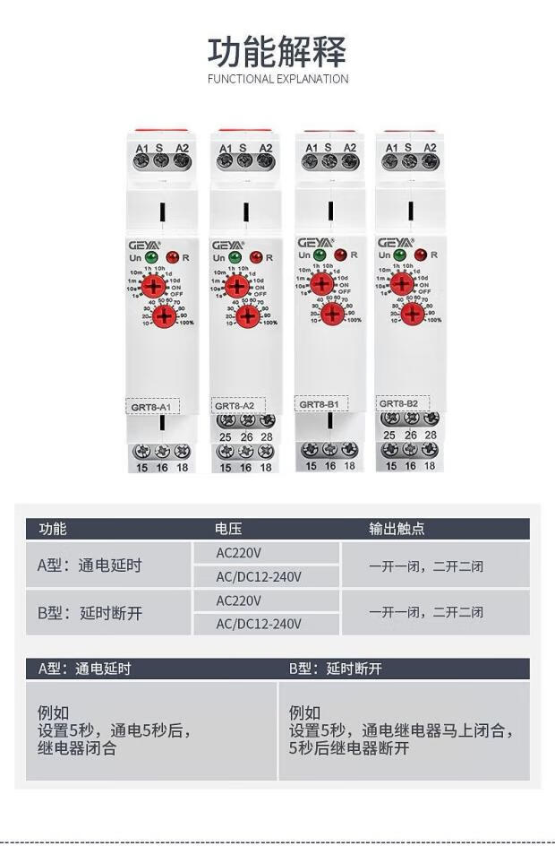 GEYA格亚GRT8-A1B1A2B2通电延时断开时间继电器模块控制器220交流 AC/DC12240V 一开一闭A通电延时