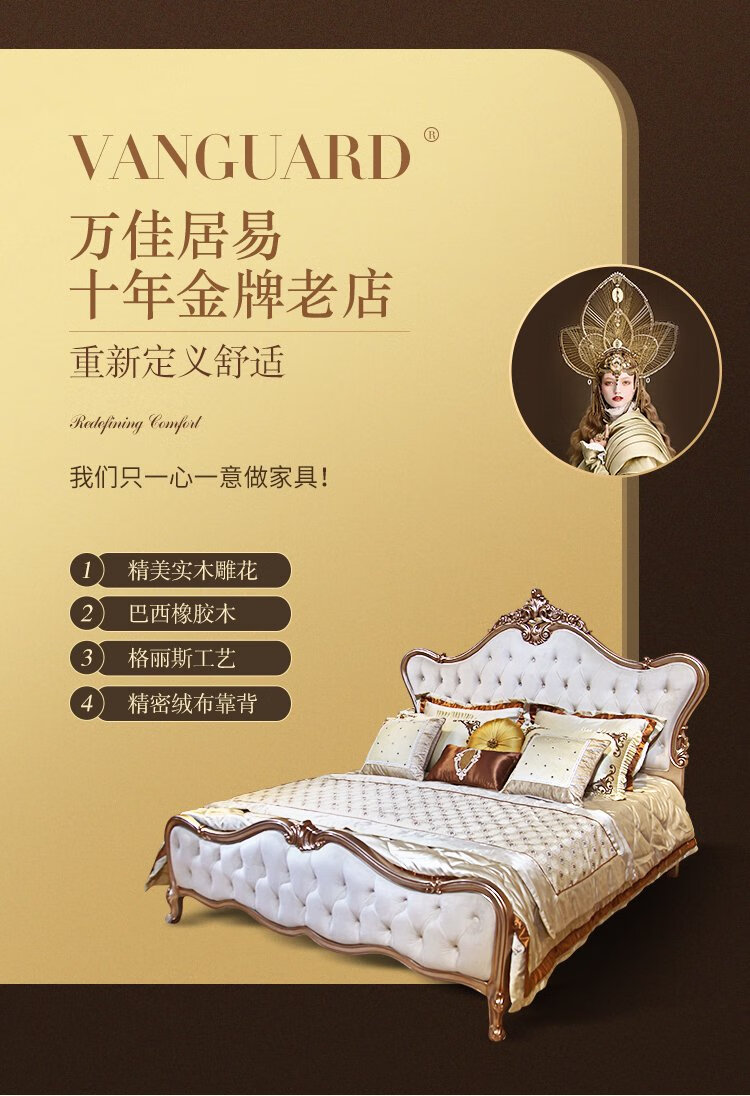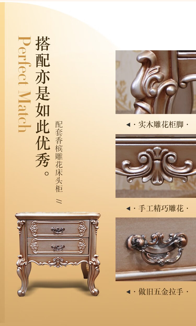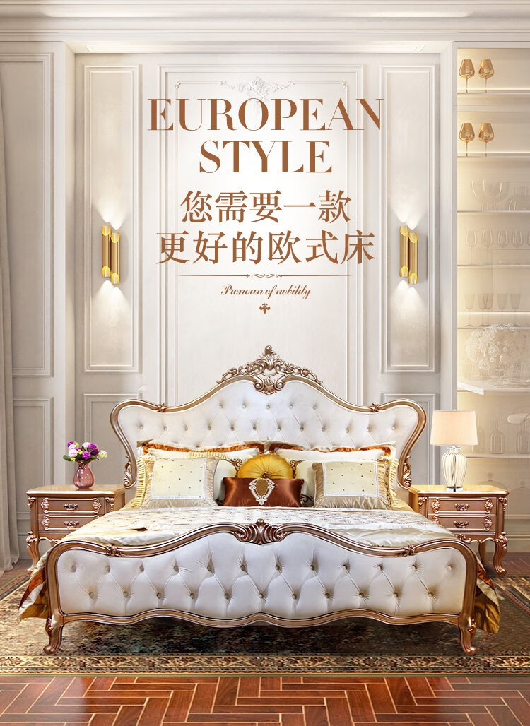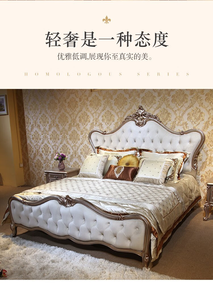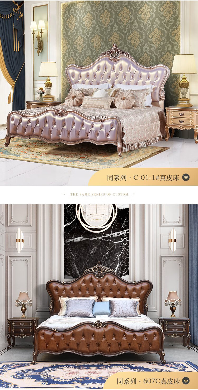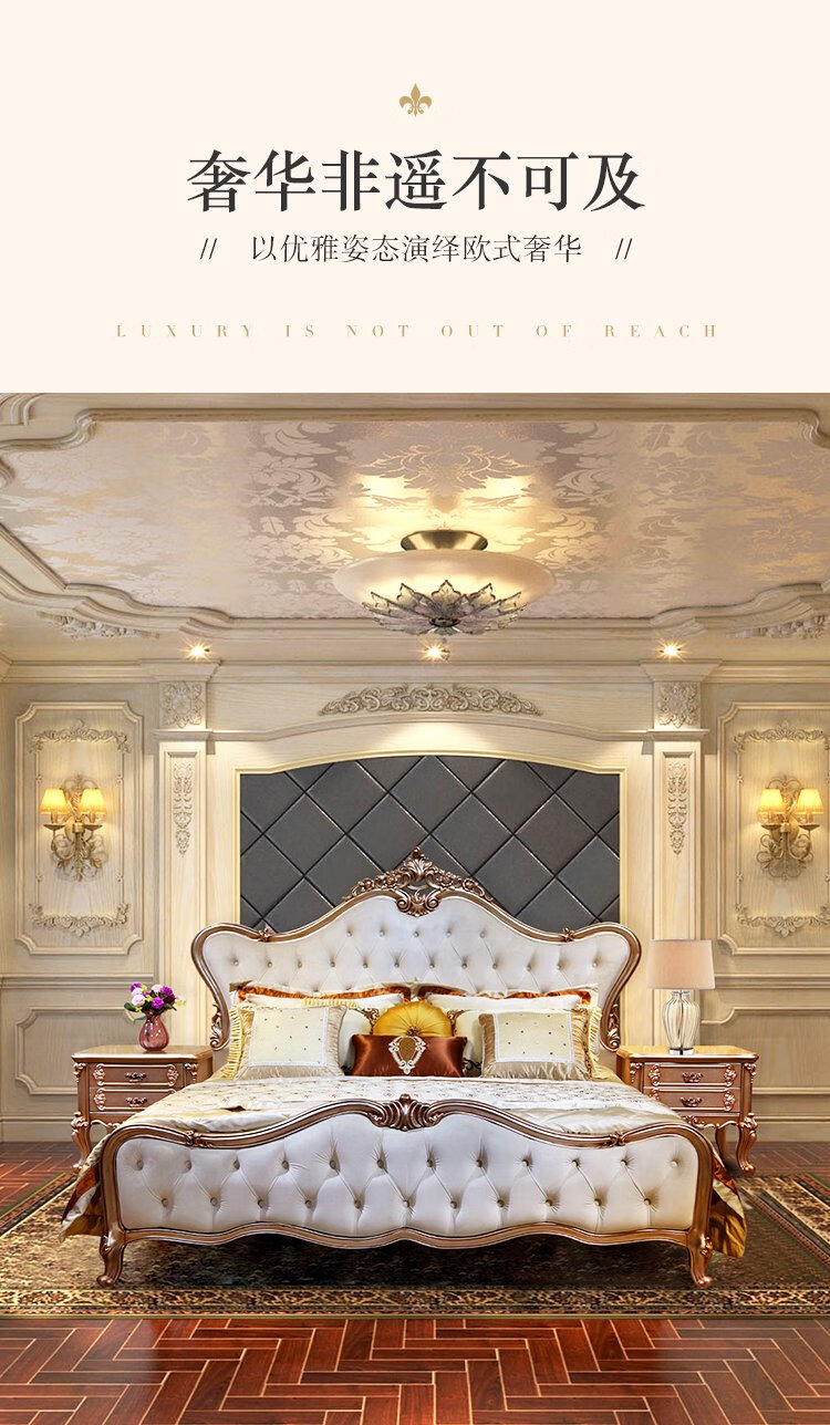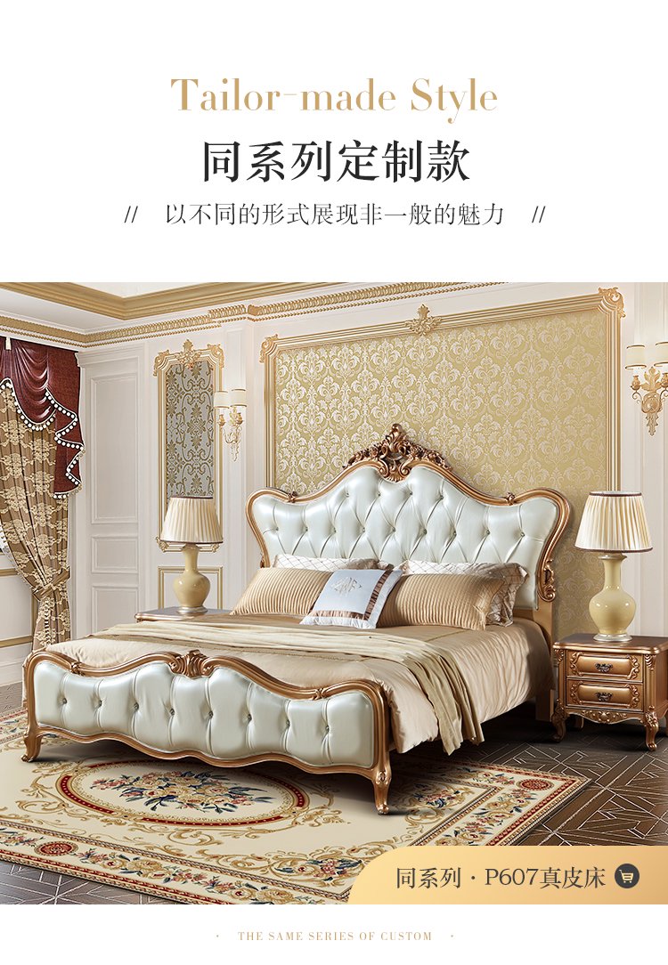 Lit double de style européen, chambre principale, grand lit, ambiance haut de gamme, lit princesse de chambre à coucher tout en bois massif, rétro de luxe léger à la française, lit tout en bois massif 9928, couleur de peinture assortie personnalisable 1500mm*2000mm