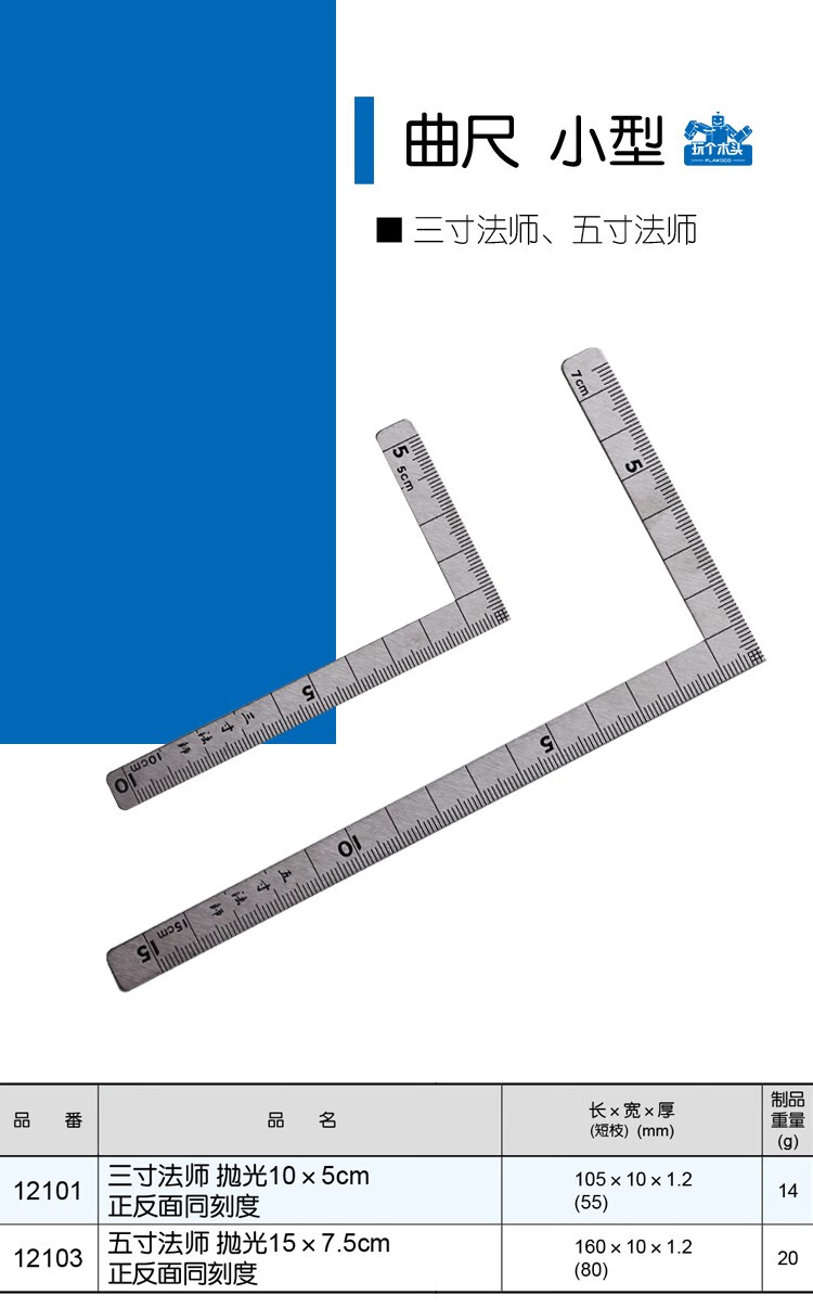 日本和高精度曲尺直角尺小型不锈钢迷你尺正反同刻度10/15厘米 3寸法师10*5CM 12101