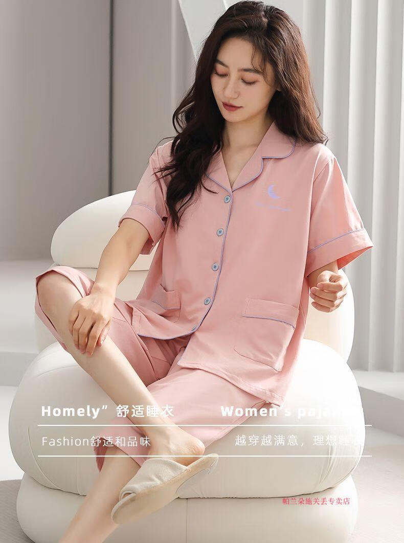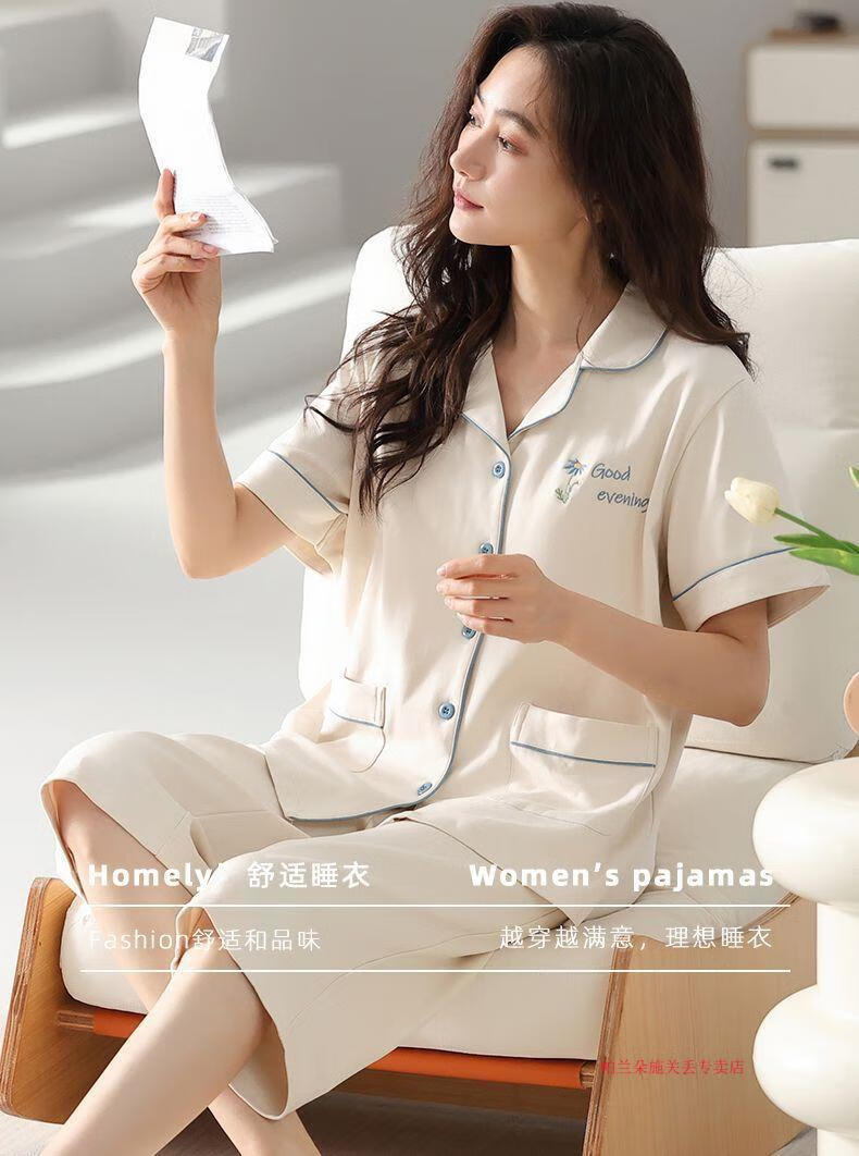 Palanduo 100 pijamas de algodón Xinjiang para mujer pantalones cortos de verano de manga corta cárdigan de gran tamaño para mujeres jóvenes y de mediana edad traje ropa exterior hogar n9896 pantalones cortos de manga corta cárdigan M (80-100 Jin Jin es igual a 0,5 kg)