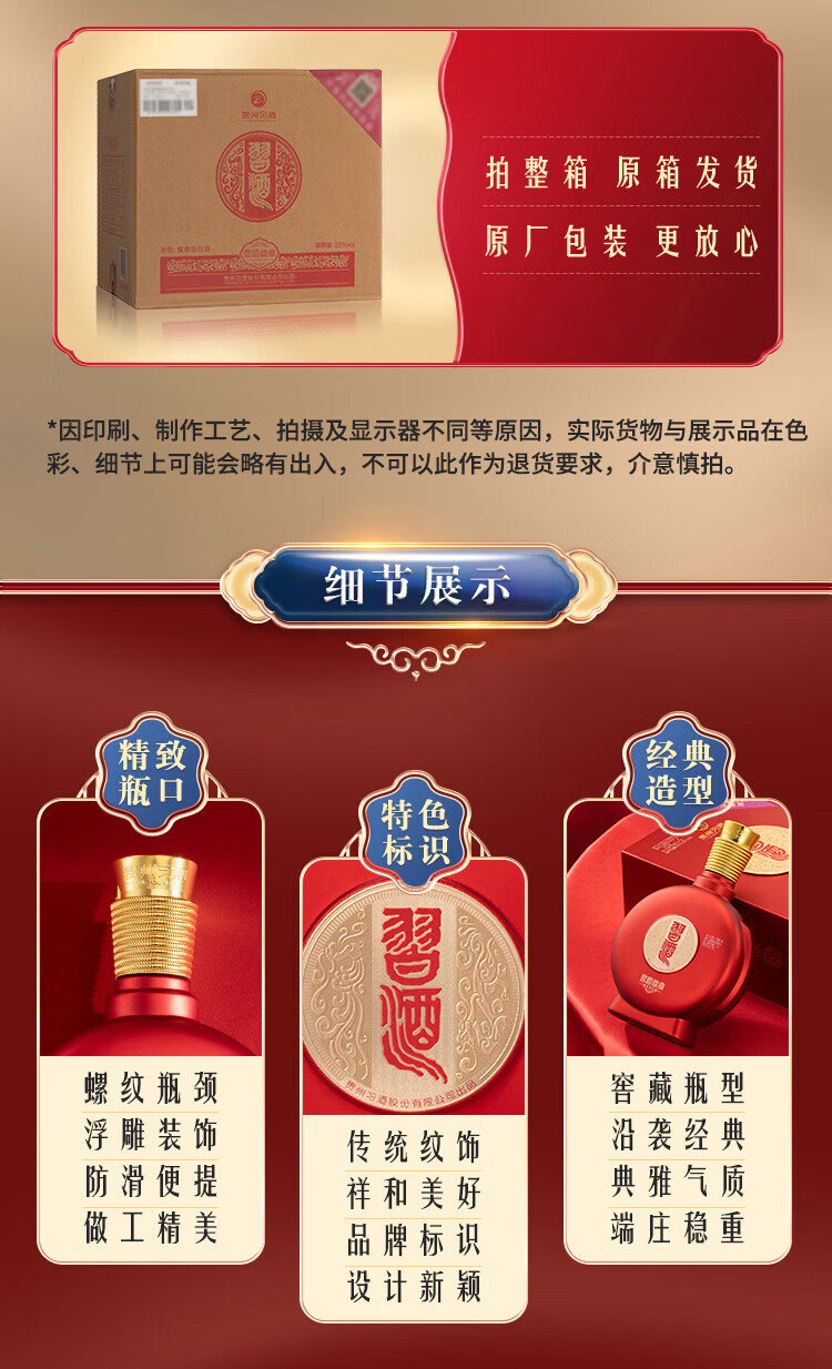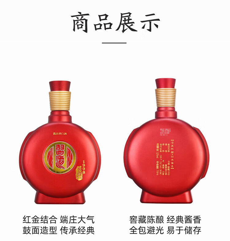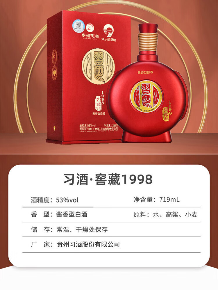 习酒贵州酱香型白酒整箱装 53度 719mL 6瓶 2021年窖藏1998 整箱装