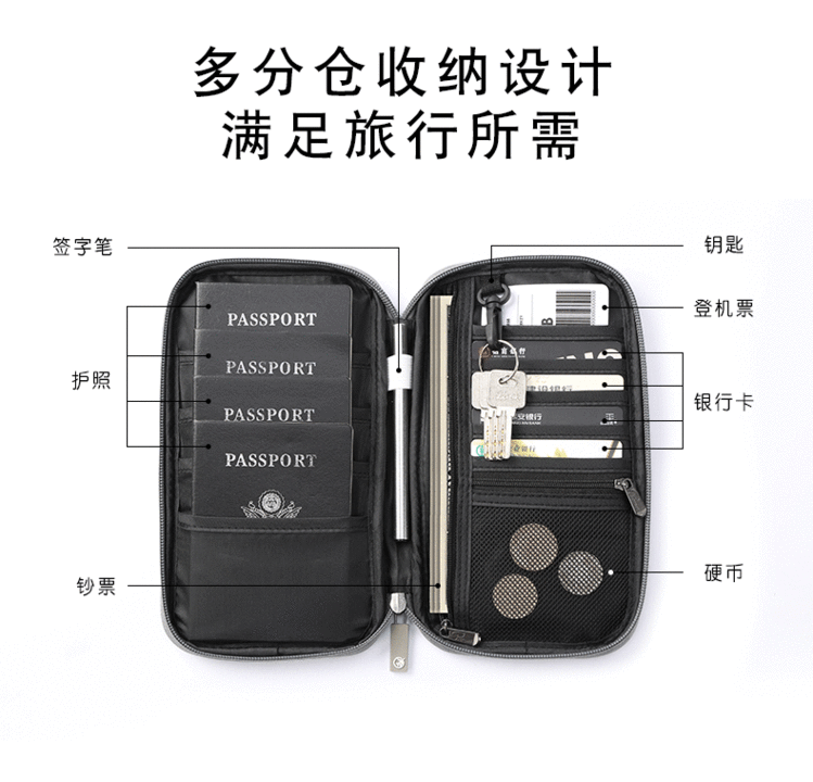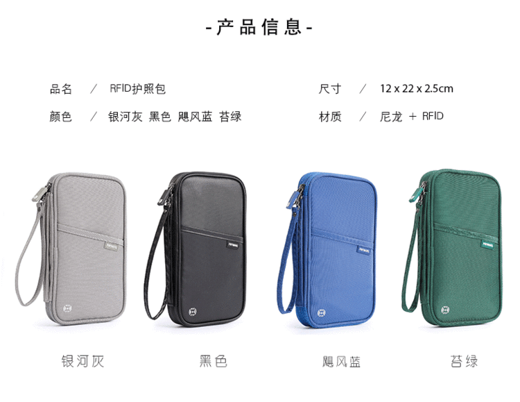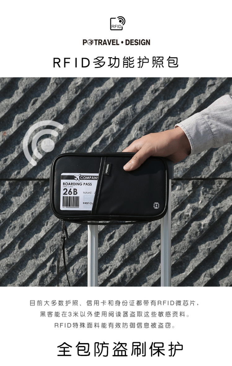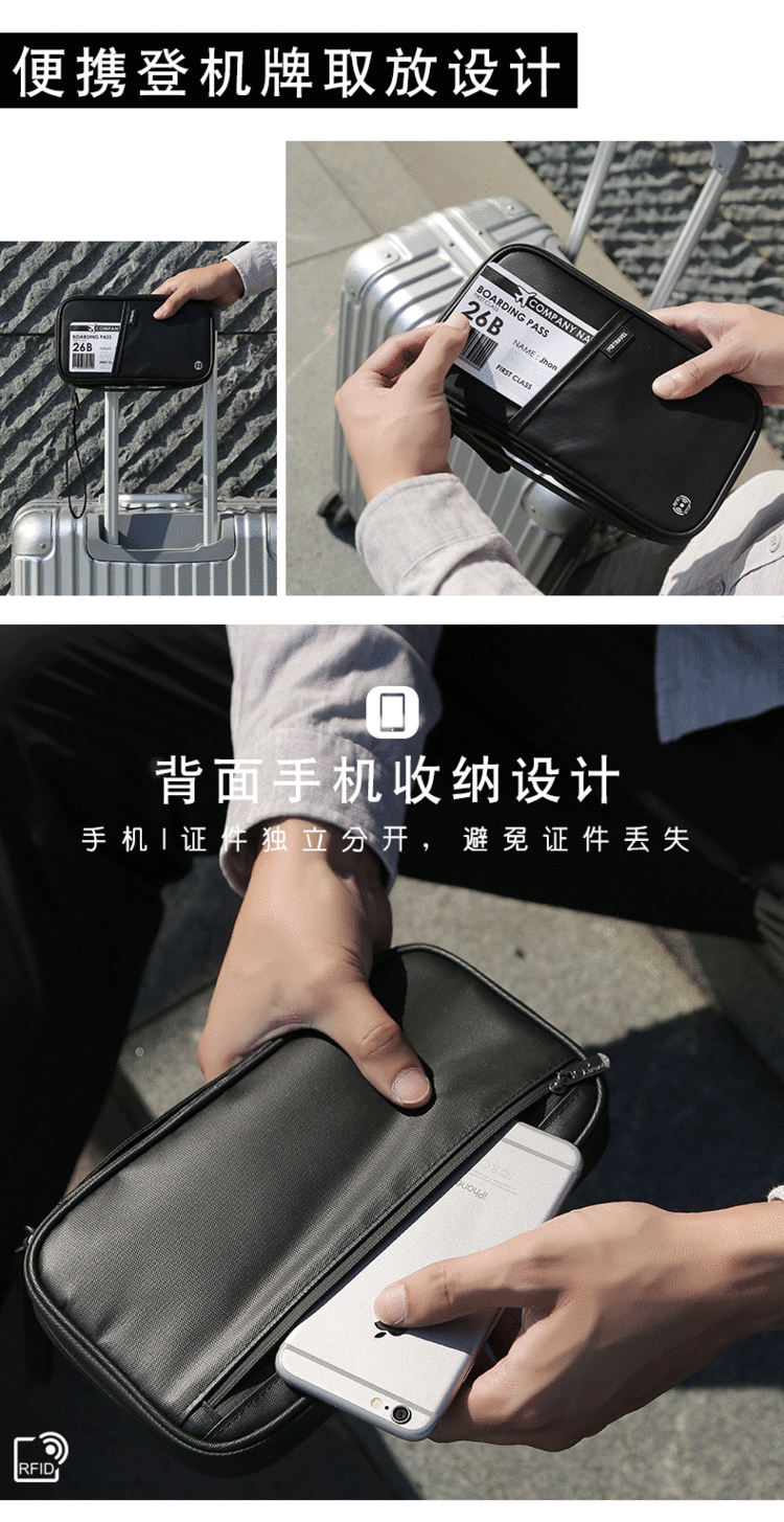 恩宝乐护照包防盗刷旅行便携多功能rfid护照夹旅游出国留学生收纳证件包 黑色